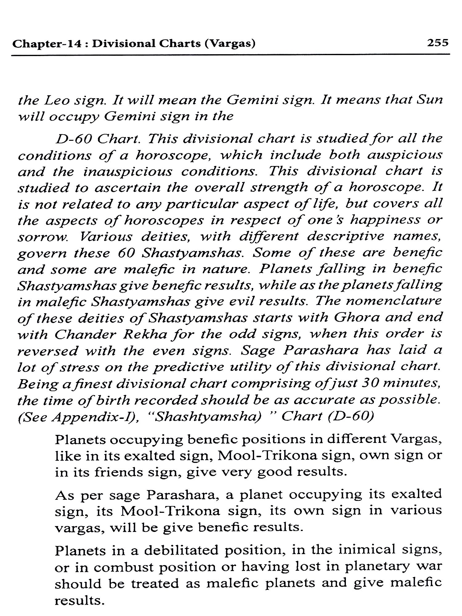 This book also covers chapters about the Vimshotari dasha, Yogini dasha, divisional charts, Uppagrahas, Panchang, etc, in detail.