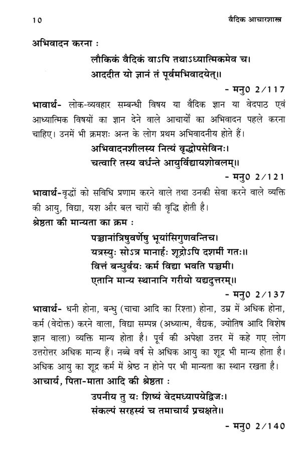 वैदिक आचार शास्त्र विषयक ग्रंथ के लेखक श्री रामाश्रय तिवारी जी, पूर्व उपपरिवहन आयुक्त, उत्तर प्रदेश ने अपने इस ग्रंथ को कुल पाँच अध्यायों में विभाजित किया है जिसमें मनुस्मृति, याज्ञवल्क्य, पराशर स्मृति, वाल्मीकि रामायण, महाभारत, श्रीमद्भगवद्गीता, उपनिषद, योगशास्त्र, संक्षेप शारीरिक, पंचदशी एवं स्फुट सूक्तियों में आचार शास्त्र विषयक विभिन्न प्रकरण गत विषयों का ग्रन्थानुसार क्रमपूर्वक अत्यन्त सहजतया विवेचित किया है, जो सम्प्रति अत्यन्त लोकोपकारक है। वस्तुतः शास्त्र में जो विषय रहते थे वही व्यवहार में परिणत दिखता था। कालान्तर में भारत अनेक सांस्कृतिक संकटों से जूझता रहा, जिसकी परिणति हुई कि हम अपने जड़ों से कटते चले गये। सम्प्रति पाश्चात्य संस्कृति ने हमको अपने आचार व्यवहार विषयक विभिन्न नीतिपरक विषयों से दूर कर दिया है। जबकि महाकवि कालिदास ने रघुवंशमहाकाव्य में लिखा है ""श्रुतेरिवार्थ स्मृतिरन्व गच्छत"", अर्थात् श्रुतियों का स्मृतियाँ तदनुगमन करती हैं। तात्पर्य है कि वेदगत शास्त्रीय चिन्तन स्मृतियों से होती हुई लोक परम्परा का विषय बनते थे; कहने का अभिप्राय है, जो वेदशास्त्र में नीतिपरक चिन्तन परम्परा लोक में अनस्युत दिखती थी।