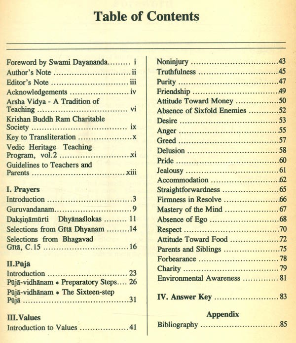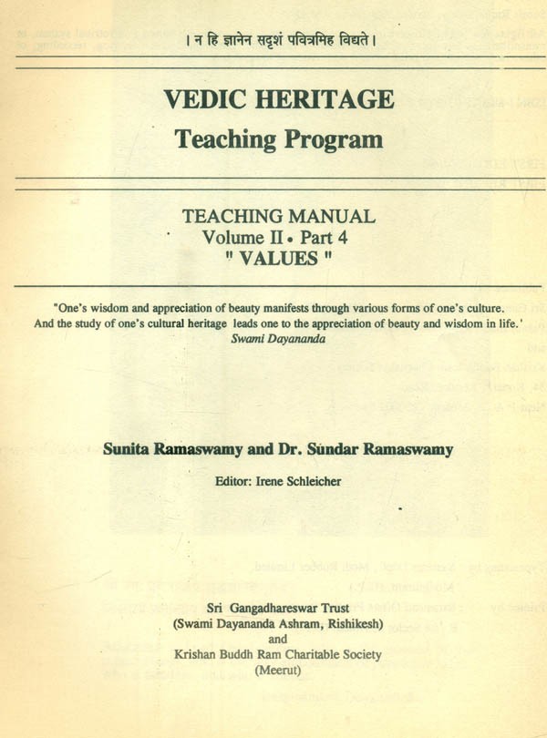 Keeping this in view, we have evolved a course in Vedic Heritage for children of different age groups. Drawing from ten years of experience teaching this heritage, Sunita Ramaswamy and Sundar Ramaswamy, my students, with the help of other students, have put together manuals for teachers and workbooks for children. I hope the educational institutions in India will make use of these books to conduct regular Vedic Heritage classes for children. Individual parents can also make use of these manuals to teach the children their heritage.