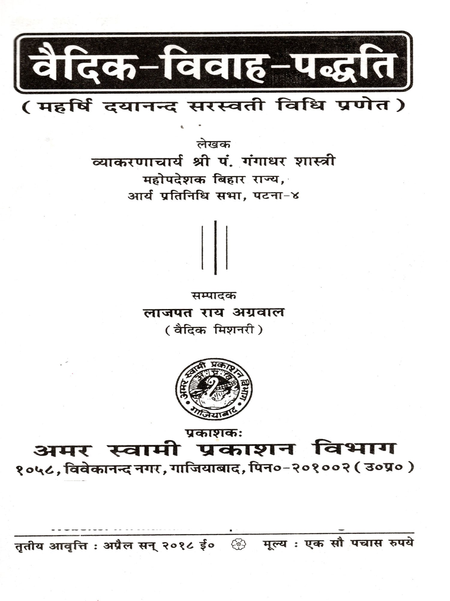 वैदिक-विवाह-पद्धति: Vedic Marriage System (Maharshi Dayananda Saraswati Vidhi Pranet)