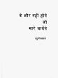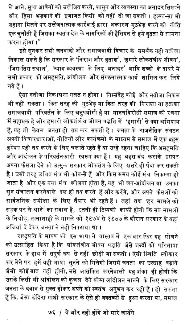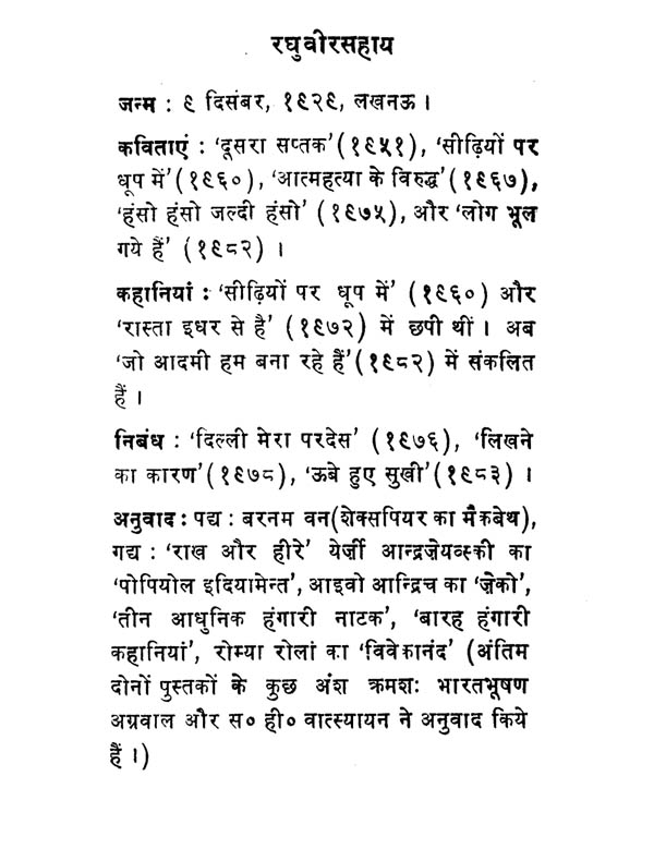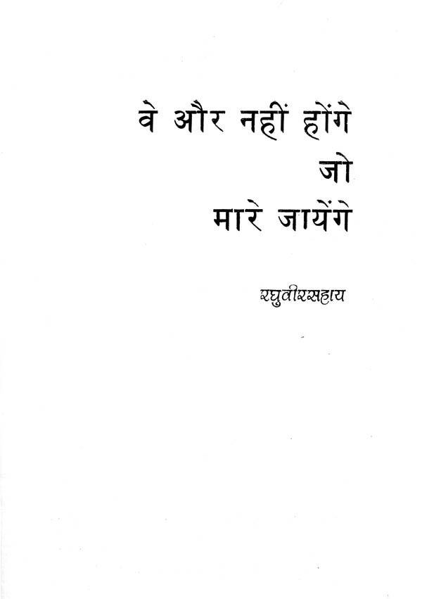 वे और नहीं होंगे जो मारे जायेंगे: vey Aur Nahin Honge Jo Mare Jayenge by Raghuvir Sahay (An Old and Rare Book)