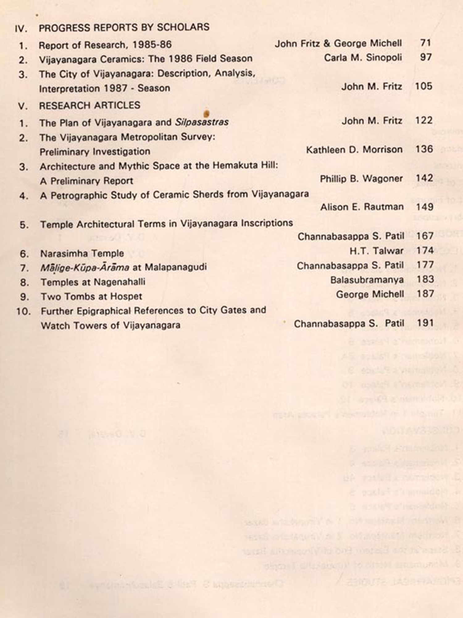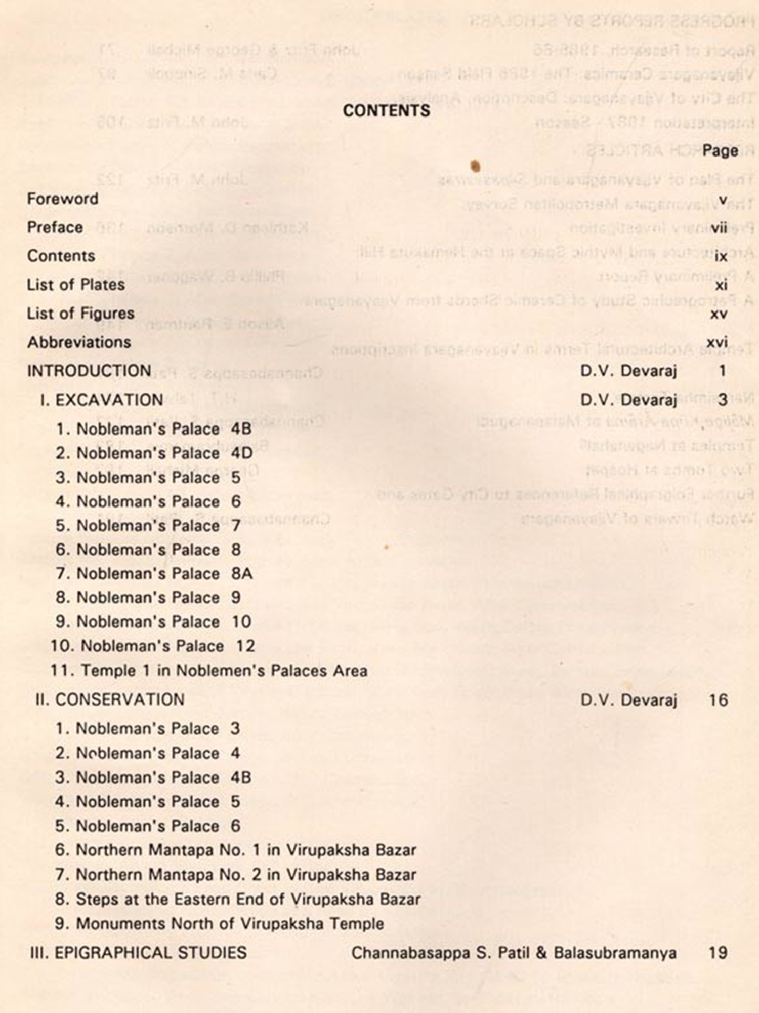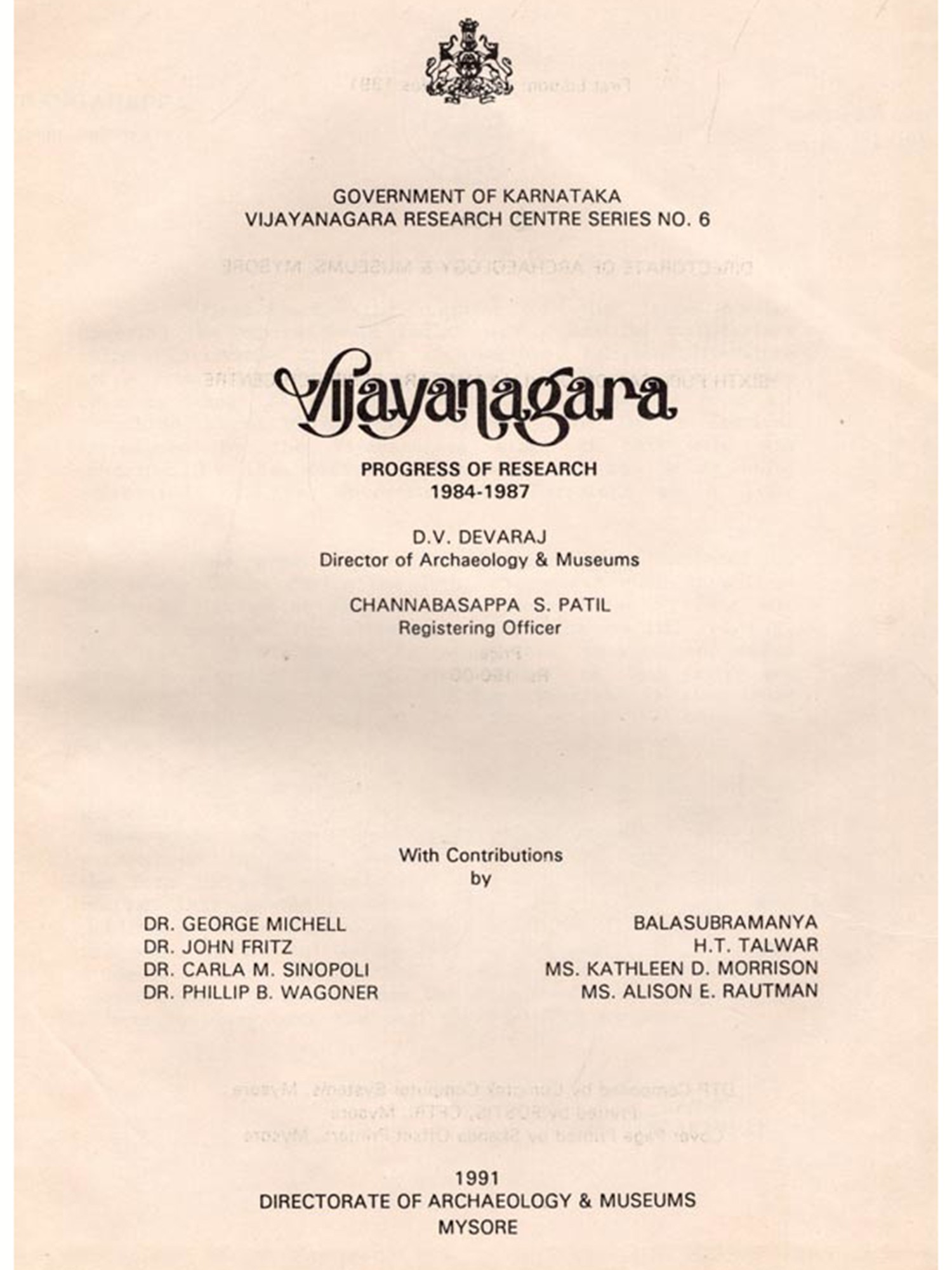 Vijayanagara (Hampi), the great medieval city of south India has been revealing its several new aspects to the curious eyes of scholars engaged in research at the site. Since the initiation of Hampi Resurrection Project by the Government of Karnataka in 1981, considerable progress has been achieved. The Directorate of Archaeology and Museums has taken up large scale excavations, conservation and research at Vijayanagara under this project. Progress achieved in this respect is being published periodically for the benefit of people, scholars and students.