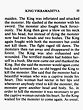In the time of Raja Bhoja of Ujjain, a magnificent throne, carved exquisitely with 32 puppets, was discovered under a hillock. Enamoured by its appearance, the king had it polished and set up in his court. As he made his way towards it, one of the puppets came to life and warned him that none but the worthy King Vikramaditya could sit on the throne. Each day, the king would approach the throne and each day, another puppet would come to life and caution the king.