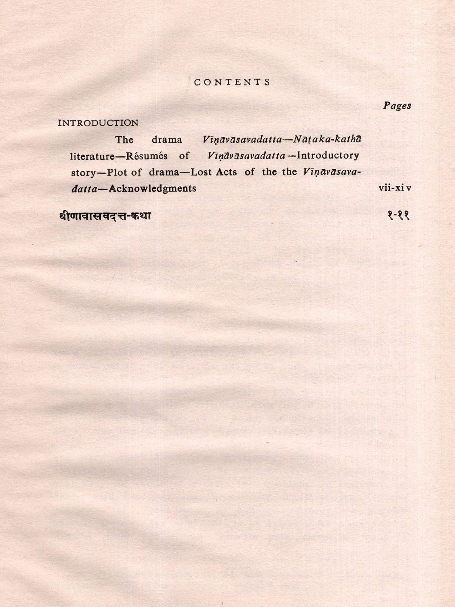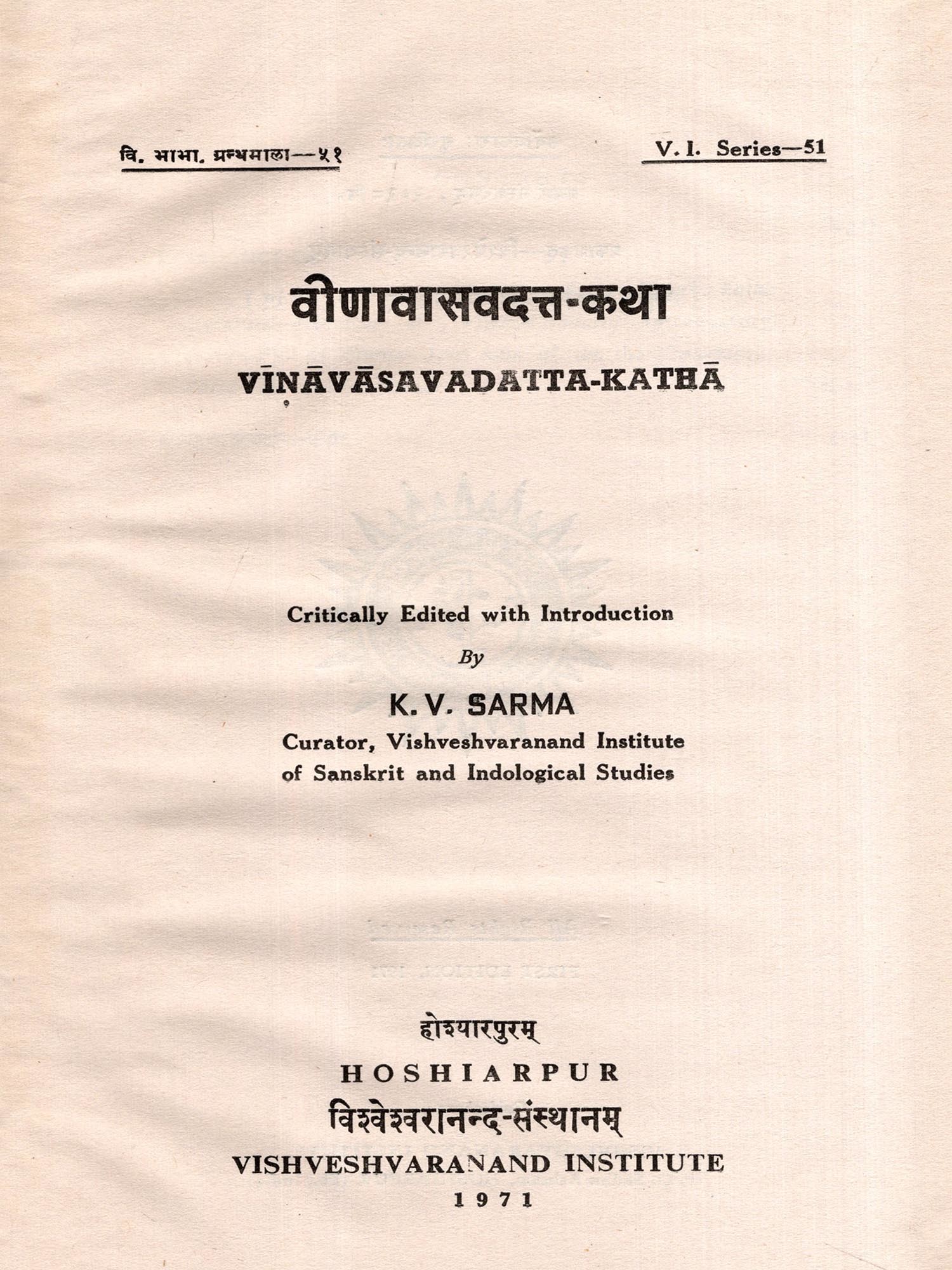 The The Vinavasavadatta, which is ascribed by some scholars to the royal dramatist sudraka, is an old Sanskrit drama whose theme has been taken from the popular legends of the Udayana saga, story centres round the capture of Udayana, king of the Vatsa country, by the ruse of an elephant and his being made to instruct his future queen Vasavadatta on the vina (lute). As against other dramas based on the Udayana story like the Pratijna-yaugandhar ayana and Svapnavasavadatta of Bhasa, the Tapasavatsaraja of Mattraja Anangaharsa, Priyadarsika and Ratnavali of Harsa, Abhisarika-vancitaka of Sudraka, Manoramavatsaraja of Bhimata and Lalitaratna-mala of Ksemendra, the vina plays an important role in the present drama, which, on that account has been given the name Vinavasavadatta. Only eight Acts of the drama have yet been recovered and these have been presented before scholars in a critical edition by the present editor.