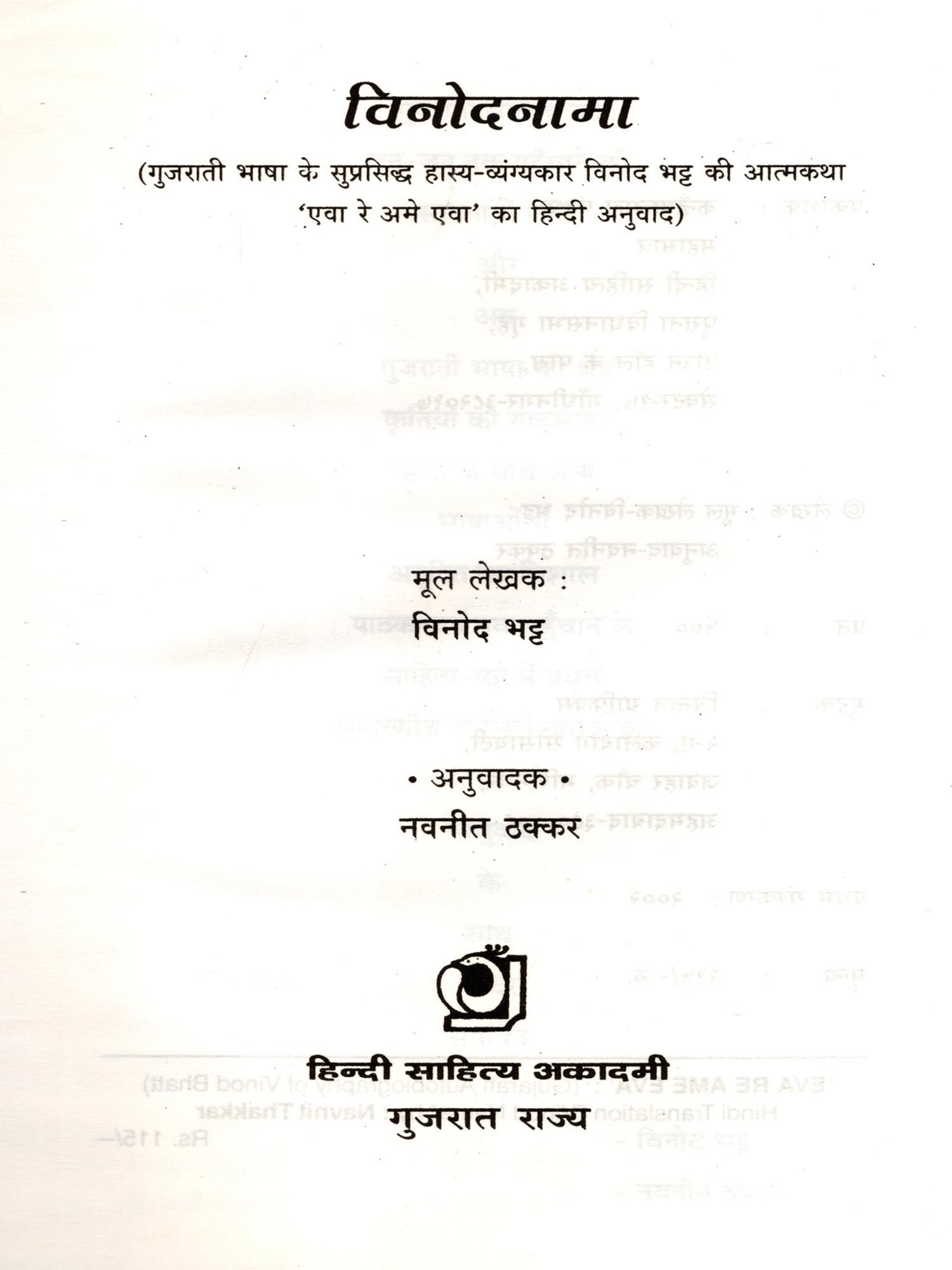 विनोदनामा- Vinodnama (Hindi Translation of the Autobiography 'Eva Re Ame Ava' of the Famous Gujarati Humorist Vinod Bhatt)
