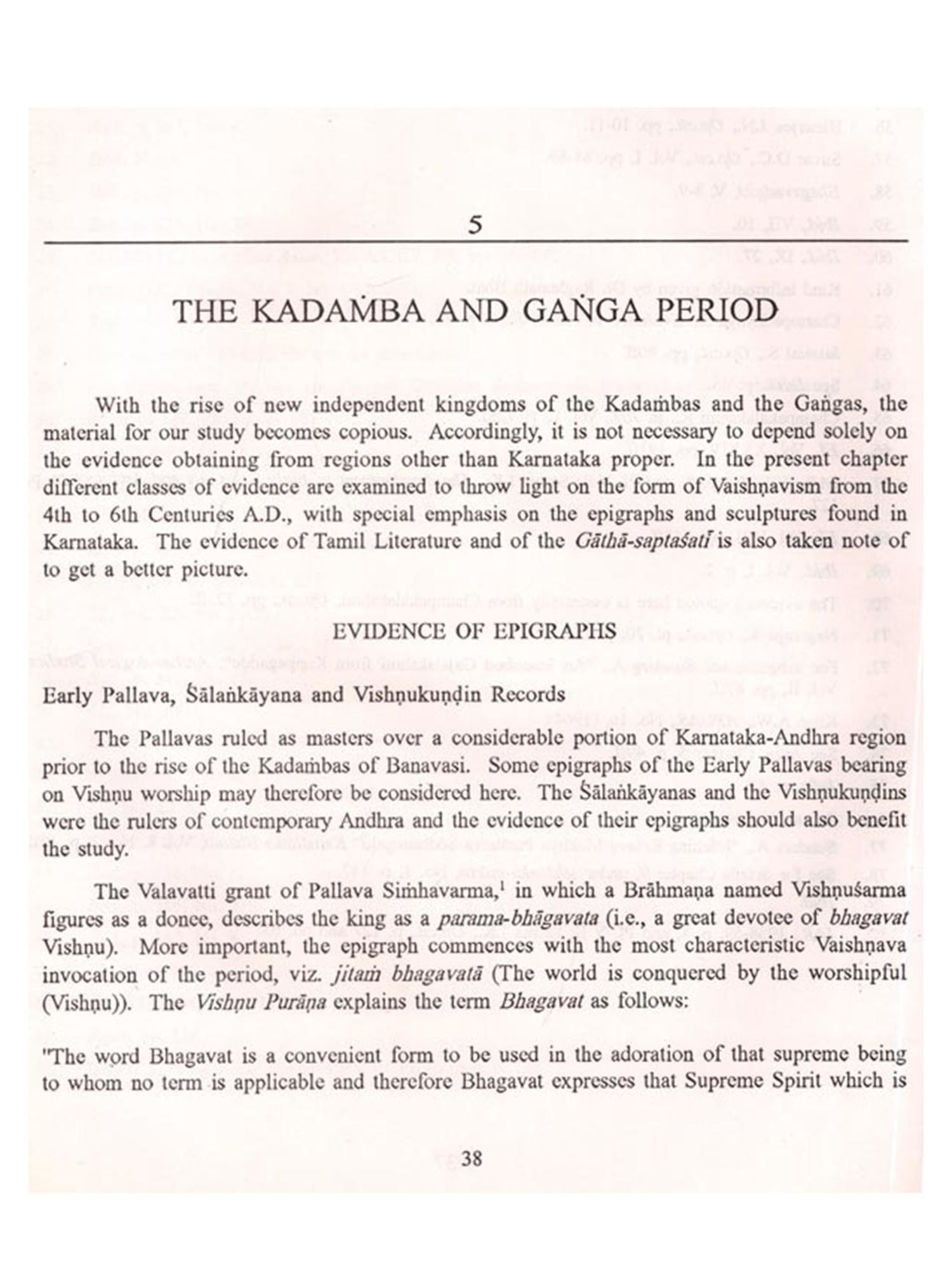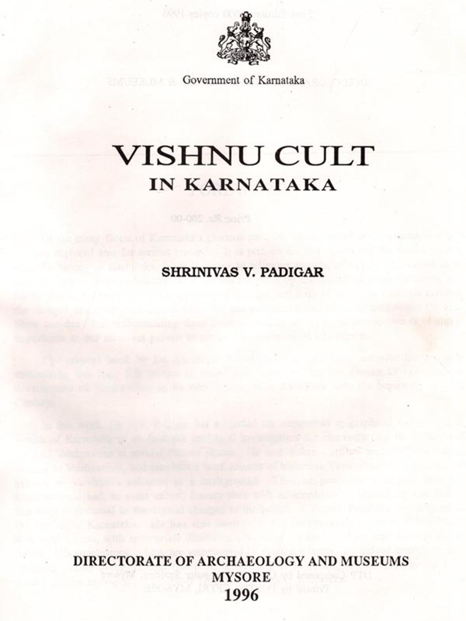 This book is a revised version of my doctoral thesis, "The Cult of Vishņu in Karnataka", submitted to the Karnatak University, Dharwad. History of religious systems in Karnataka has not drawn as much attention of the scholars as it deserves. In the present work, an attempt has been made to cover the history of one of the prominent religious systems of Karnataka, viz. Vaishnavism, upto the beginning of the 14th Century A.D., principally on epigraphical and sculptural data. The iconographic aspects of the Vaishnava sculptural themes are also considered here.