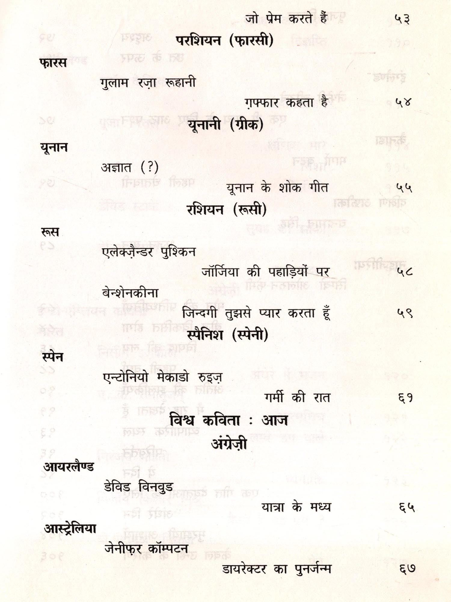 जहाँ तक आज की कविता का प्रश्न है, उस पर आगामी पृष्ठों में तीन आलेख दिए जा रहे हैं। बदि उन पर दृष्टि डालकर इन कविताओं को पढ़ा जाएगा तो अधिक आनन्द आएगा। वैसे प्रथम विश्व युद्ध के बाद की कविता और विशेषकर बीसवीं सदी के छठे दसवें दशक तक की कविता का स्वर एक ही है। चाहे देश कोई भी हो, संस्कृति कोई हो-भारत हो, अफ्रीका हो, रूस हो या चीन हो-आज़ादी के लिए संघर्ष और साम्यवादी विचारधारा ने सभी को प्रभावित किया है। फिर भी यह देखने को मिला की इन परिवर्तनों के बावजूद किसी न किसी रूप में कविता का मूल स्वर लौट लौट कर आ ही जाता है। आस्ट्रेलिया और न्यूज़ीलेन्ड की कविता इसका प्रमाण है।