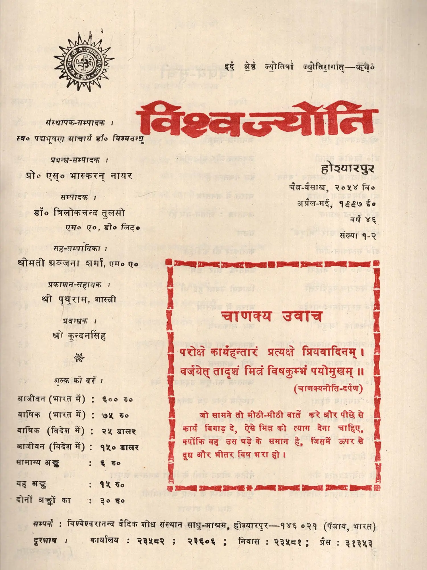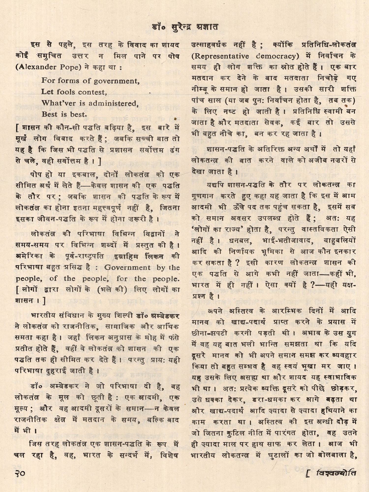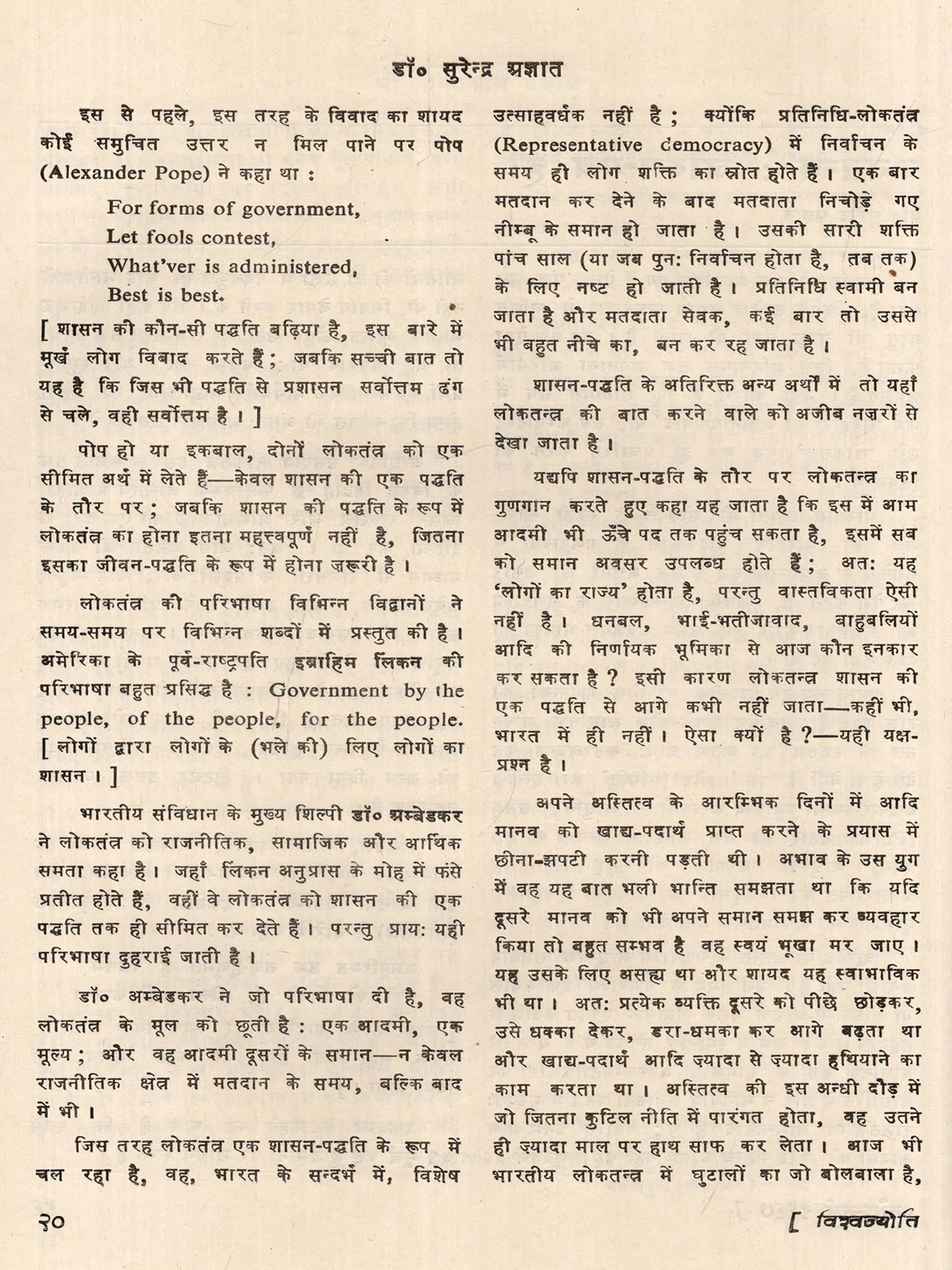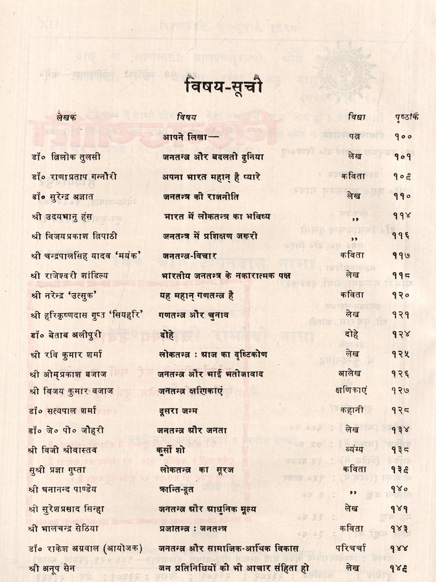 - इस अंक के साथ आपको यह रही है। बऔर प्रत्येक वर्ष की भान्ति विश्वज्योति अपनी द्यायु के ४६वें वर्ष में प्रवेश कर इस बार भी इसके नव वर्ष का प्रारम्भ दो विशेषांकों के साथ हो रहा है। इस बार इन का विषय 'जनतन्व' चुना गया है।