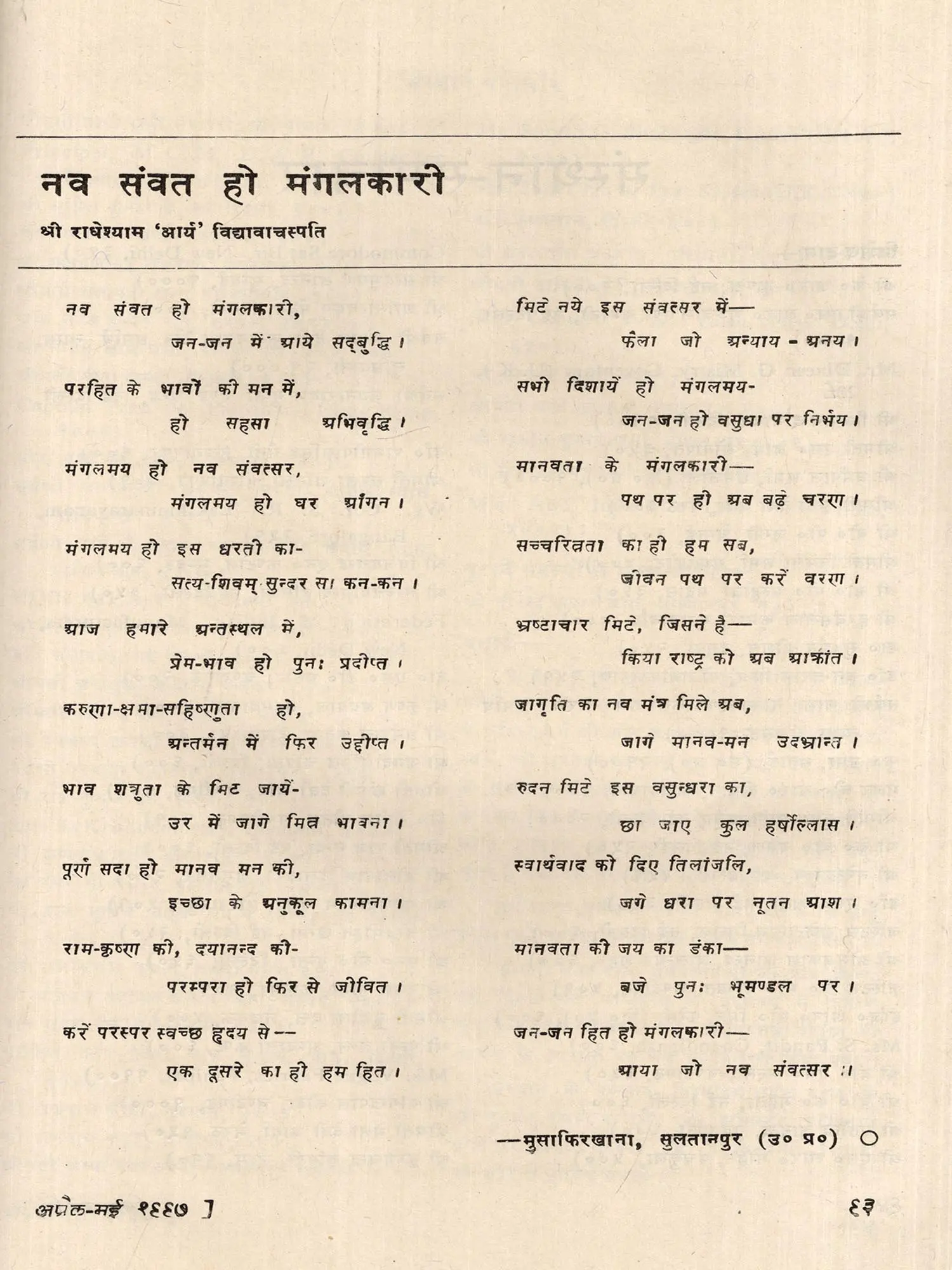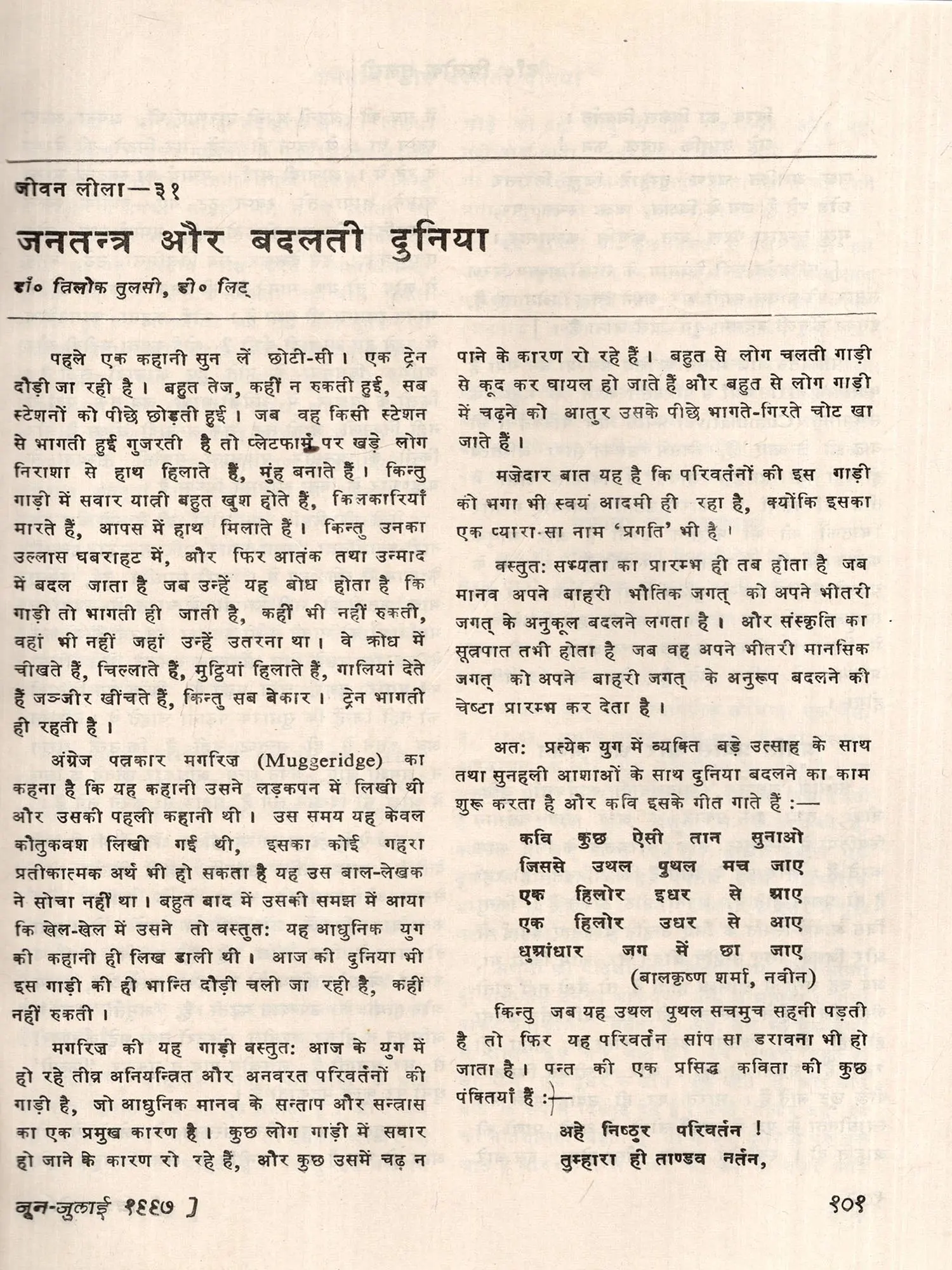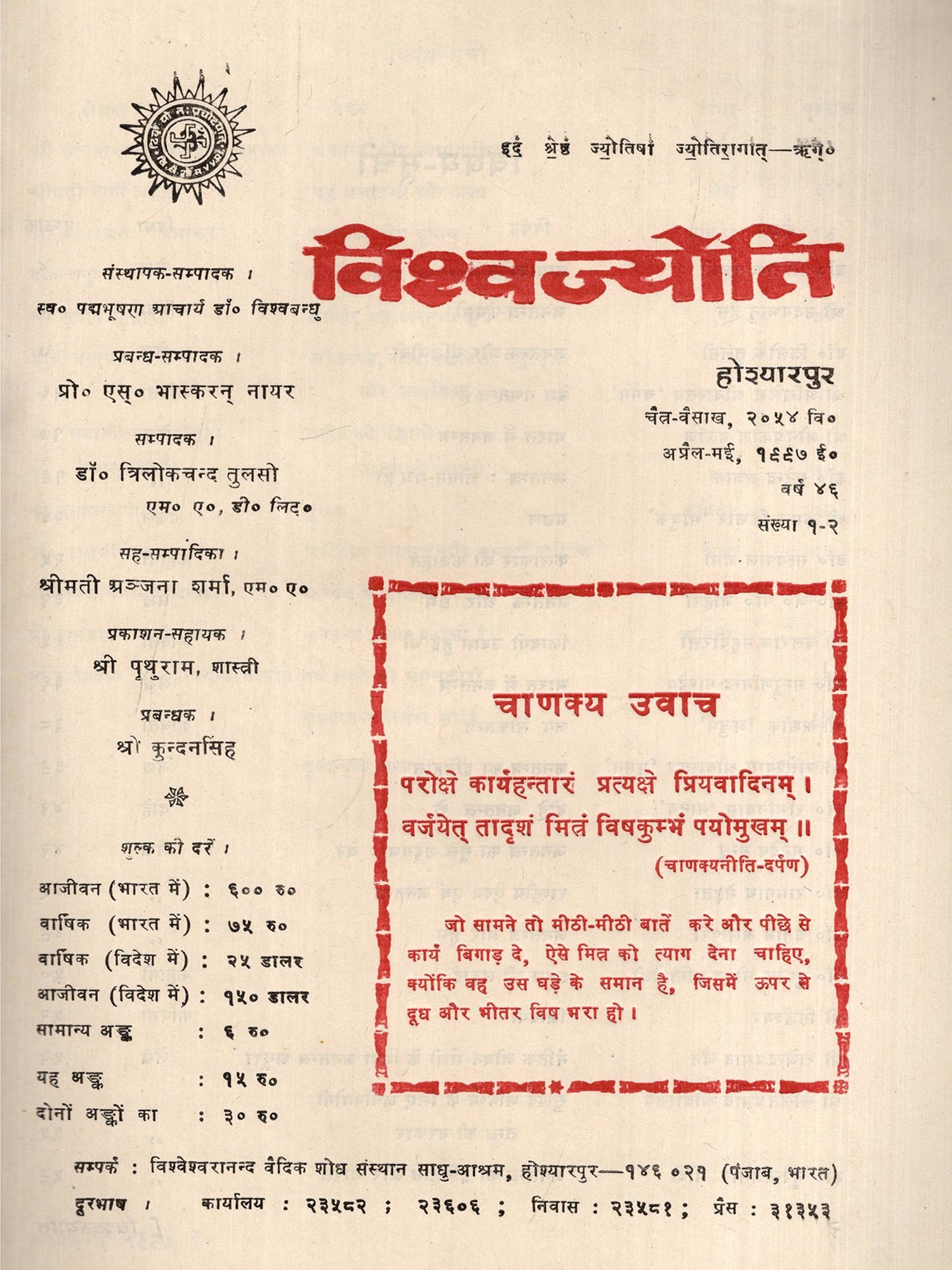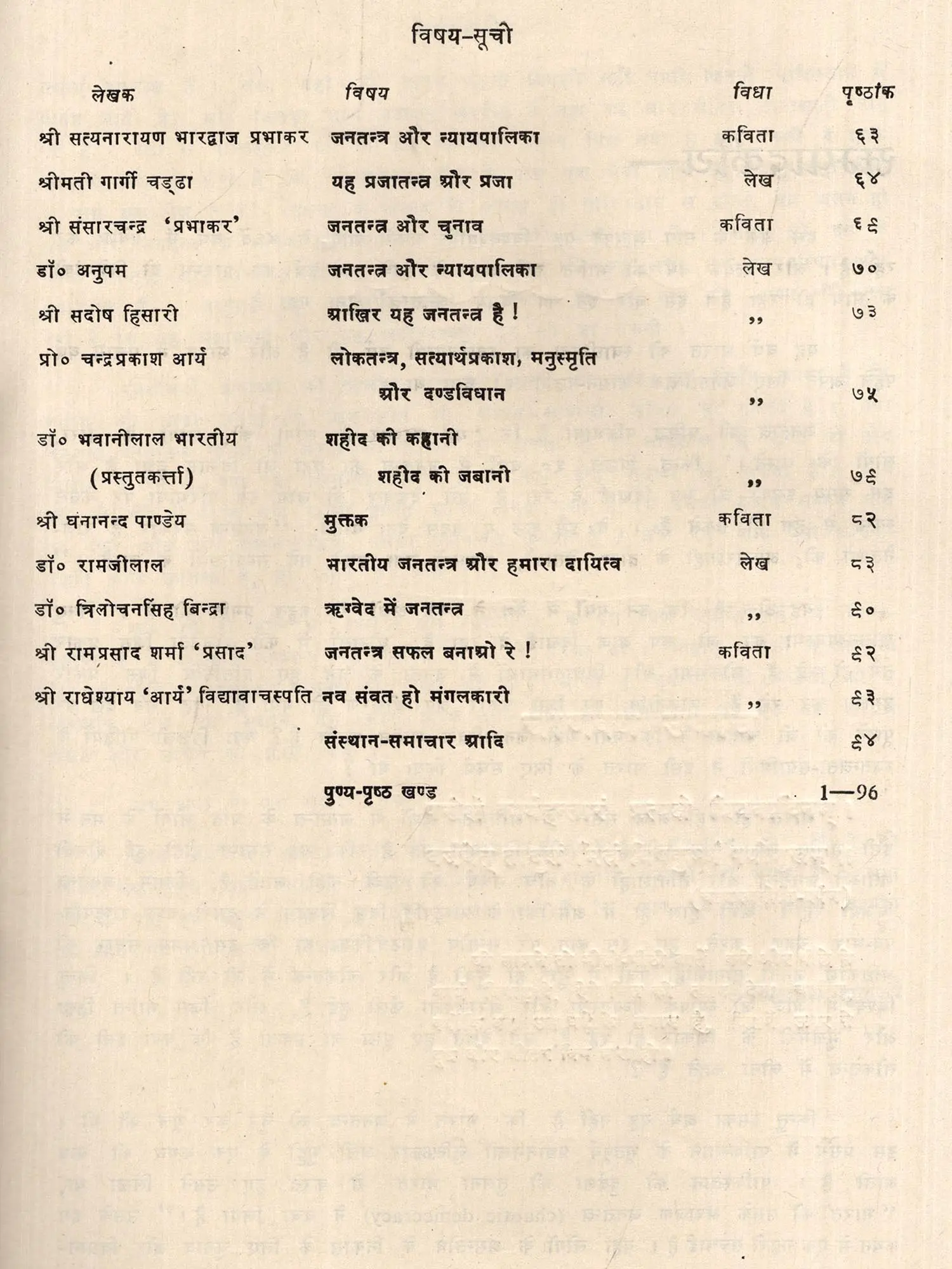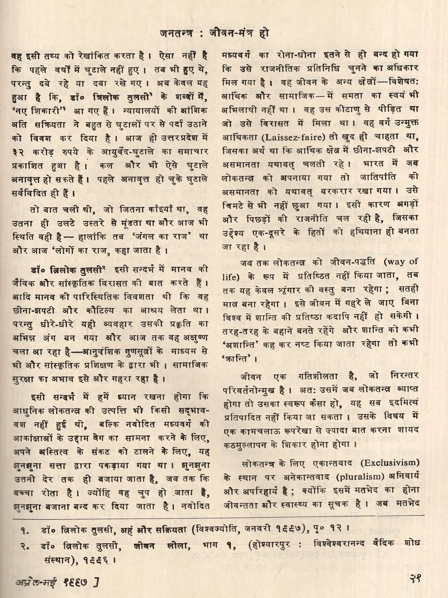 - इस अंक के साथ आपको यह रही है। बऔर प्रत्येक वर्ष की भान्ति विश्वज्योति अपनी द्यायु के ४६वें वर्ष में प्रवेश कर इस बार भी इसके नव वर्ष का प्रारम्भ दो विशेषांकों के साथ हो रहा है। इस बार इन का विषय 'जनतन्व' चुना गया है।
