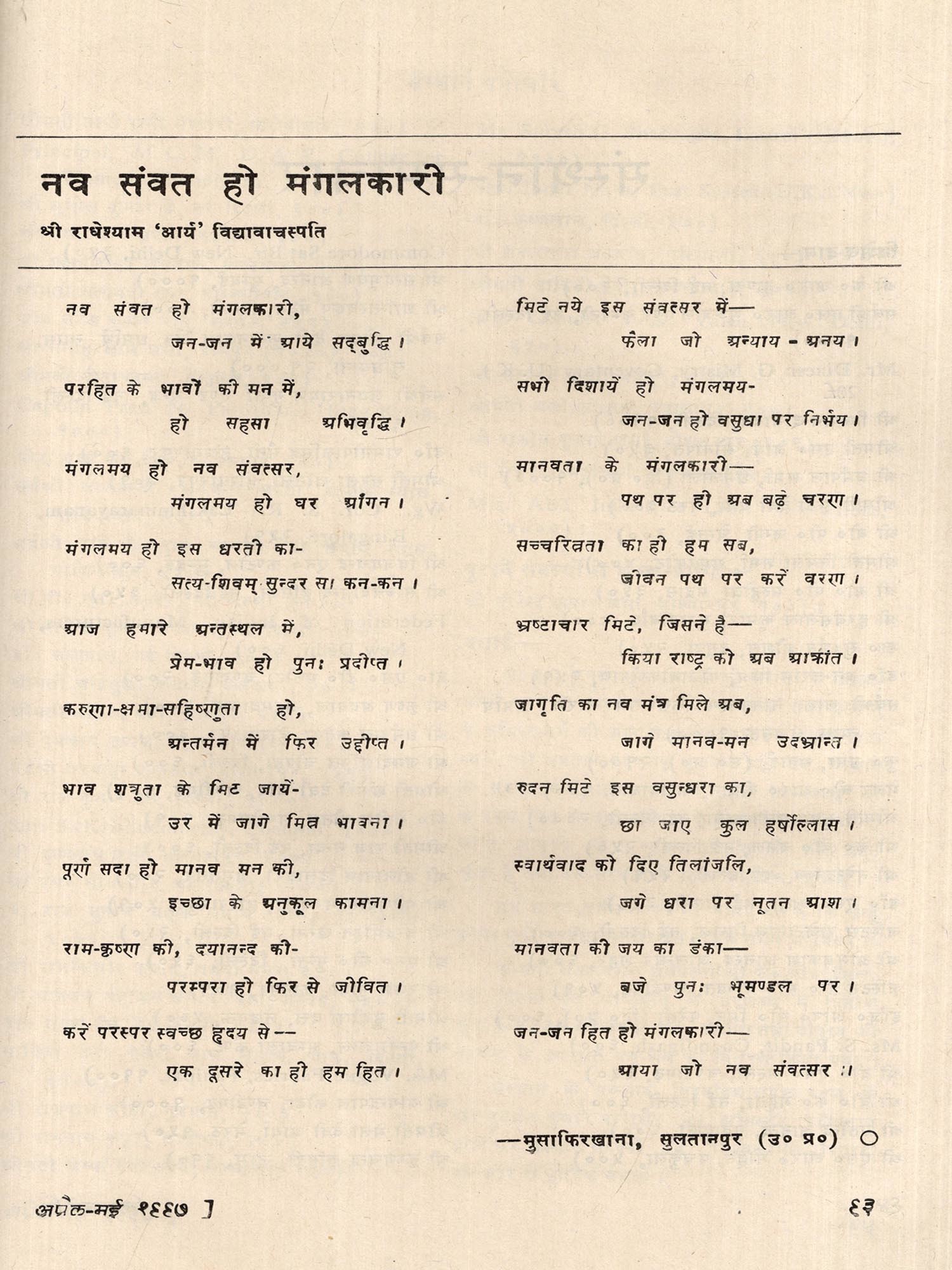 इतने वर्षों से आपकी यह पत्रिका जो नियमित रूप से प्रकाशित हो रही है तो इसका श्रेय इसके सुधी पाठकों, विद्वान् लेखकों तथा दानवीर सज्जनों को जाता है। आप सब के प्रति हम बहुत आभारी हैं और आशा करते हैं कि आप सब का सक्रिय सहयोग हमें आगे भी इसी भान्ति मिलता रहेगा ।