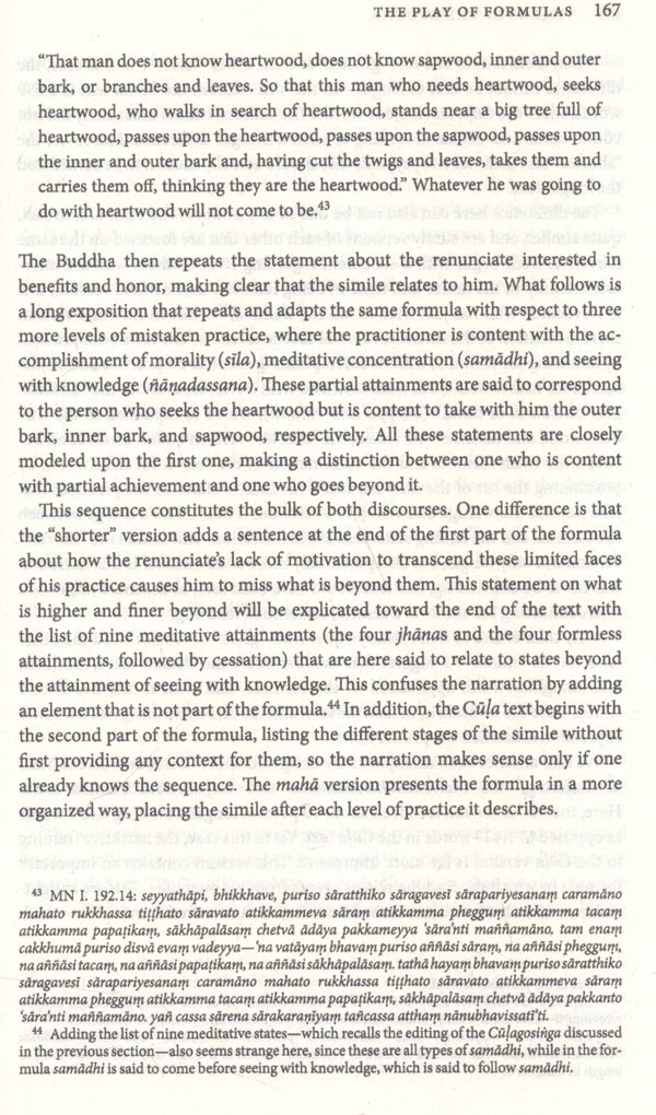 This work has matured over a number of years, and there are many people and institutions to whom I am grateful for making it happen. Interestingly, while Jerusalem is obviously the center of the world, it is somehow on the margins of academic travel routes, so that this book emerged very much through conference presentations and lectures. The project began if one can really define such a beginning-when I was invited by Natalie Gummer and the late Luis Gomez to participate in a conference on "The Language of the Sütras" at the Mangalam Institute in Berkeley in the summer of 2015. Inspired by their call, I first gave voice to the intuitions about text I had been cultivating. In the same spring I gave two talks in Germany, which helped me refine my ideas. The first was at the CERES Center at Bochum University, one of the best places I have found to discuss religion, and particularly so with my hosts Carmen Meinert and Volkhard Krech. The second was at the Indology Institute at Leipzig, which was followed by enriching discussions with Eli Franco. Later, I spoke about the key ideas expressed in Chapter 3 in a conference on Buddhaghosa organized by Maria Heim at Amherst in the fall of 2016, and then in a panel on "Buddhist ways of reading in the conference of the International Association of Buddhist Studies, organized, again, by Natalie Gummer and Maria Heim, and yet again at Bochum in a conference on "Self-reflective traditions." The responses I received on all these occasions were very important for me as well. Materials from Chapter 4 were presented in a February 2019 conference of the "Belief Narratives Network" in Guwahati, Assam. There I learned much about the real life of religion at its intersection with folklore, and was greatly enriched by the feedback of participants, and especially that of ÜloValk. A more mature presentation of my ideas was given in Jerusalem in December of the same year in the conference on "The Idea of Text in Buddhism," generously funded by the Khyentse Foundation, where I had the opportunity to share my ideas with some of the great luminaries of Buddhist studies and to feel that my ideas-and especially the more radical theory of the play of formulas-received good resonance. There, the responses from Paul Harrison and Mark Allon were of special value to me. Mark also read and commented on significant parts of the manuscript, as did Petra Kieffer-pülz, to whom I offer my sincere thanks. Charles Hallisey was present in many of these events, and has taught me more about Buddhism, and about text, than anyone else. He has been a wonderful inspiration and support all along, and has had a profound effect on my academic path.