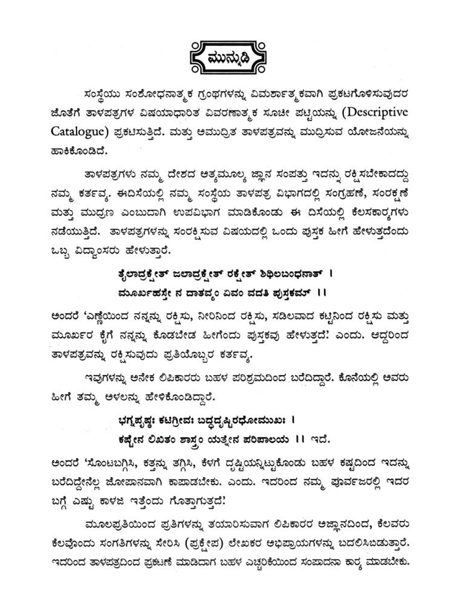 ಕನ್ನಡ ಹಸ್ತಪ್ರತಿಗಳ ವರ್ಣನಾತ್ಮಕ ಸೂಚೀ- The Index of Kannada Manuscripts: An Old and Rare Book (Kannada)