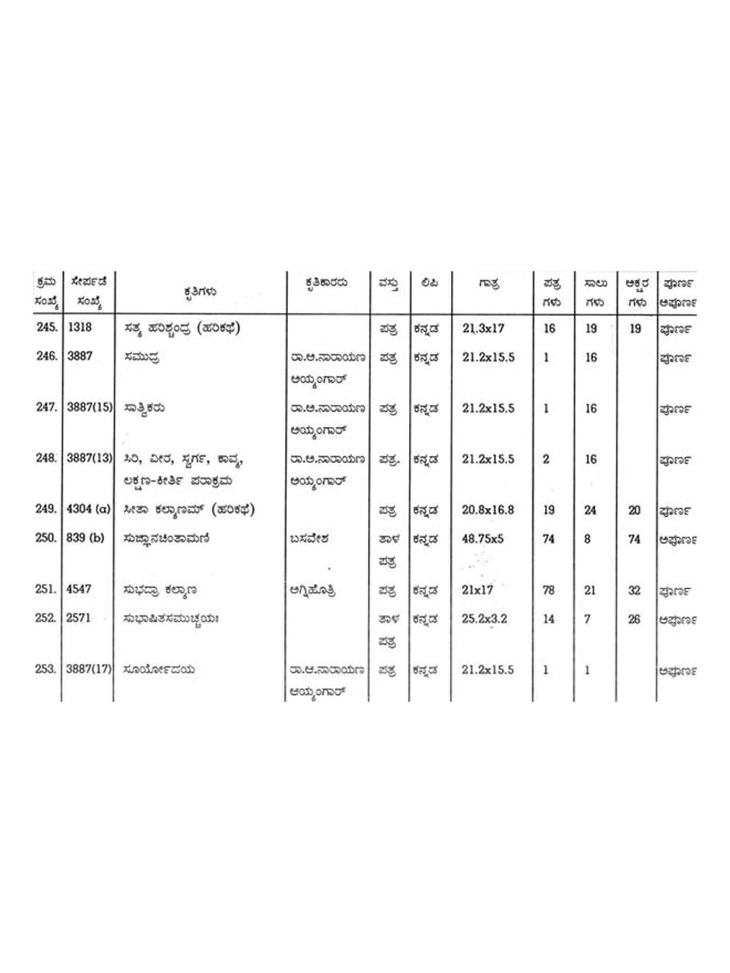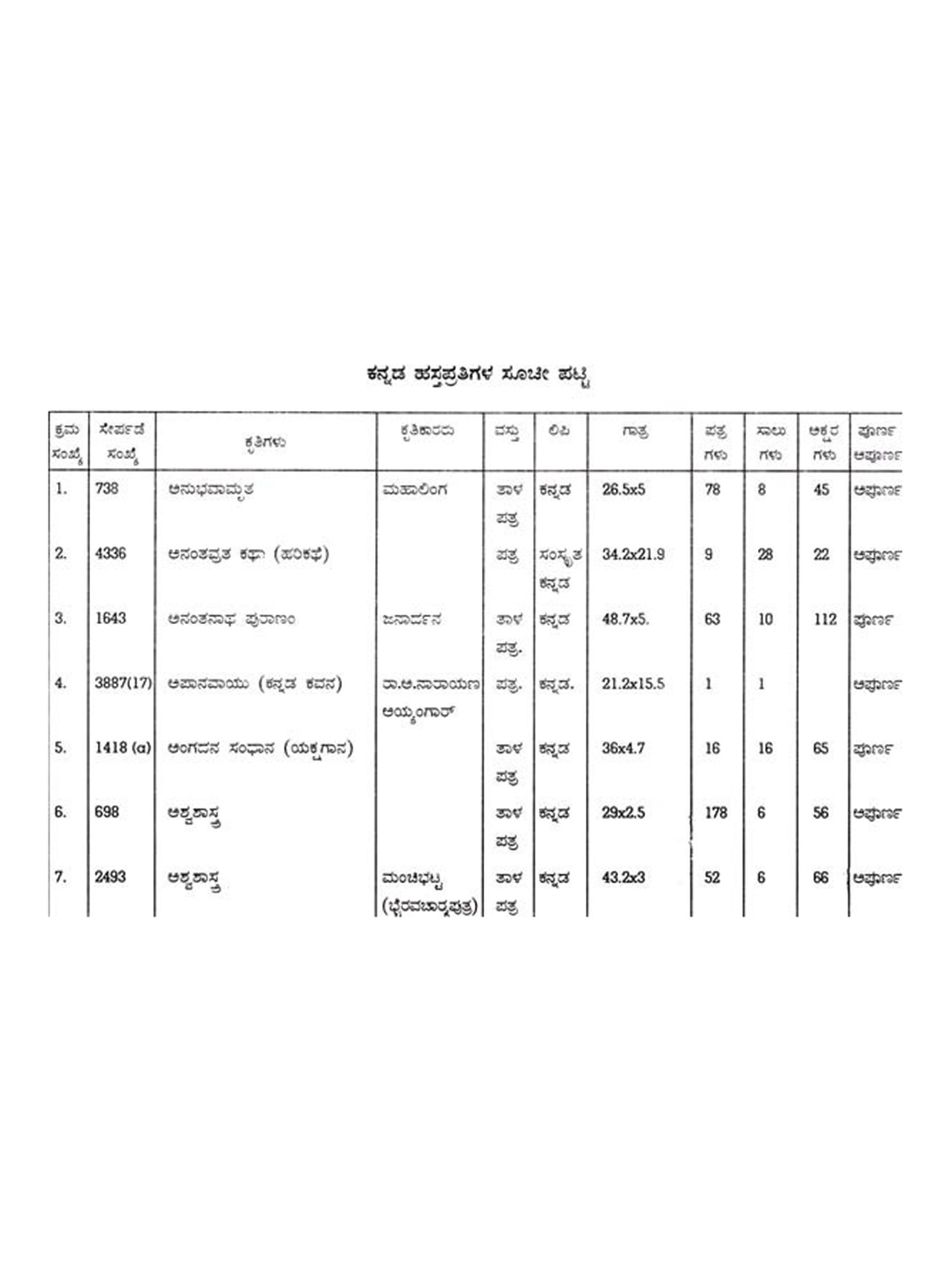 ಕನ್ನಡ ಹಸ್ತಪ್ರತಿಗಳ ಮೈ ಕ್ರೋಫಿಲಂ ಸೂಚಿ- Catalogue of Microfilmed Manuscripts (Kannada)