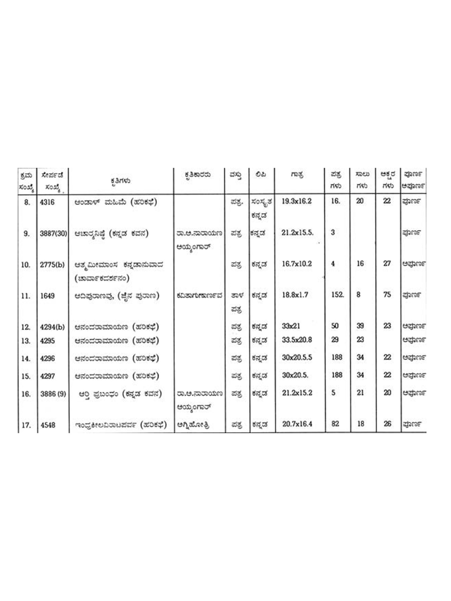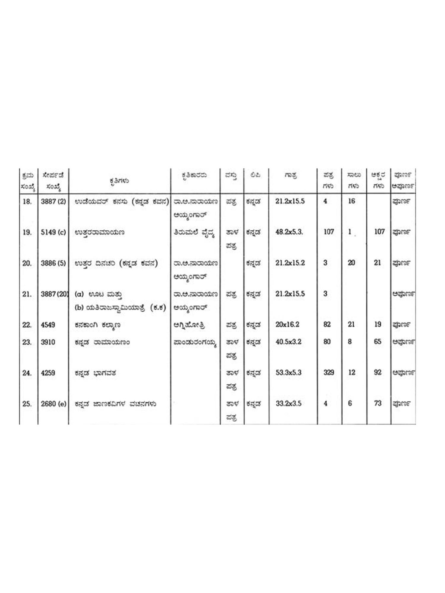 ಕನ್ನಡ ಹಸ್ತಪ್ರತಿಗಳ ವರ್ಣನಾತಕ ಸೂಚಿ- Descriptive Catalogue of Kannada Manuscripts (Kannada)