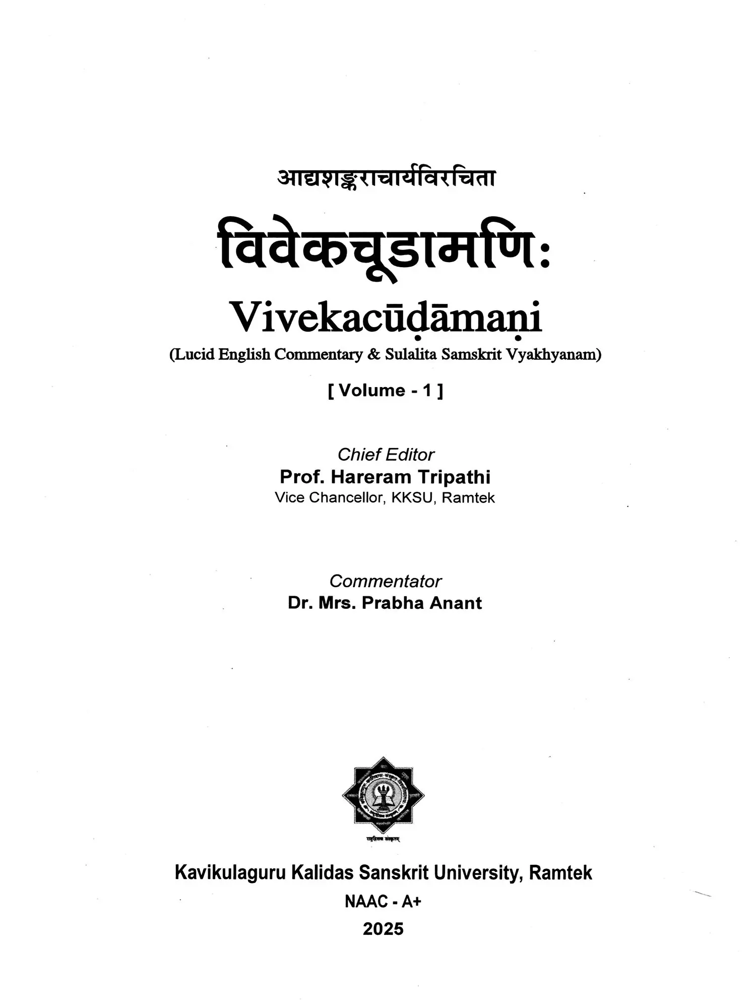 I congratulate and extend my sincere thanks to Dr. Mrs. Prabha Anant for the commentary on Vivekchudamani for publication of such a quality work. I also congratulate Prof. Krishnakumar Pandey, Director, Publication, Prof. Parag Joshi, Deputy Director, Publication and Dr. Devanand Shukl, Member Secretray who has taken all possible steps for publication of this work.
