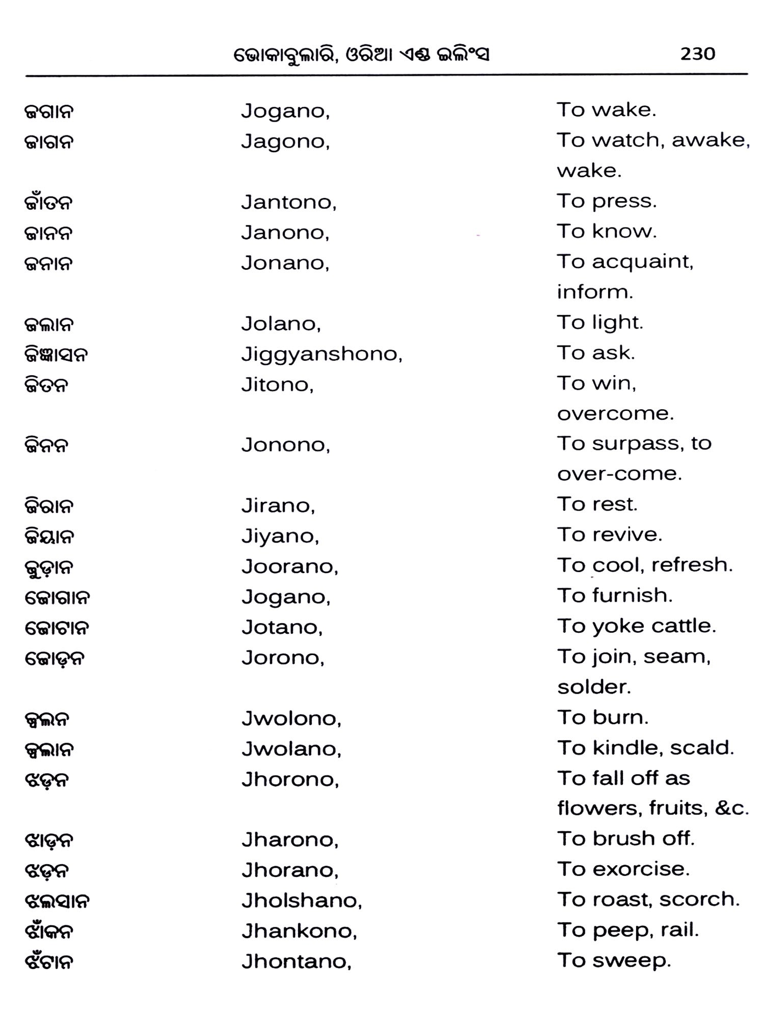 ଓଡ଼ିଆ-ବଙ୍ଗଳା ସାଧାରଣ ଶବାଚଳୀ (ওড়িয়া-বালা সাধারণ শব্দাবলী): Odia-Bengali Common Vocabulary