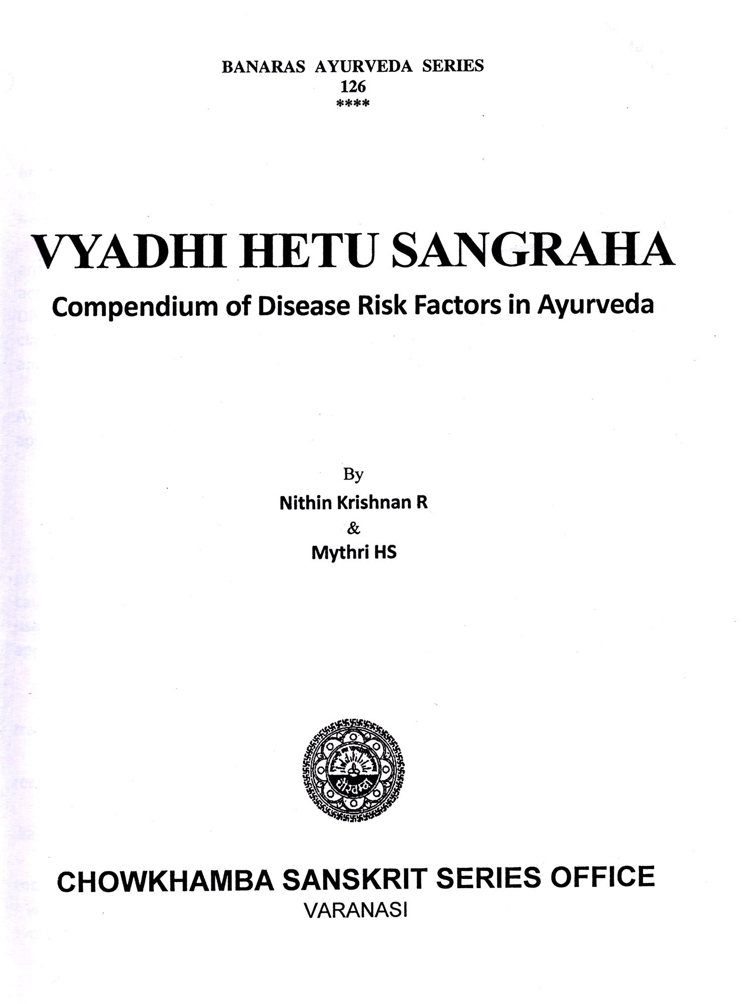 Despite the profound wisdom contained in classical Ayurvedic texts, a systematic and structured compilation of all disease risk factors has remained a need in Ayurvedic academia, research, and clinical practice. Vyadhi-Hetu-Sangraha, or "Compendium of Disease Risk Factors in Ayurveda," has been envisioned as an effort to consolidate, classify, and translate the causative factors of diseases for easier reference, research, and practical application.