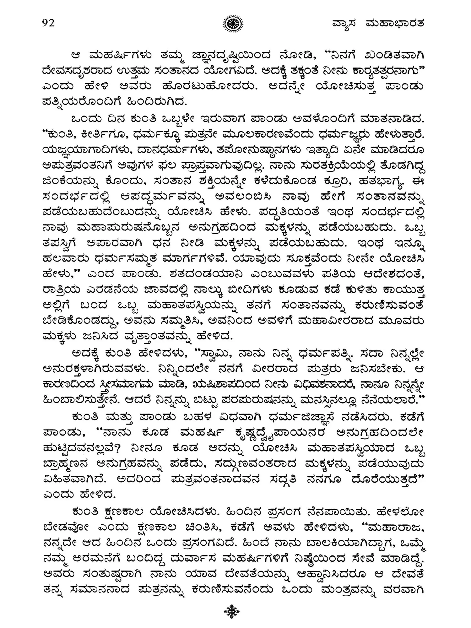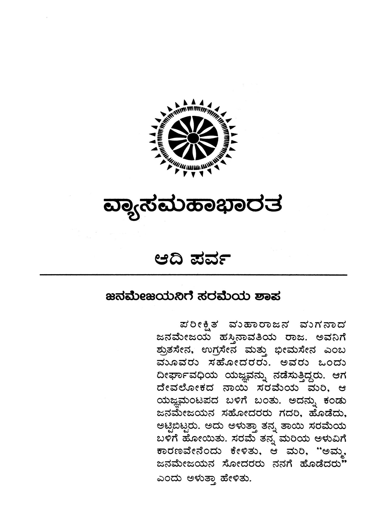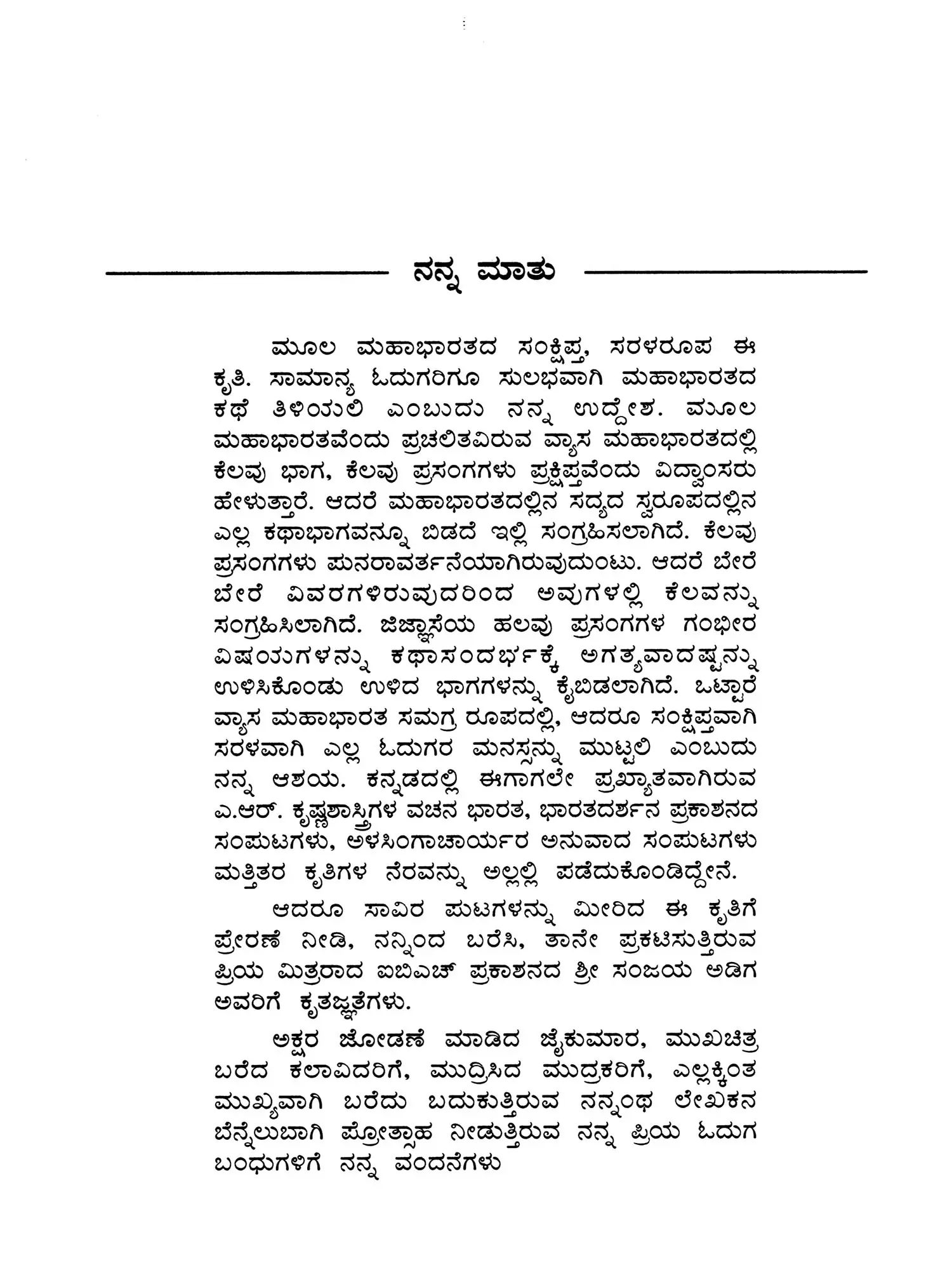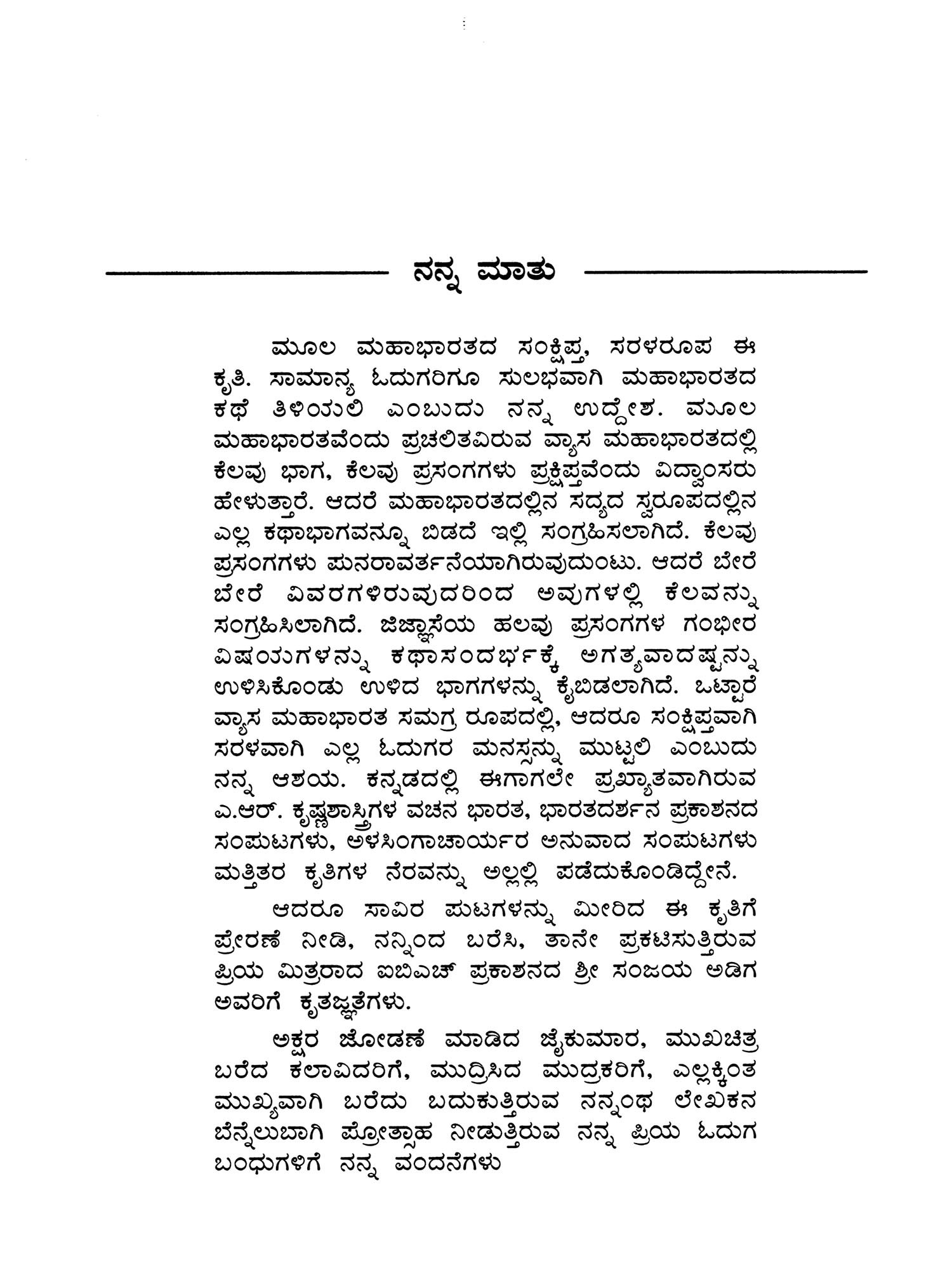 Vedavyasa Praneetha Mahabharata: A Prose Rendering and an Abridged Version of Mahabharata (Kannada)