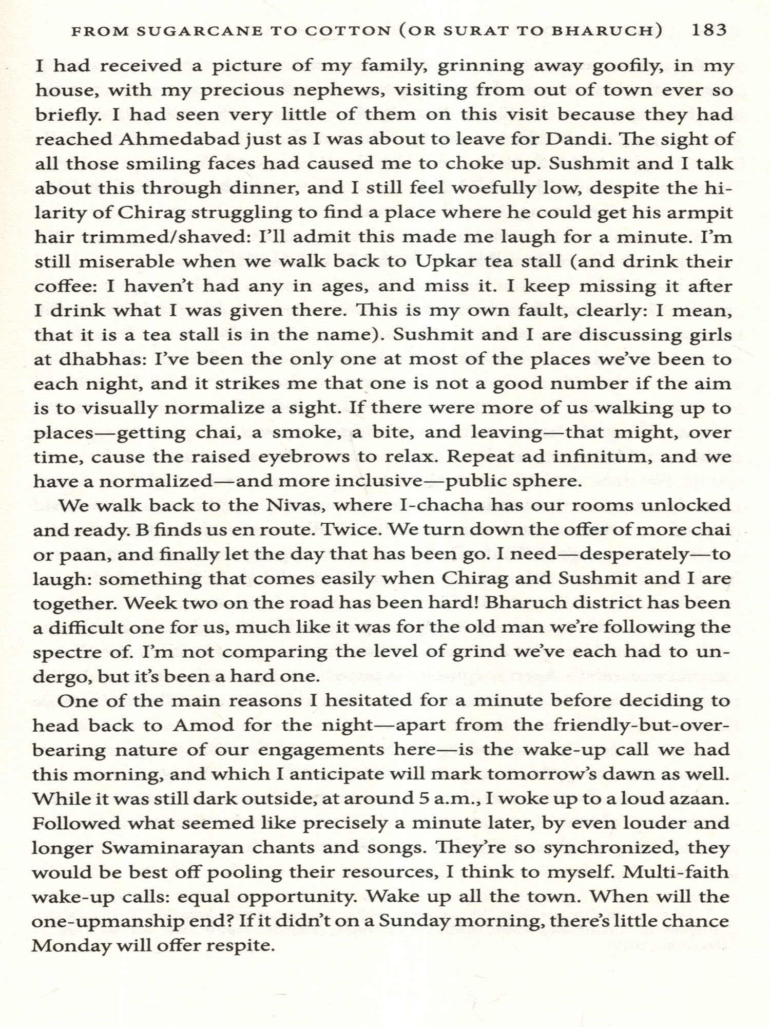 To all the people we met enroute, who gave us so fulsomely of their hearts and homes and time and selves: Kamleshbhai who made us the best pakodas I've ever eaten, Jitubhai who made Ankleshwar resound with love, Bharatbhai who rode all the way to Jambughoda to say 'hello' again, Ileshbhai who tends the flame in Borsad-I hope you see some-thing of yourselves in the pages that follow.