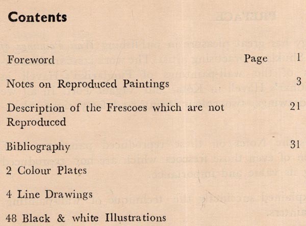 Two coloured-plates and one line drawing for the Jacket of the book and some other drawings showing the detailed studies of the frescoes are also added.