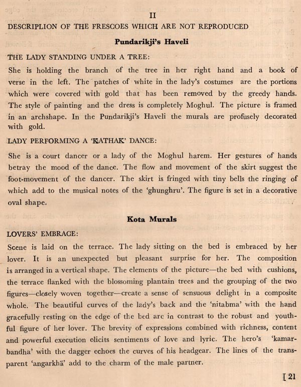 In this monograph the murals of the above cited places, with particular reference to an excellent nucleus of murals of the Nagaur Fort, are studied in ritu and noted in detail-technically, stylistically and thematically. The forty-eight photographs of the murals of the sites mentioned above are reproduced here with detailed annotations and connotations in black-and-white.