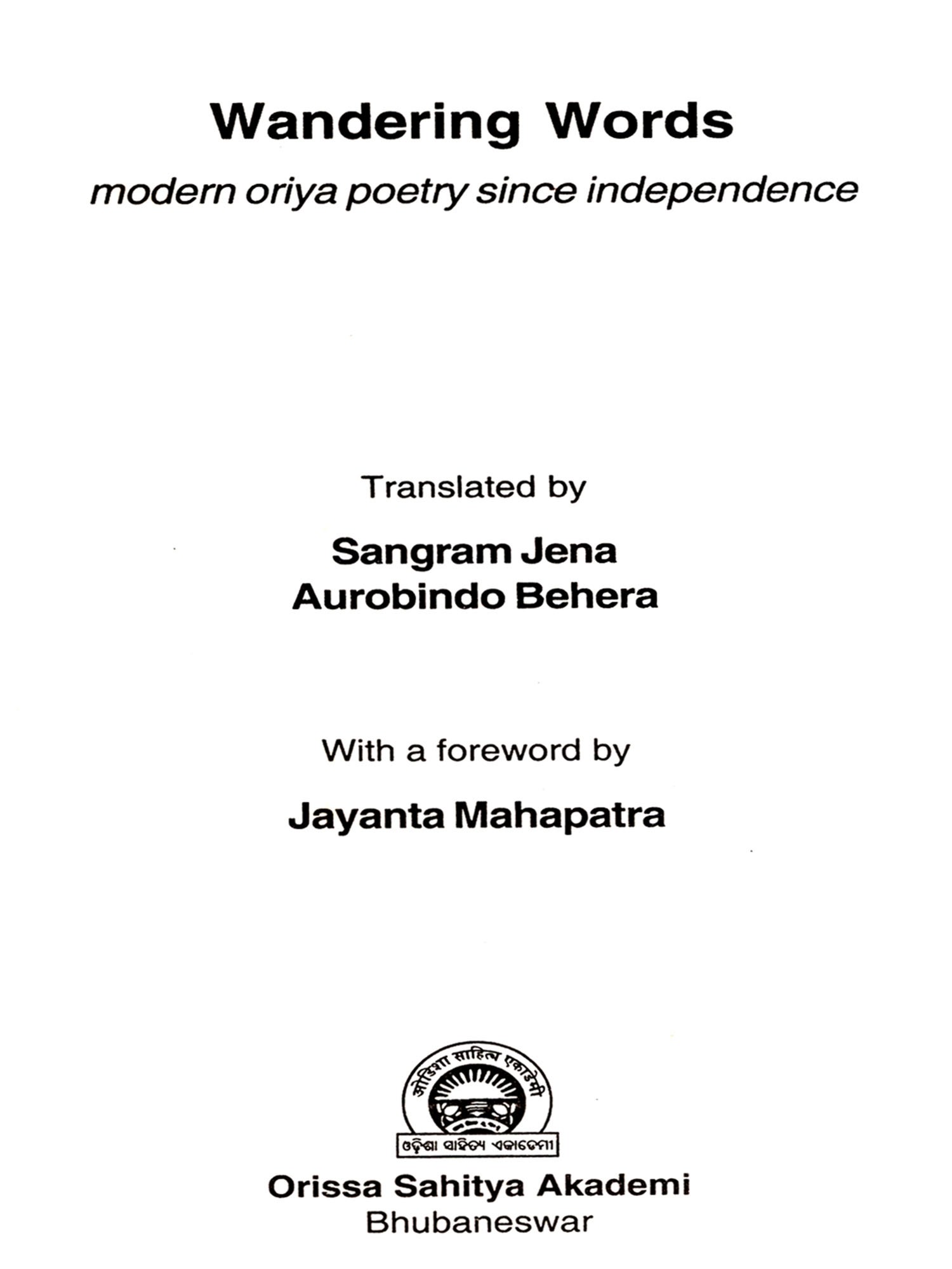 Wandering Words: Modern Oriya Poetry since Independence consists of one hundred and one poems, each translated from the Oriya original by Sangram Jena and Aurobindo Behera, both translators of repute. In a country where bilingual education has, in the last fifty years, become the unwavering rule, the result is a poetry in English where the poems examine what it means to be a writer in our time.