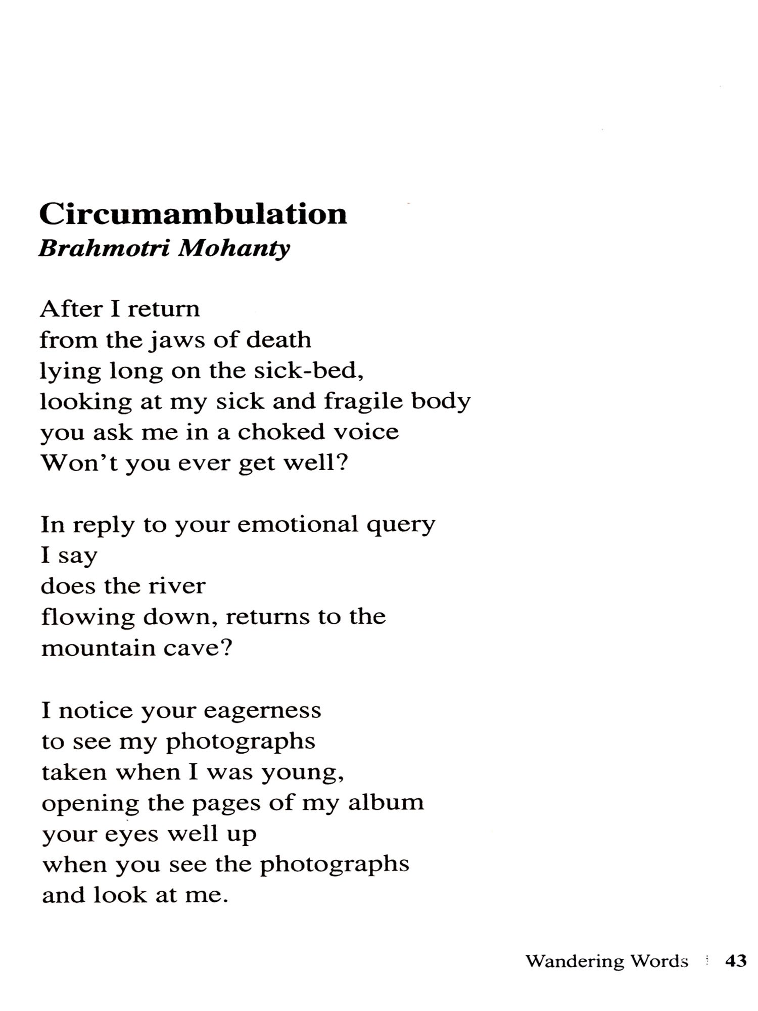 Wandering Words should help in giving non-Oriya readers a direction into the dimensions of an adult Oriya poet's imagination. The wind, the Orissan sun and the monsoon rain pass through these poems. Readers will discover the connection between city and village, between love and hope, between joy and loss. Perhaps the first commitment of the translators has been to the truth. But often, truth itself is prone to sacrifice.