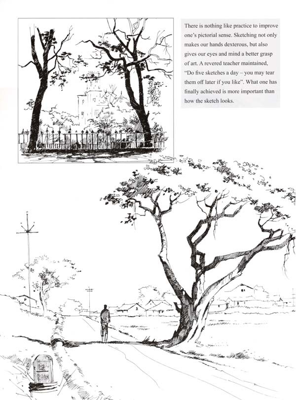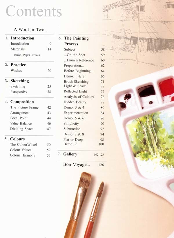 Doing watercolours is essentially quite different from painting in oils. Oils being an opaque medium, colours form layers as and when applied. If form or composition is found to be incorrect or a colour scheme has gone wrong, it is possible to mend one's work by simply re-painting just that particular patch. There is absolutely no such chance in watercolours.