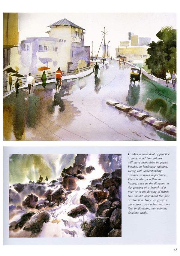 Fluidity which is the main characteristic of watercolours can be a challenge. The natural tendency of the colours to flow freely on paper has to be regulated and blended, to achieve the desired effect - and herein the skill of the watercolour painter is really put to test. The skill of the artist is in trying to win the contest between his mind trying to paint a picture and the colours, which seem to have their own will!