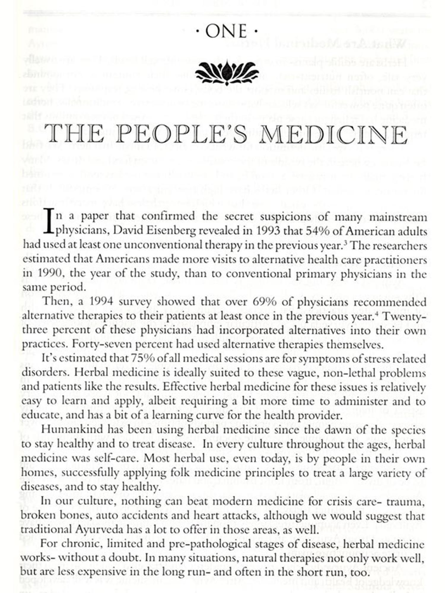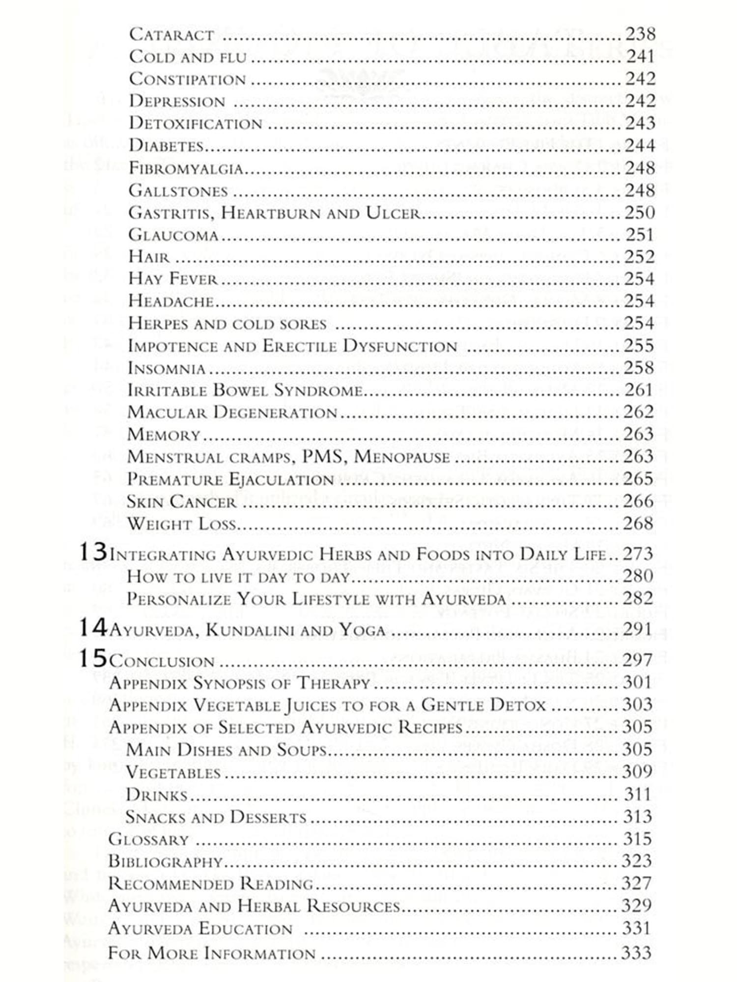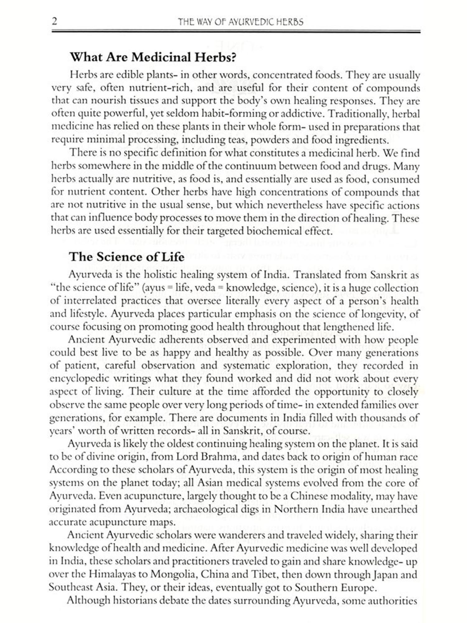 Understanding Ayurvedic herbalism can keep you well. With the knowledge you are about to share, you can achieve balanced health. And balanced bealtis van be a priceless gift. Imagine a time in the near future when you're free from sickness, when you haven't been bothered by even a sniffle or a rash for a long, long time. Ayurveda helps that future become a reality. Both authors are living proof of the power of natural medicine. We've seen thousands of patients regain vibrant health, and we're not alone. An entire new generation of natural medicine therapists is transforming the health care systern in America. They are using ancient techniques, from around the world, right alongside modern ones, These are hopeful signs at a time when future health conditions are reported to be harsh. Amid a rising wave of oddball bugs and scary epidemics, resistant to the best of conventional medicine, dread is running high. We are sure you, like other Americans, want to know what you can do to protect yourself- not only against an unknown future of infectious disease, but the degeneration, aging and daily irritations that undermine the quality of our lives. You are likely hungry for answers that offer promise. If the conventional treatments on which you have relied are failing you, there is no better investment you can make in your future than to learn and incorporate practical Ayurveda. In this book, we will make the rich, historically potent herbal traditions of India useful and constructive in an everyday way for everyday people. Michael Tierra, L.Ac., O.M.D., A.H.G., is one of the founders of the North American natural health movement, and was one of the first acupuncturists to be licensed in the United States. He began his herbal and natural healing studies in 1968, while living in a community in the Klamath National Forest in northern California. There he learned the wild forest plants and healing ways of the Karok and Yurok Indians. Starting in 1970, Michael studied and apprenticed with Norma Meiers and Dr. John Christopher in Vancouver, British Columbia, Canada, and began his Chinese medicine and acupuncture studies with Efrem Korngold, Foon Lee Wong and Mariam Lee in San Francisco. Soon his studies channeled into practicing and teaching in San Francisco. Additionally, he began studying Ayurvedic medicine and yoga with Baba Hari Dass, which later precipitated his move to Santa Cruz, California. In 1976, Michael started the first holistic health school in Santa Cruz, The Garden of Sanjivani, where he was the director and teacher in residence. Michael Tierra's work spread and he began writing for numerous publications and teaching at many schools, including Norma Meiers' Herb School in Vancouver, British Columbia, The California School of Herbology, Heartwood College, Esalen Institute, American Herbal Academy, Santa Barbara Center for Holine Studies, Antioch University and Ojai Institute. Later he authored the nationally acclaimed herbal books, The Way of Herbe, Planetary Herbology, and The Natural Remedy Bille (co-authored with John Lust). His East West Comesponden Comuner in Herbolegy has educated a generation of herbalists, Ayurvedic medicine in India for three months and Chinese medicine and During those times, Michael received his .A. and N.D. credentials, studied Herbal Symposium, in 1979, he received a distinguished achievement award as a herbology in China for one and a half months. At the internationally recognized Master Herbalist from Dr. Christopher. in In 1989, Michael Tierra founded the American Herbalists Guild, an organization whose goal is to establish standards for the professional practice of clinical herbal medicine in the United States. He received the degree of Orientad Medical Doctor (O.M.D.) from the San Francisco College of Acupuncture 1987. Subsequently, he was part of the first group from the United States to study herbal medicine in China. He is co-founder of the American School of Botanical Medicine, and The East West College of Herbalism, which is recognized as an accredited professional herbal college in the United Kingdom. Each year, în the spring, Michael and his wife, Lesley, travel abroad to teach at the East West College. Michael still lectures throughout the world. Karta Purkh Singh Khalsa is an herbalist, nutritionist, yoga teacher and educator. He has been making natural healing approaches palatable to the modem mind for over thirty years. His students find extraordinary benefits and reprieve from a vast range of health concerns by making these principles part of their lives. For the first thirty-two years of his career, he was the herbal apprentice of an Ayurvedic master, Yogi Bhajan. It has been his good fortune to have been involved in the American renaissance of modern herbalism, and particularly the introduction of Eastern ideas, from its beginning in the 1960s. His interest in natural healing techniques developed because, as a child growing up in Oregon, he had a rare, serious disorder, and several serious illnesses. As a young adult, he studied a wide spectrum of physical and mental health care therapies from all over the world, and was successfully healed. He focused especially on Ayurvedic medicine and on the therapeutic value of yoga, meditation, and other studies of consciousness. Khalsa is the author, editor or contributor to over 30 books on natural healing topics. He co-authored Herbal Defense (Warner Books), an exciting book for the popular market, on the use of herbs for staying healthy in modern times, and Body Balance (Kensington Publications), a guide to healthy body chemistry. With over 1,000 articles in publication, he is a frequent contributor to mainstream and professional publications in the natural healing field, and is a contributing editor for Let's Live, The Herb Quarterly, Better Nutrition, Herbs for Health and Great Life magazines. Khalsa was the founder of Seattle's first multidisciplinary holistic clinic.