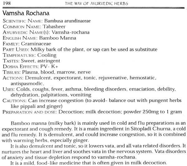 “Ayurvedic herbology is the ancient Vedic science of healing the body, mind and spirit. It is evidentially proven medicine that is traditionally accepted throughout India and abroad. The rasa (taste), virya (energy) and vipak (post-digestive effect) of the herbs are beautifully explained in the ancient texts. This book will give the light of Ayurvedic herbology to both the students and practitioners of herbology.”