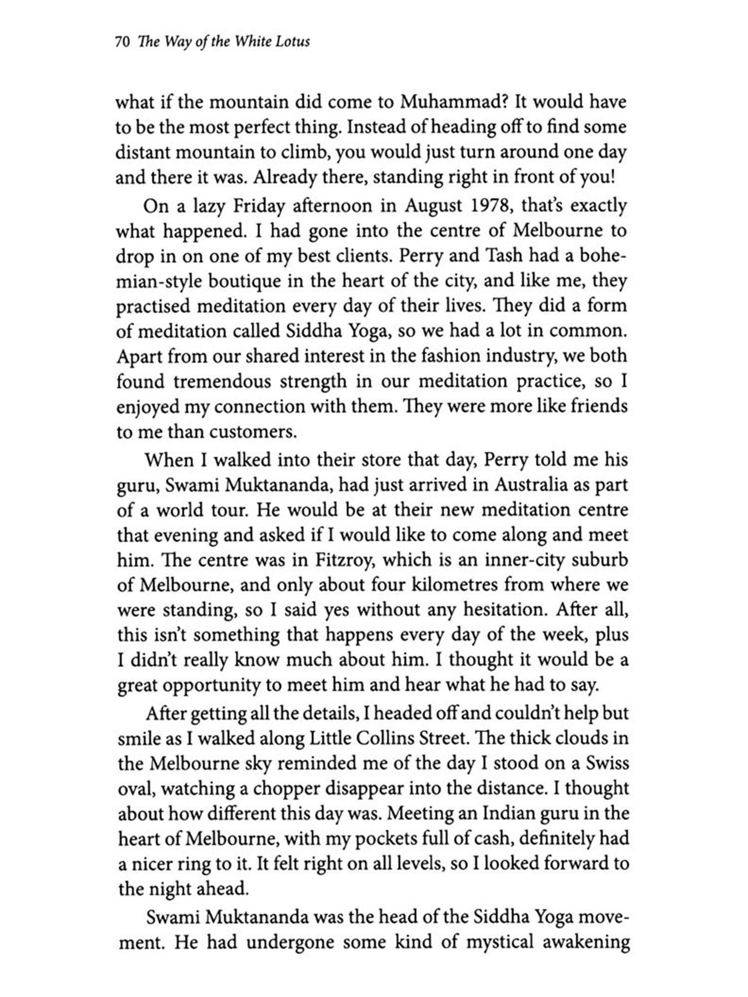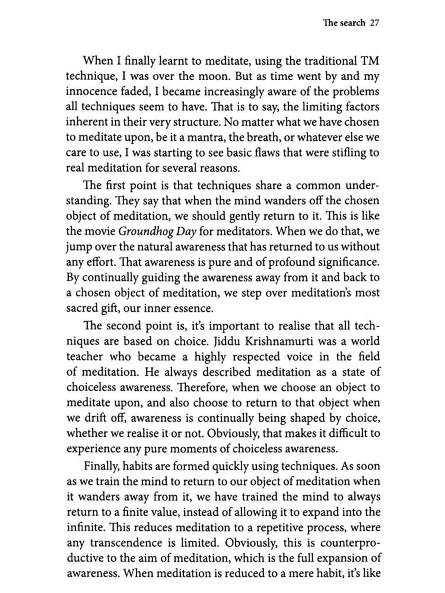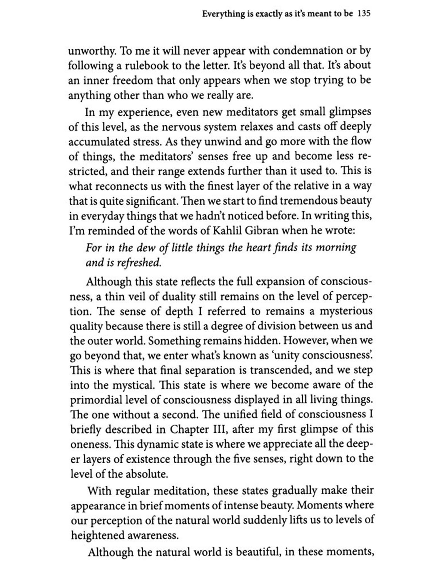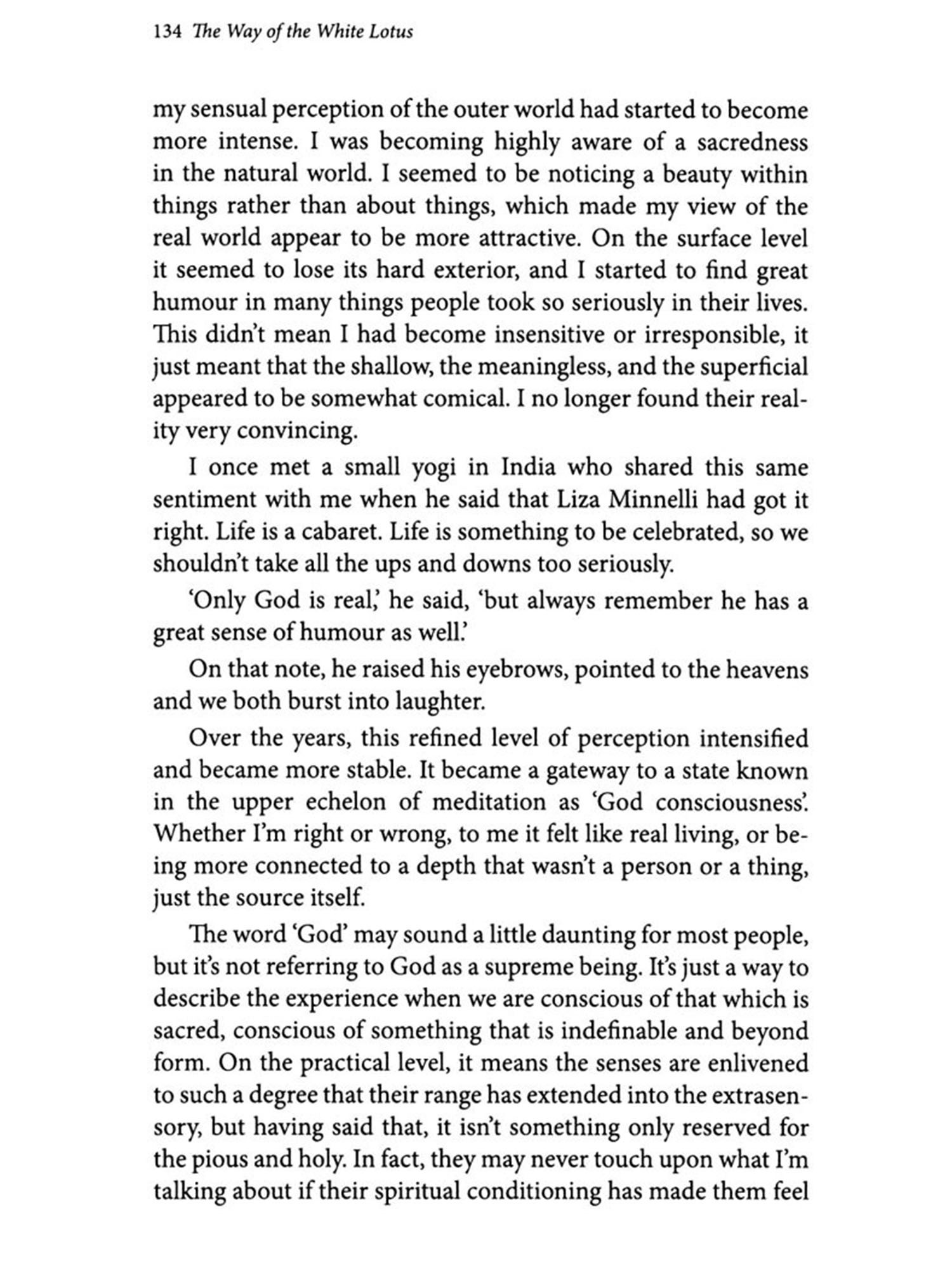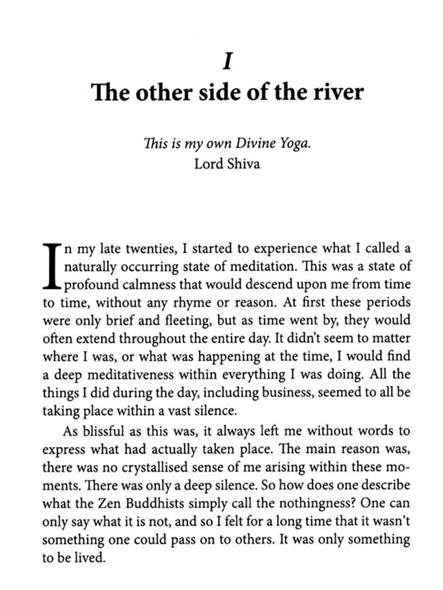 I don't place a lot of importance on experiences in meditation. It's the one who witnesses them that really matters. However, this book begins with an unusual experience that occurred in Los Angeles many years ago. I had been going through a phase where I was having a lot of experiences in meditation that all seemed connected to that which is sacred. All the different names and forms that have manifested from it appeared to present themselves in some way. However, on this particular night, I stood before a massive peak of that mountain and realised, that which is sacred is actually beyond all form.