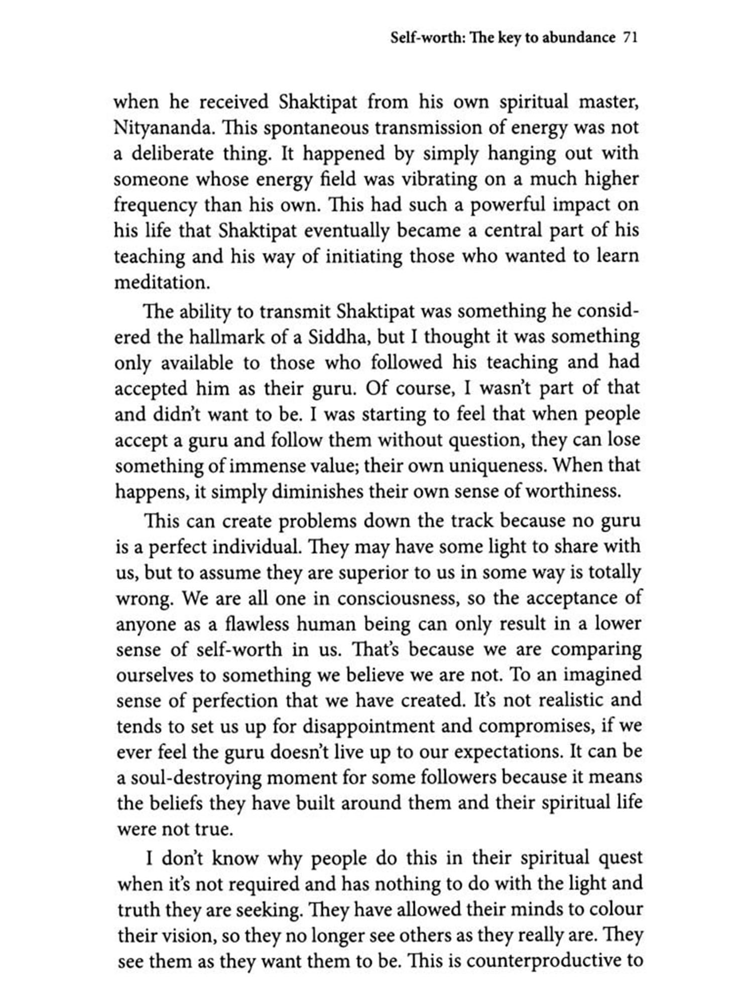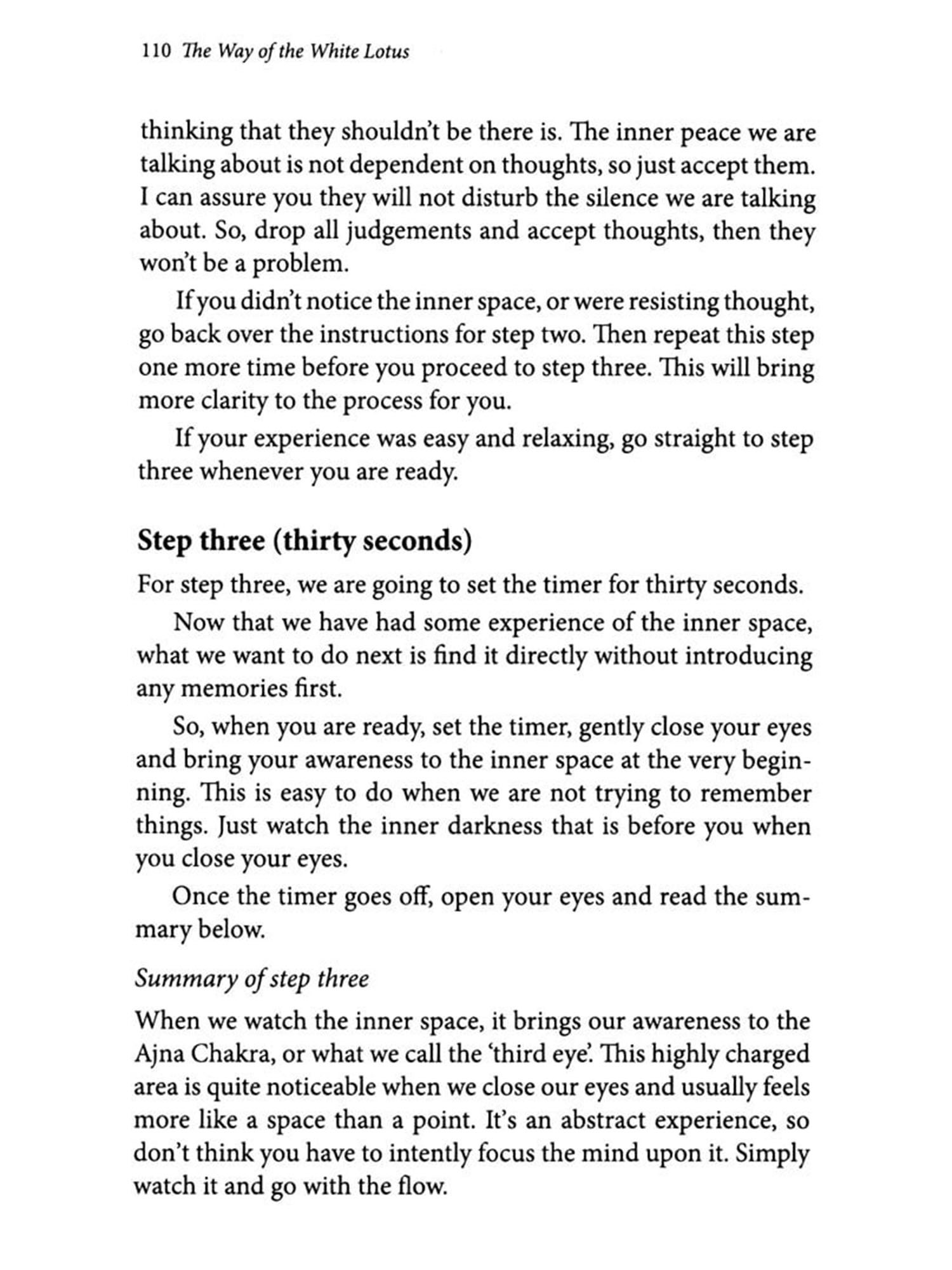 The book has much wisdom on how to deal with life and how to let go and have the universe guide you towards the resolution of your problems. It is a meditation practice that will help you live in the moment, which is all there is and which paradoxically opens the doorway to eternity.