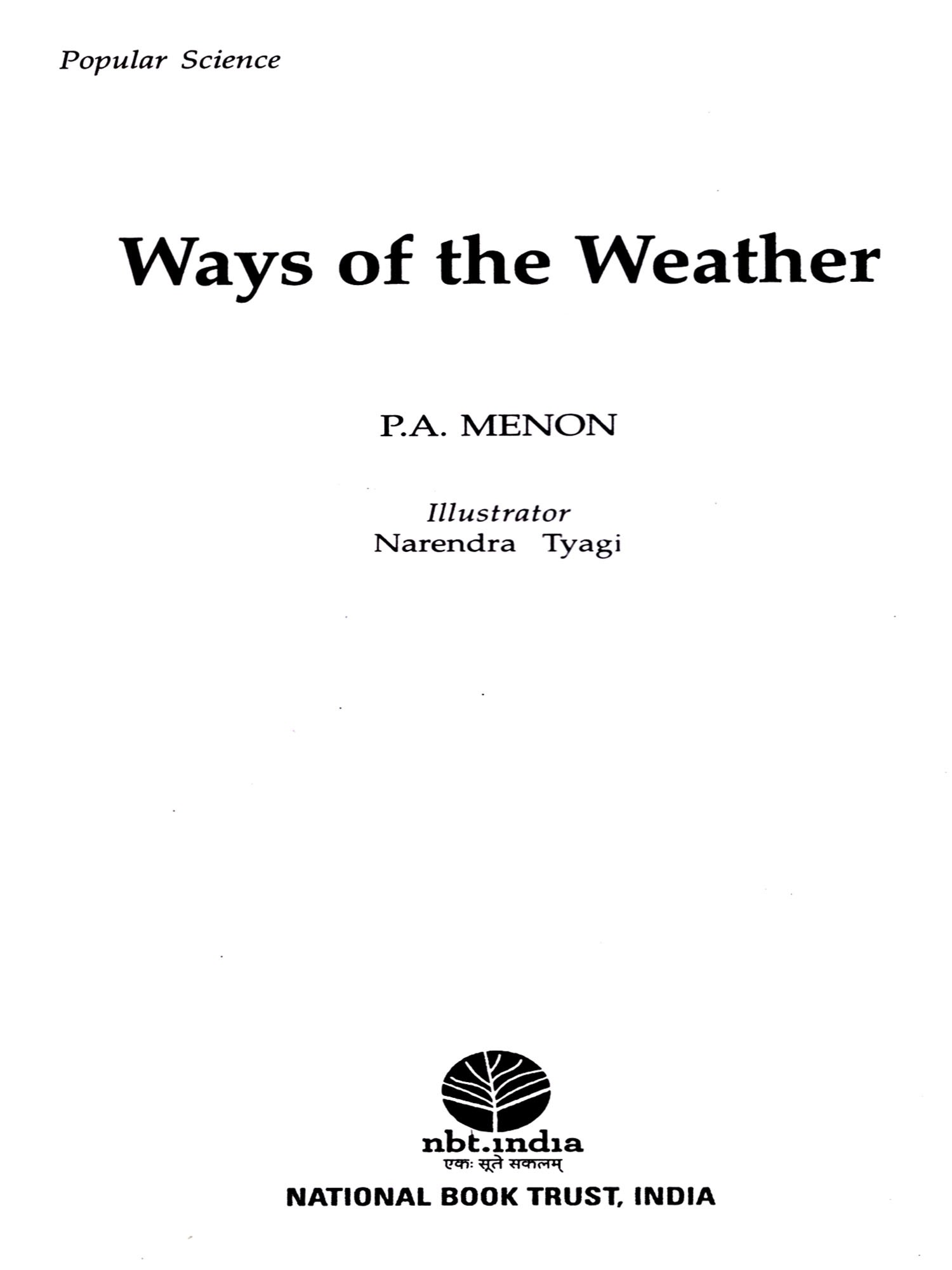 This book is an abridged version of my earlier book, Our Weather, published by the National Book Trust, India in 1989. The text, however, has been restructured and the language simplified. It is hoped that this book would help you in understanding the ways of the weather and the rationale of climate.