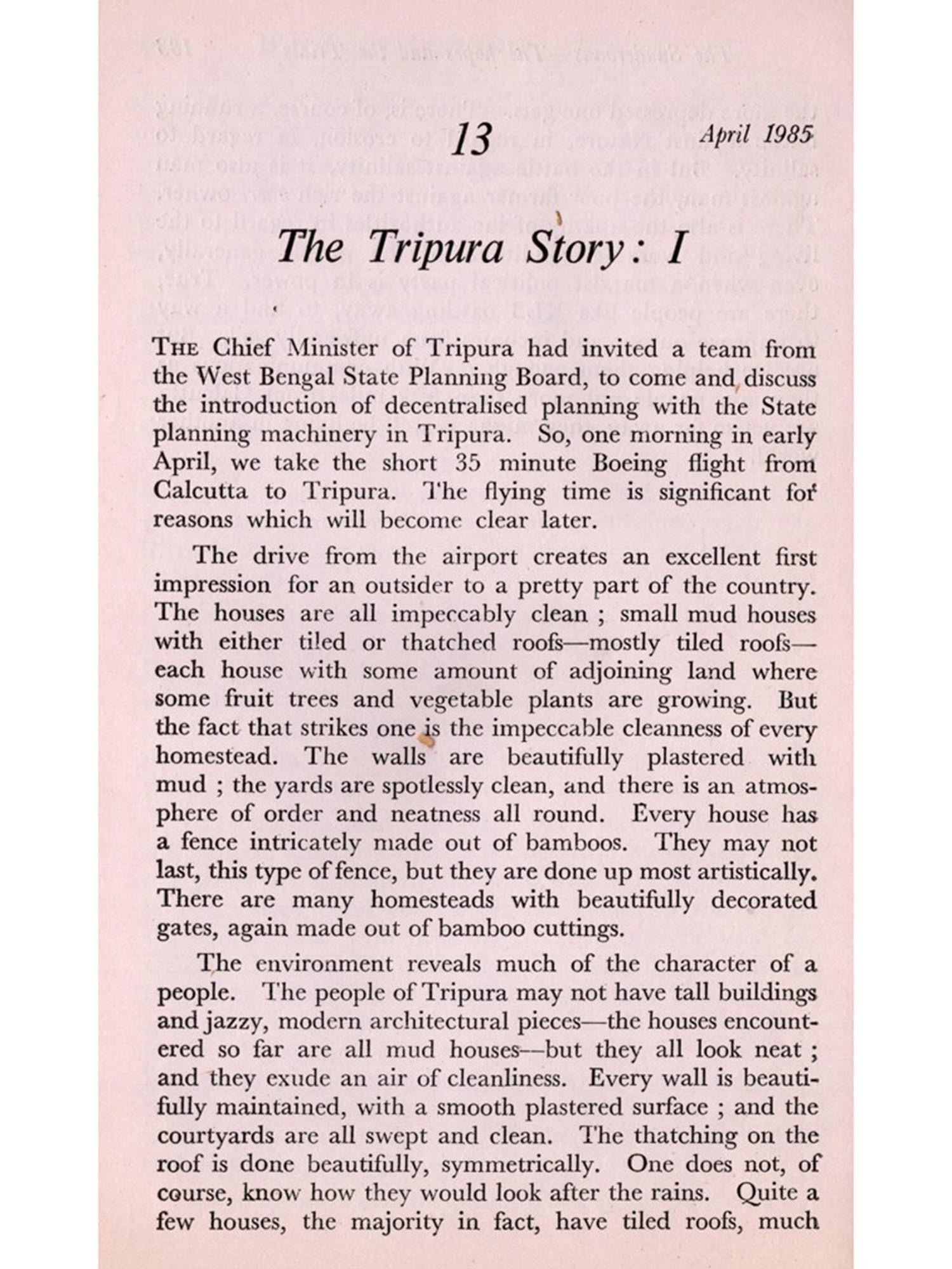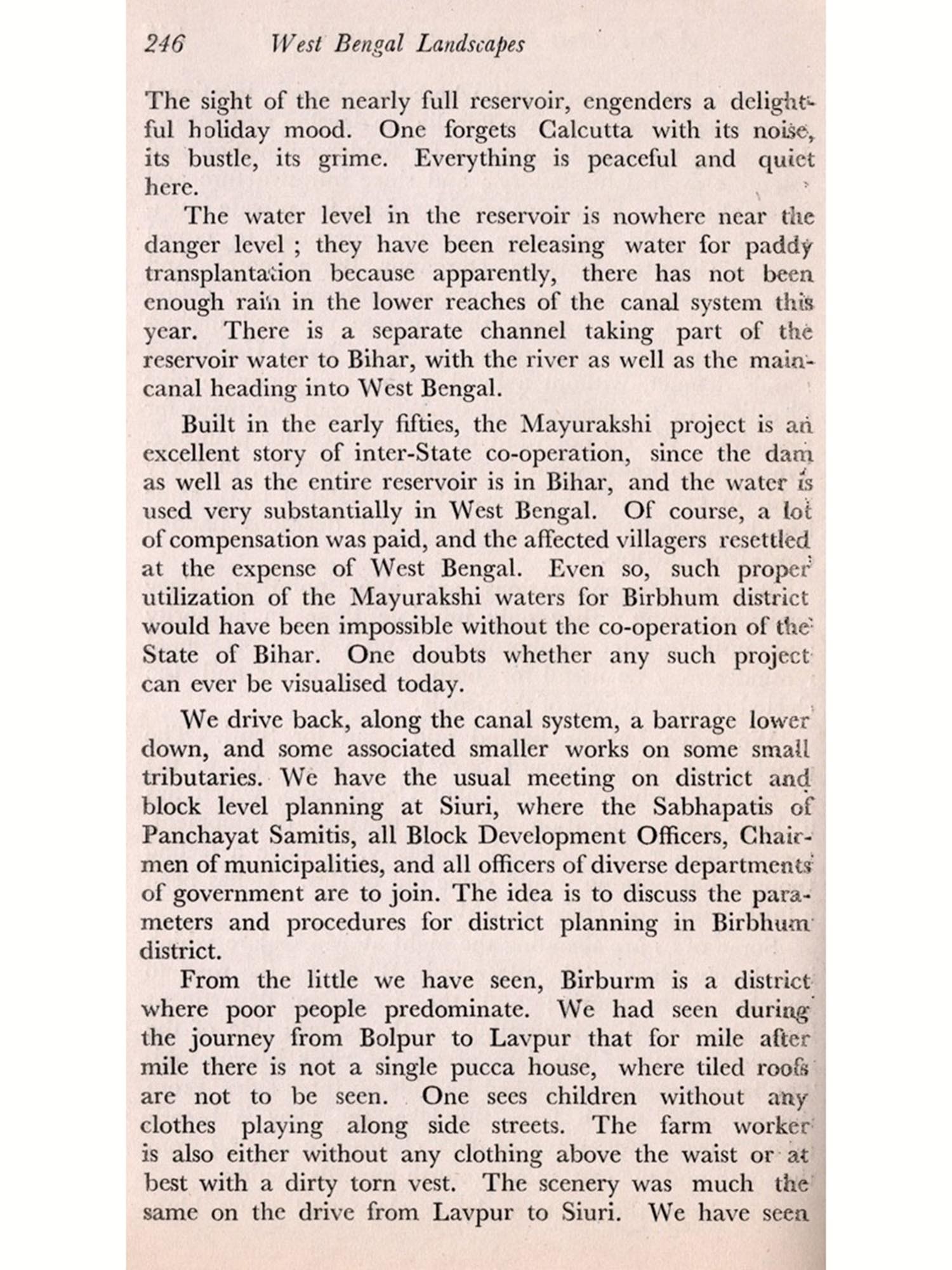 This book is concerned with a narration of the author's experience in regard to the introduction of decentralised planning (by the panchayats) at the block and district level in West Bengal. This narration takes the form of a travel diary; the author never having lived in Bengal earlier, tells of his impressions and experiences as he travelled around in the countryside, meeting the panchayat and departmental authorities in different parts of the State. The author's visits took him to some remote corners; and the book is thus an admixture of a travel diary, a record of the life and living conditions of the ordinary villagers, of the internal conflicts within government, of the problems facing the people, of the problems of reaching the benefits of planned development to the people, and of the problems involved in the introduction of decentralized planning through the panchayats. The different chapters, dealing with separate visits (and by and large separate themes) are self contained except that they are set chronologically in time. The under-lying strand of thought, emphasising the importance of relying on the peoples own judgment emerges as a lesson in governance in a democracy. In the words of Prof. Bhabatosh Datta, one of the doyens among economists in the country, "not only does the volume contain more economics than many large tomes, it has in addition an alluring literary grace."