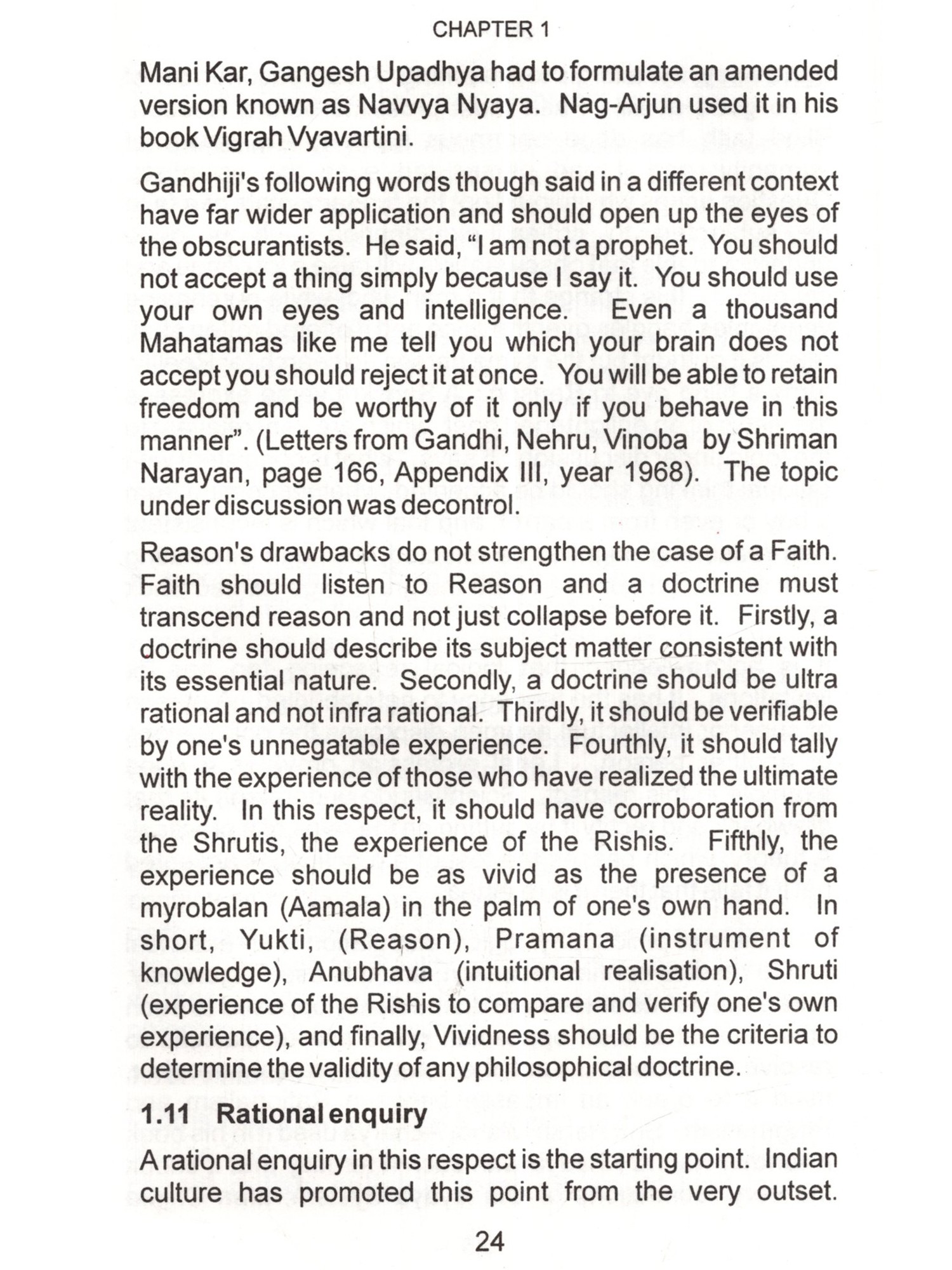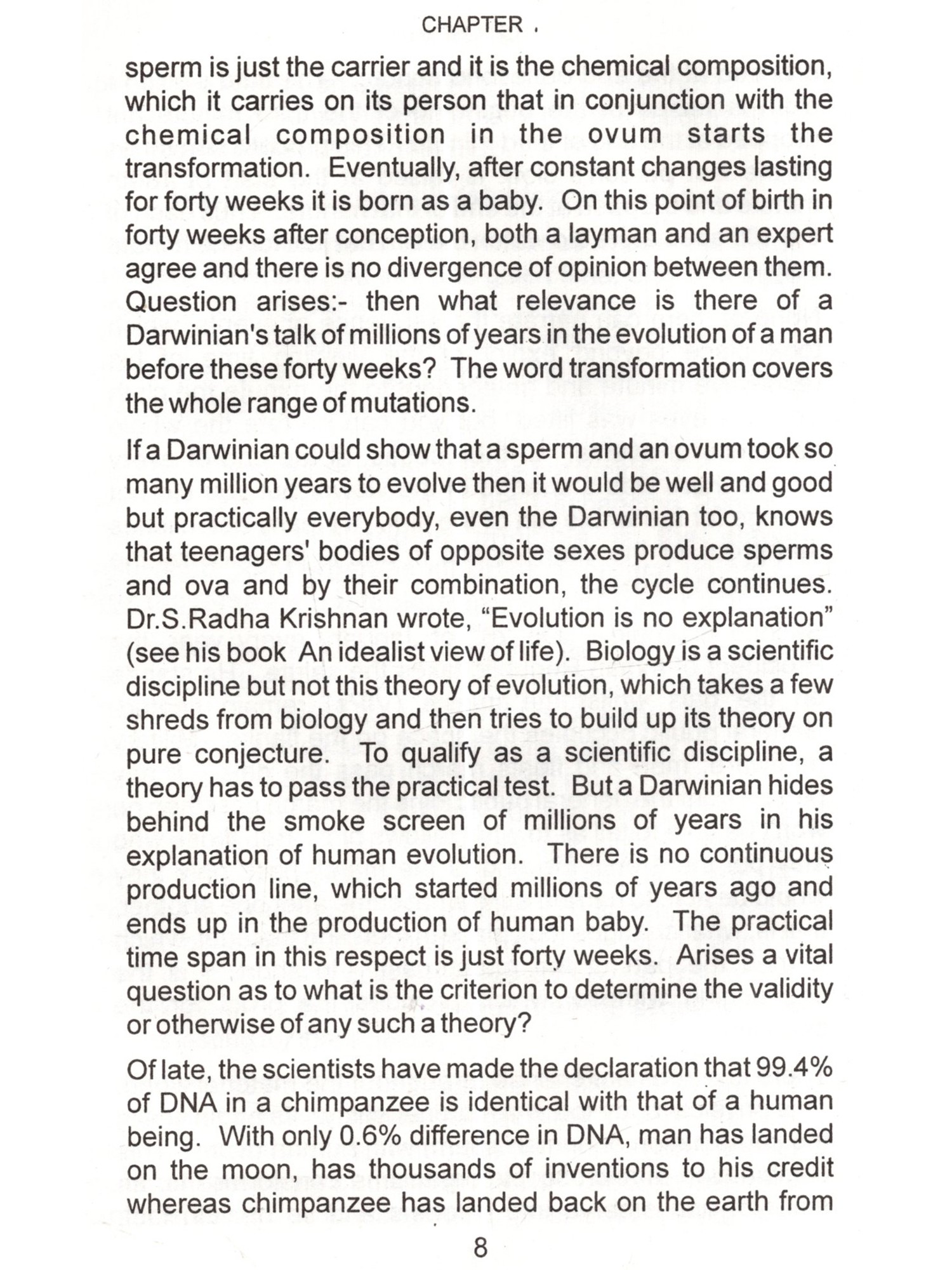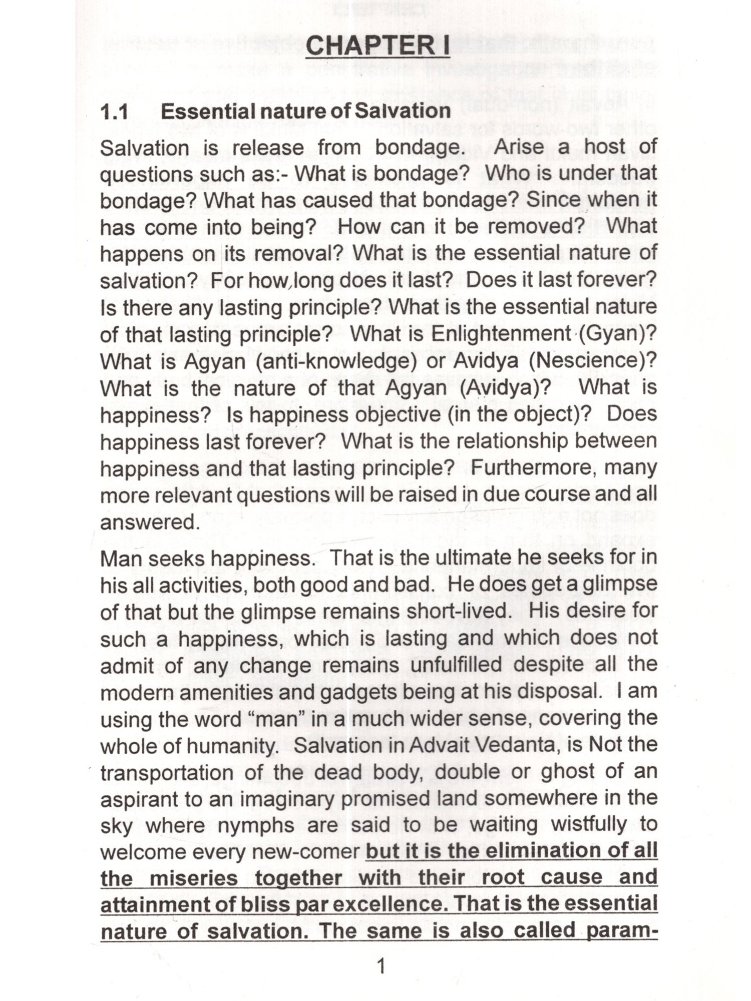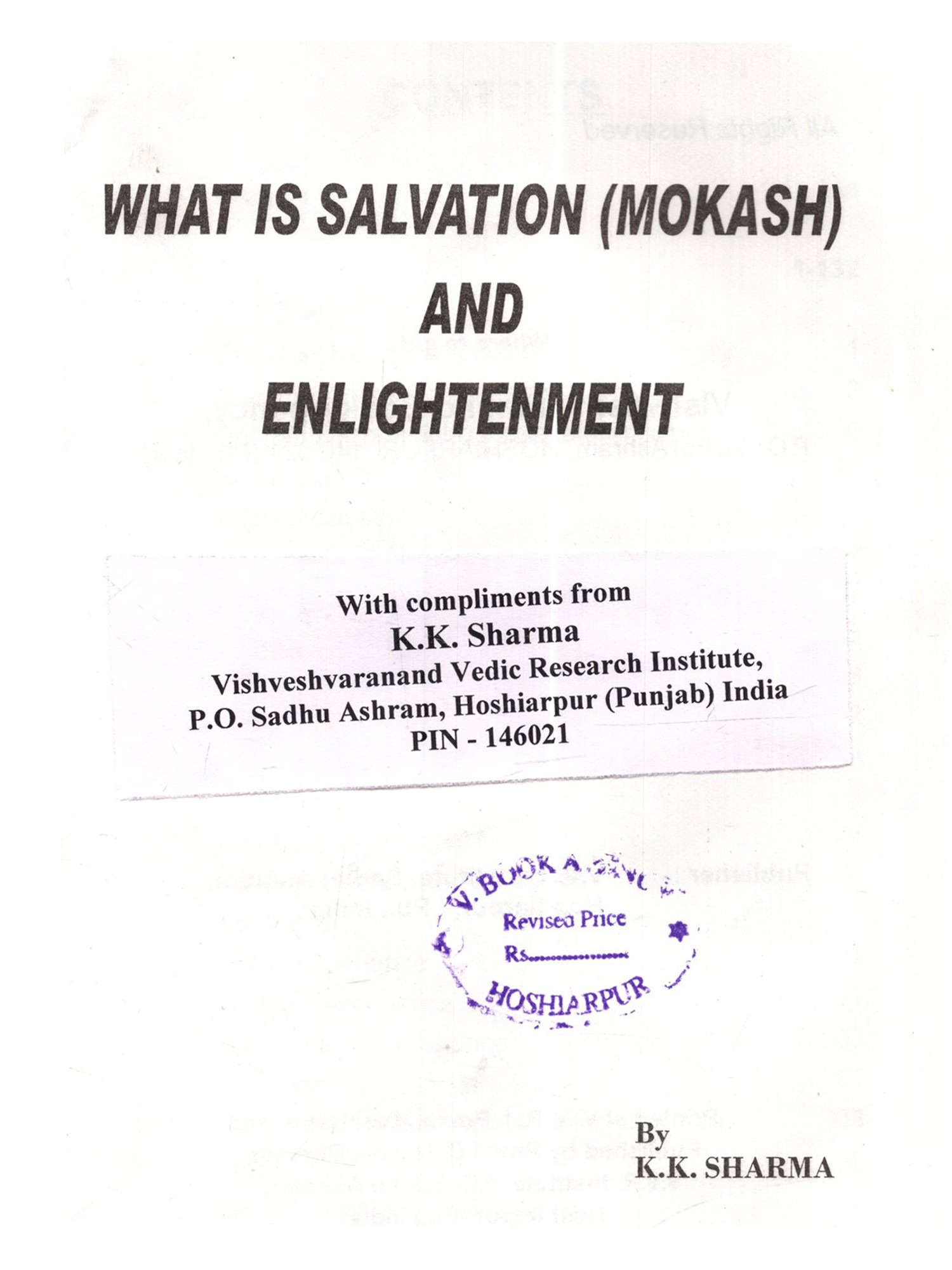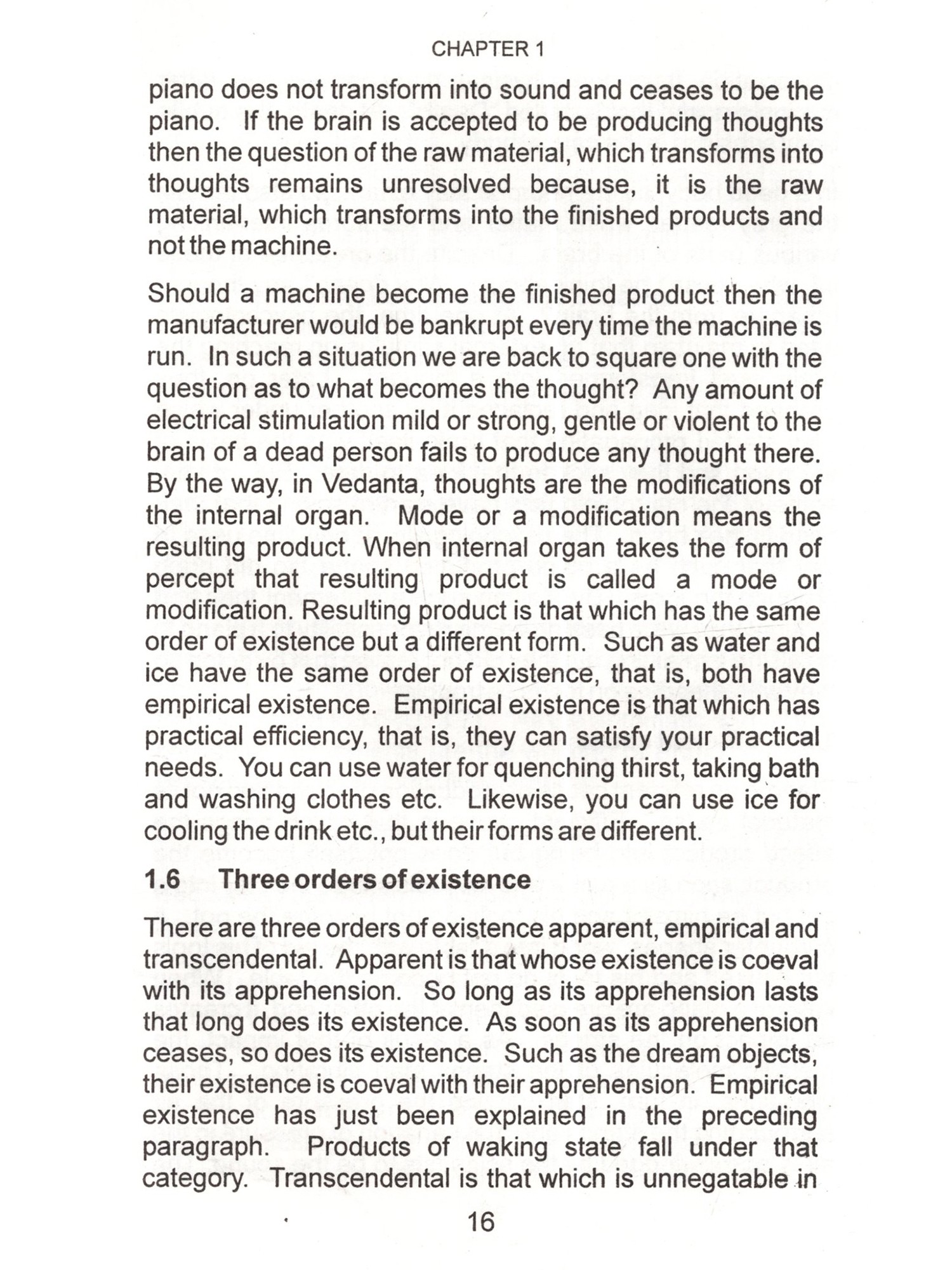 This is the age of Science. Especially, the physical sciences are directly opposed to superstitions and blind faith, which find easy refuge under religion. In religion, there are many good things as well as bad things. Good things, regardless of their source or origin should be accepted without hesitation and bad things even if those are from one's own religion rejected outright. Scientists are intelligent people, brilliant in their subjects and their achievements are spectacular. They should not be expected to accept anything simply on the basis of mere reverence for an author or some kind sentiments for him. By virtue of their training and dictates of their disciplines they demand some proof before accepting anything such as valid and sound. Question arises, is there any set of arguments, rather a doctrine backed by such arguments, which may appeal to them and command their respect ? The answer is an emphatic "Yes". That doctrine is called "Vedanta", that is, the doctrine of the Vedas. In a nutshell that doctrine is: 1. The Ultimate Reality is One and One only. That is called by the name of "Brahm". I am reluctant to use the word Brahman because I find that word to be misleading the general public. I have explained that in detail in the text of this book. 2. Prakriti (Matter) is the material cause of this manifested manifold. In other words, it is the Prakriti, which transforms into this universe but it lacks independent existence of its own. It doesn't have absolute existence but negatable existence. Absolute existence is that which stands unnegated in all the conditions of time. Negatable existence is that which is other than absolute existence and absolute non-existence. Absolute non-existence is that which It can be said to have relative 3. Individual soul's difference from supreme soul is due to the limiting adjunct of the internal organ or the fractional unit of Avidya otherwise, in essence, the former is identical with the latter. Limiting adjunct is that which shows its own characteristics into the other and others characteristics unto itself. Such as, a bucket full of water shows the sun reflected unto itself. If the water is muddy then the reflection is murky too. If the water is shaky then the reflection is shaky too. On the other hand its own water starts getting warm by the heat of the sun. Vedanta employs powerful reasoning. Its reasoning is like the foot of Angad. It can withstand intellectual onslaught of an opponent and still convince him. Angad went to the court of Ravan, the demon king of Lanka and challenged all those who were present there to lift his foot. Those who tried, they all failed. You will find reasoning of the opponent being trounced and stopped in its tracks. Indian philosophy has books with super-subtle arguments. In the words of Professor S.N.Das-Gupta, in the ultra-logical period, A.D.1100-1700, we have keen discussions and dialectics of an extremely subtle character such as had never developed in Europe at that time and which are in part so difficult that few occidental scholars have been able to master them. (A Cultural History of India edited by A.L.Basham-Ch. X). It is likely that any young science enthusiast may make some observations and raise a number of pertinent questions by saying, "Look! We, the scientists, have a large (ii) non-existence. Absolute non-existence is that which It can be said to have relative 3. Individual soul's difference from supreme soul is due to the limiting adjunct of the internal organ or the fractional unit of Avidya otherwise, in essence, the former is identical with the latter. Limiting adjunct is that which shows its own characteristics into the other and others characteristics unto itself. Such as, a bucket full of water shows the sun reflected unto itself. If the water is muddy then the reflection is murky too. If the water is shaky then the reflection is shaky too. On the other hand its own water starts getting warm by the heat of the sun. Vedanta employs powerful reasoning. Its reasoning is like the foot of Angad. It can withstand intellectual onslaught of an opponent and still convince him. Angad went to the court of Ravan, the demon king of Lanka and challenged all those who were present there to lift his foot. Those who tried, they all failed. You will find reasoning of the opponent being trounced and stopped in its tracks. Indian philosophy has books with super-subtle arguments. In the words of Professor S.N.Das-Gupta, in the ultra-logical period, A.D.1100-1700, we have keen discussions and dialectics of an extremely subtle character such as had never developed in Europe at that time and which are in part so difficult that few occidental scholars have been able to master them. (A Cultural History of India edited by A.L.Basham-Ch. X). It is likely that any young science enthusiast may make some observations and raise a number of pertinent questions by saying, "Look! We, the scientists, have a large (ii) non-existence. Absolute non-existence is that which It can be said to have relative 3. Individual soul's difference from supreme soul is due to the limiting adjunct of the internal organ or the fractional unit of Avidya otherwise, in essence, the former is identical with the latter. Limiting adjunct is that which shows its own characteristics into the other and others characteristics unto itself. Such as, a bucket full of water shows the sun reflected unto itself. If the water is muddy then the reflection is murky too. If the water is shaky then the reflection is shaky too. On the other hand its own water starts getting warm by the heat of the sun. Vedanta employs powerful reasoning. Its reasoning is like the foot of Angad. It can withstand intellectual onslaught of an opponent and still convince him. Angad went to the court of Ravan, the demon king of Lanka and challenged all those who were present there to lift his foot. Those who tried, they all failed. You will find reasoning of the opponent being troun