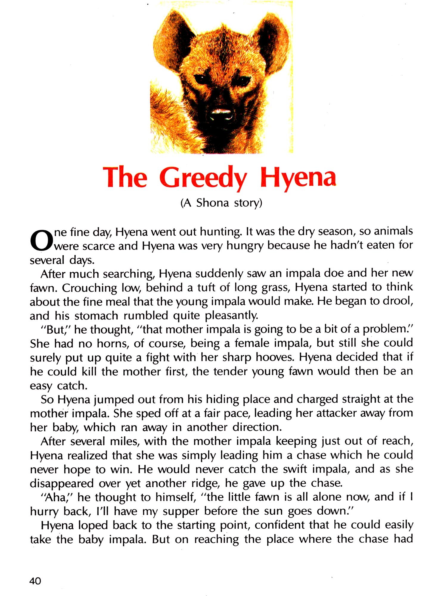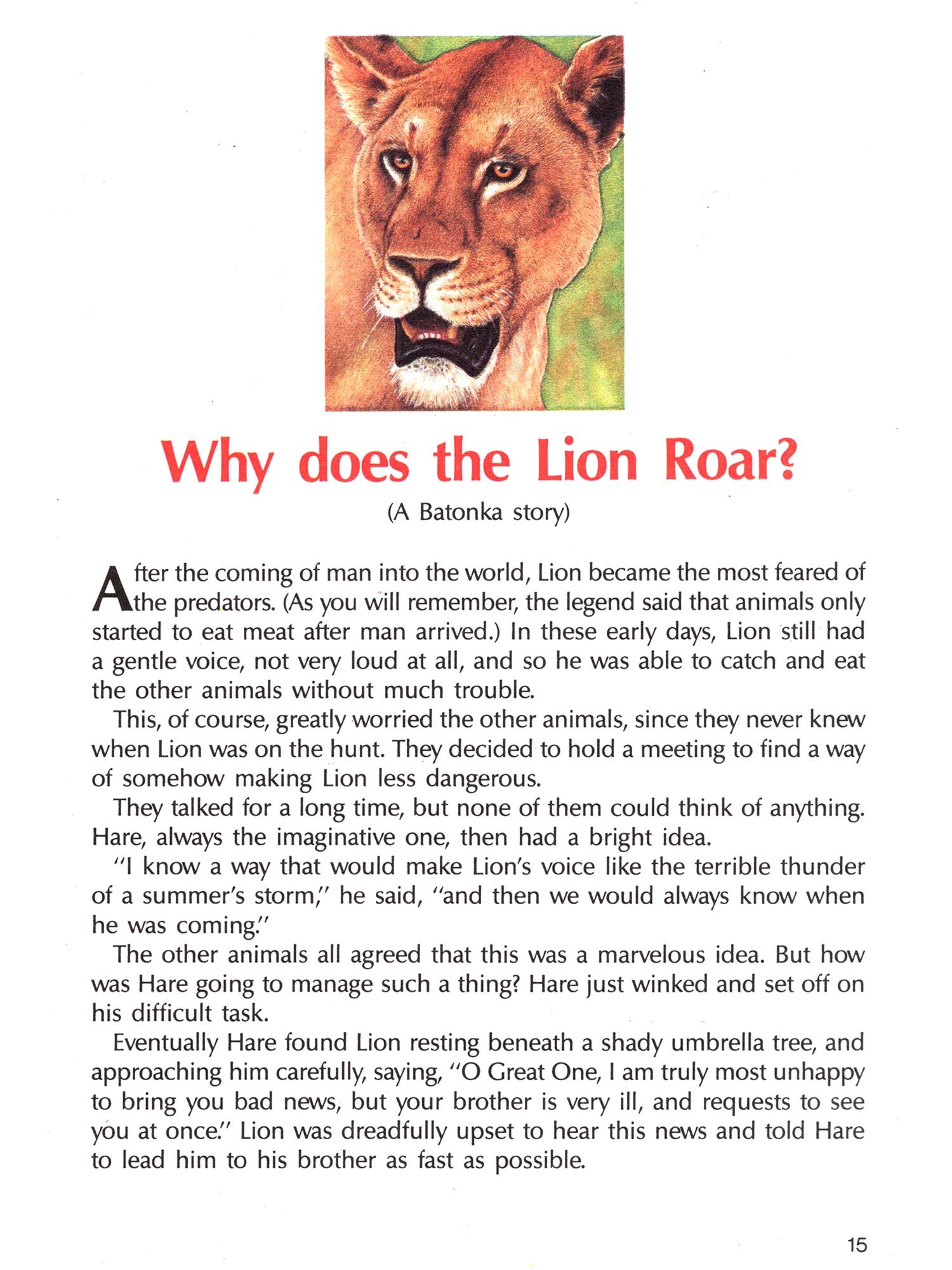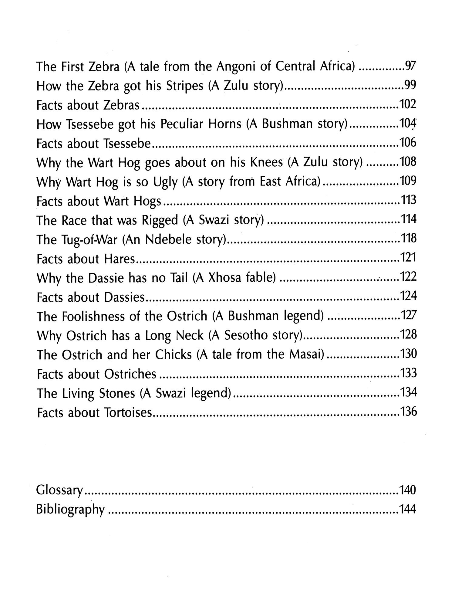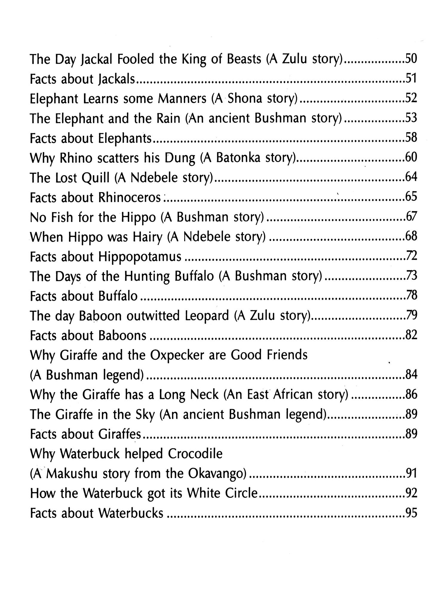 The tales of old need not be a thing of the past; the wildlife which inspired them, brought endearingly alive by these simple stories, is a part of Africa's heritage which should not be forgotten.