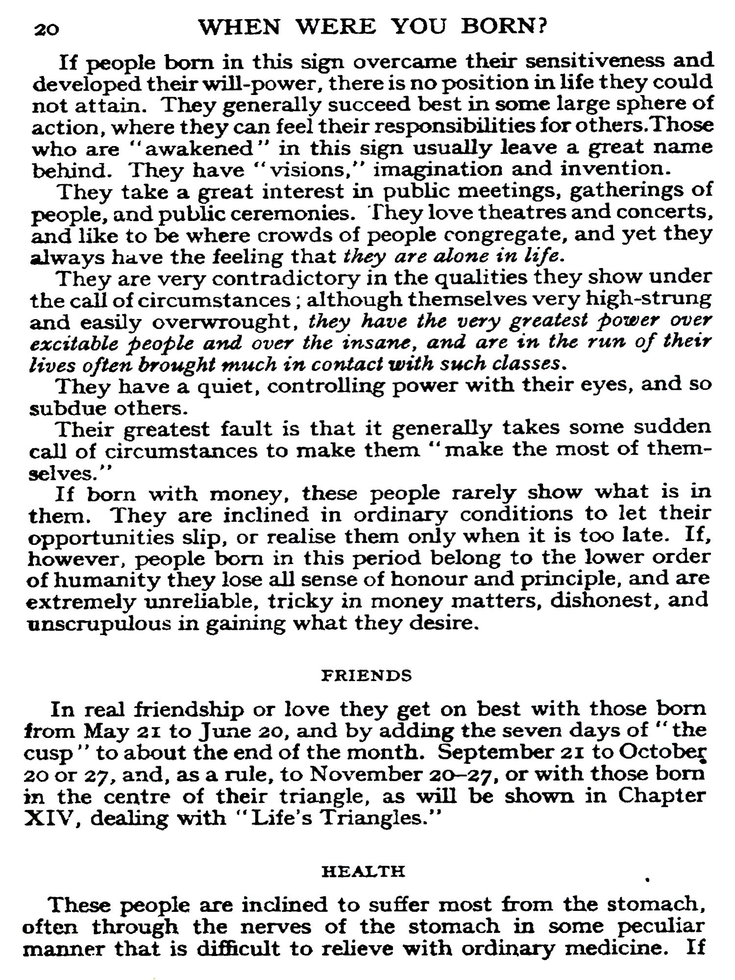 I have seen so many wrecked and broken lives, where, had the people possessed even a slight knowledge of their own dispositions, they might have been saved, that I have felt it a duty to publish in a cheap and simple form the indications of character and tendencies which may be easily learned by a study of these "periods of birth," as set forth in the following pages.