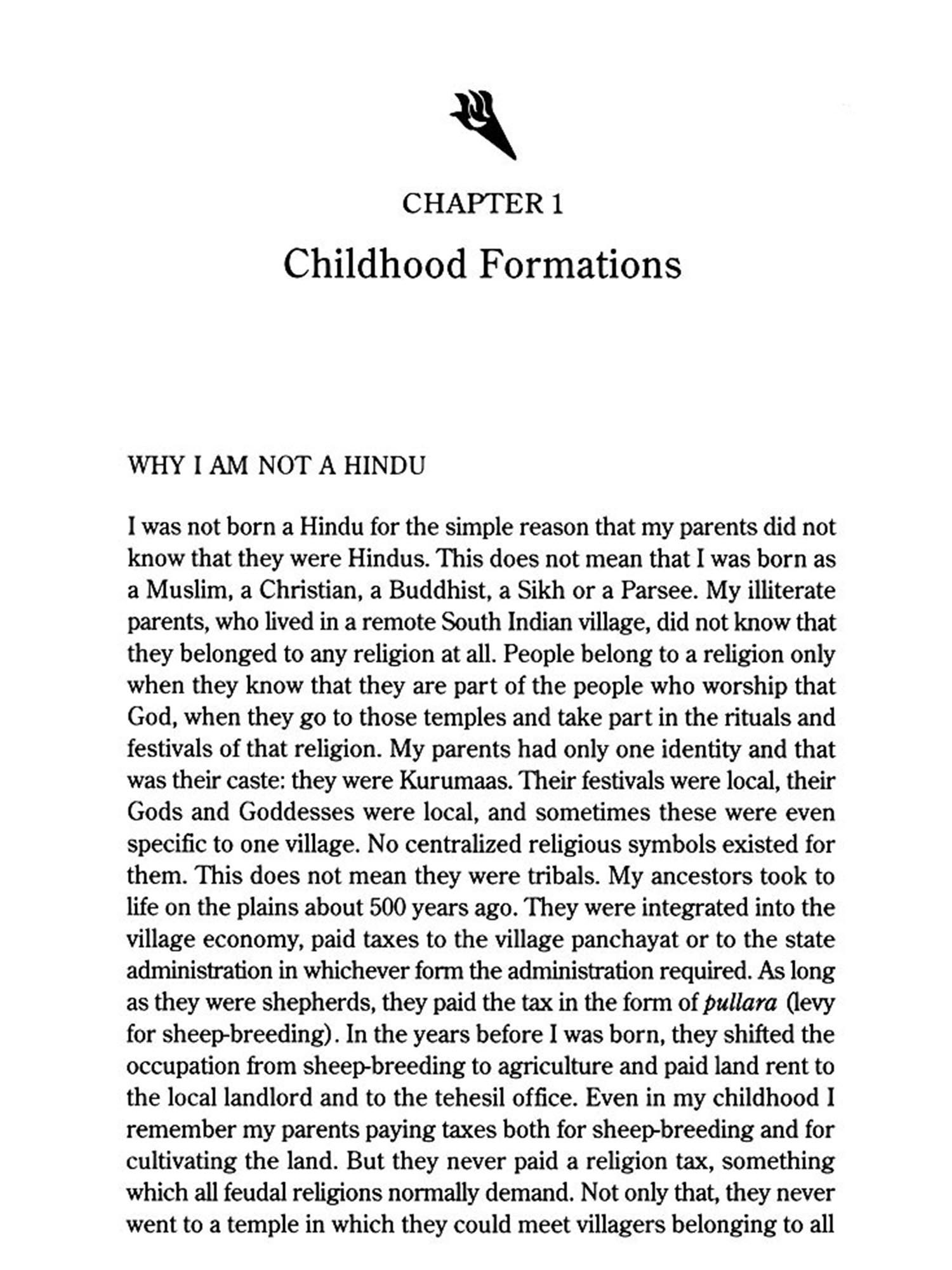 Why I Am Not a Hindu was first published in 1996 in the context of the growth of Hindutva, the ideology of the RSS that undergirds the BJP, which led to its campaign to mobilize Sudras (the agrarian and artisanal castes that include all listed Other Backward Classes and also castes like Jats, Patels, Marathas, Reddys, Kammas, Nairs and Mahishyas, and so on, who are outside reservation) and Dalits as Hindus. This enabled the demolition of the Babri Masjid in 1992. The book became controversial the moment it came into the market. Several reviews, attacking and appreciating the book, were written. Within a short time it became a bestseller. It was one of the four books selected by The Pioneer as a change-making millennial book at the turn of the second millennium.