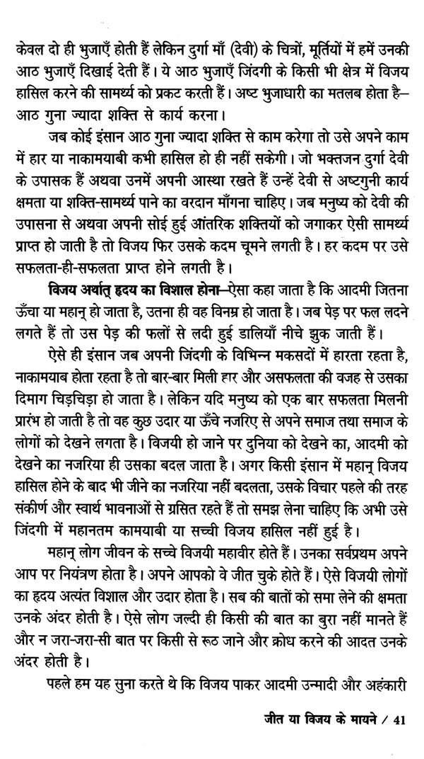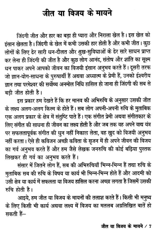 जीतता अंत में वही है जो अपनी हार नहीं मानता है। कर्मपथ पर चलते हुए अगर आप पथ की मुश्किलों से घबरा गए और थककर अगर आपने अपने मन में अपनी हार मान ली तो कोई फिर कितना ही आपका साहस, हिम्मत, हौसला बढ़ाने की कोशिश करे, आप विजय का हौसला नहीं रख पाएँगे। किसी संत ने कहा है कि आदमी जब अपने मन में समझ लेता है कि वह हार गया है तो वह सचमुच ही अपने ध्येय से हार जाता है।