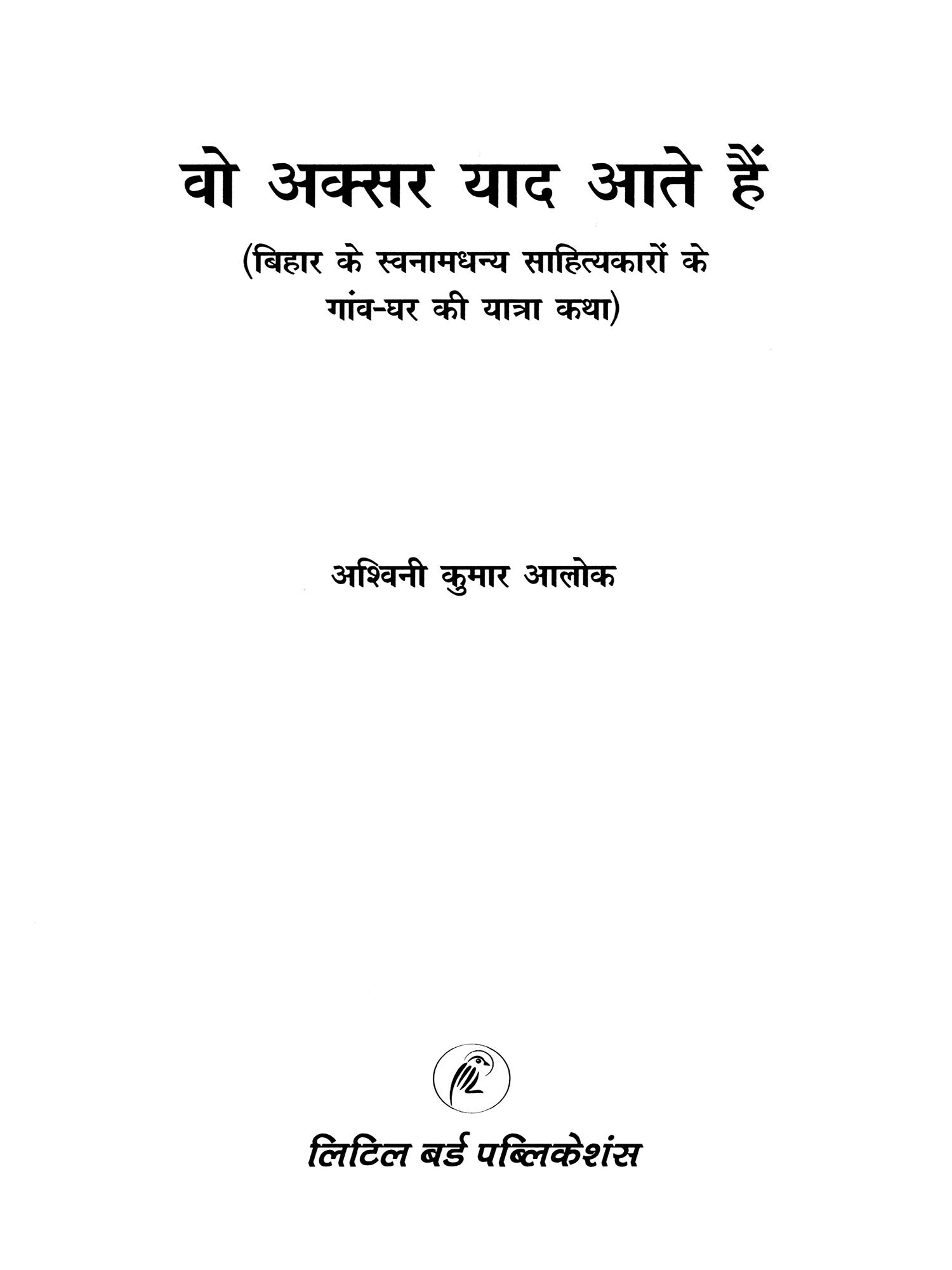 एक रचनाकार के रूप में वे अपने समय से संवाद करते रहे हैं, एक संपादक के रूप में नयी रचनाधर्मिता को संरक्षित और परंपरा का पुनरीक्षण करते रहे हैं तथा एक आयोजक के रूप में अपनी जनोन्मुखता और उत्सवधर्मी मनोवृत्ति का प्रमाण देते रहे हैं। इनकी प्रस्तुत कृति 'वो अक्सर याद आते हैं' में ये सारे रूप एक साथ झलकते हैं, सारी भंगिमाएं एक साथ दिखाई देती हैं।
