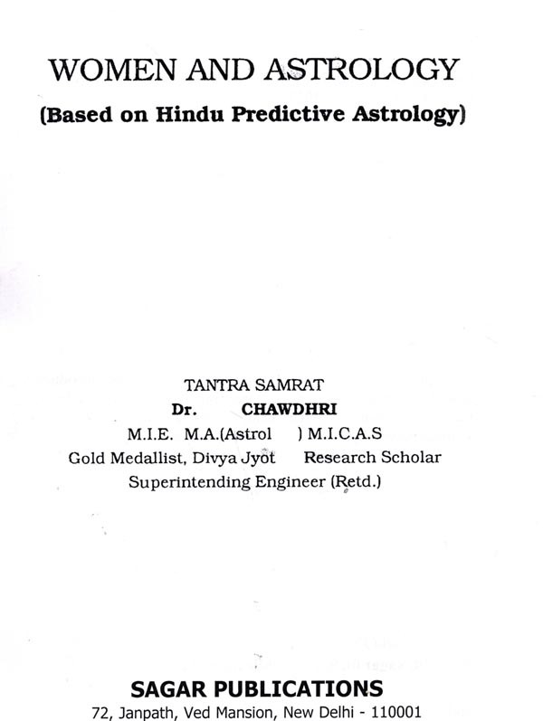 This book, "WOMEN AND ASTROLOGY" is a departure from Old Stri Jataka texts. In this book all questions of present Society have been discussed Astrologically.