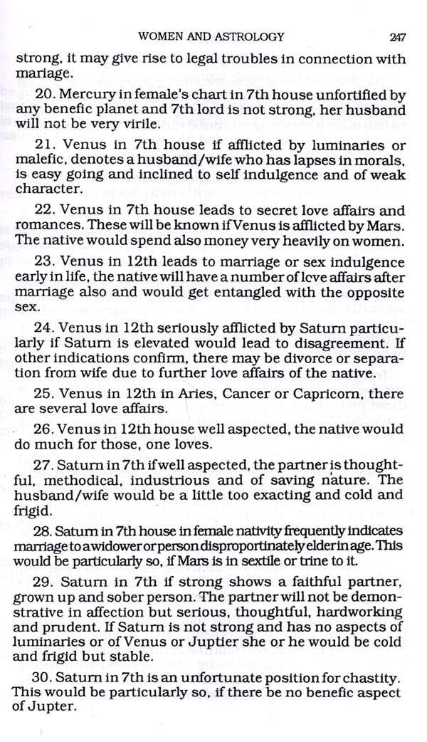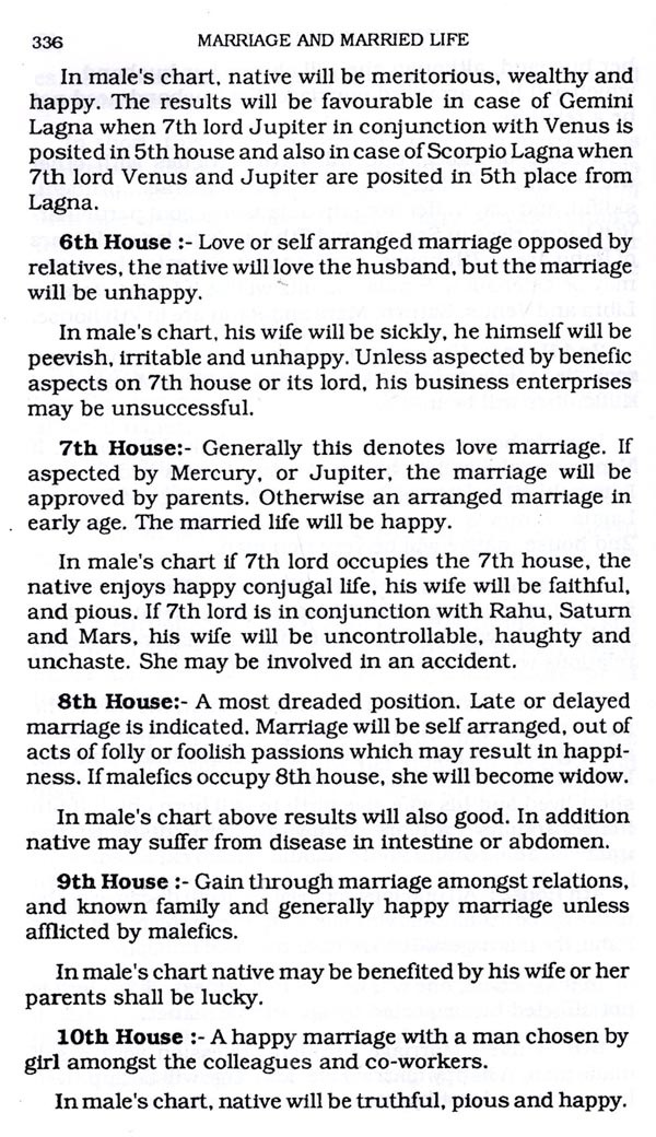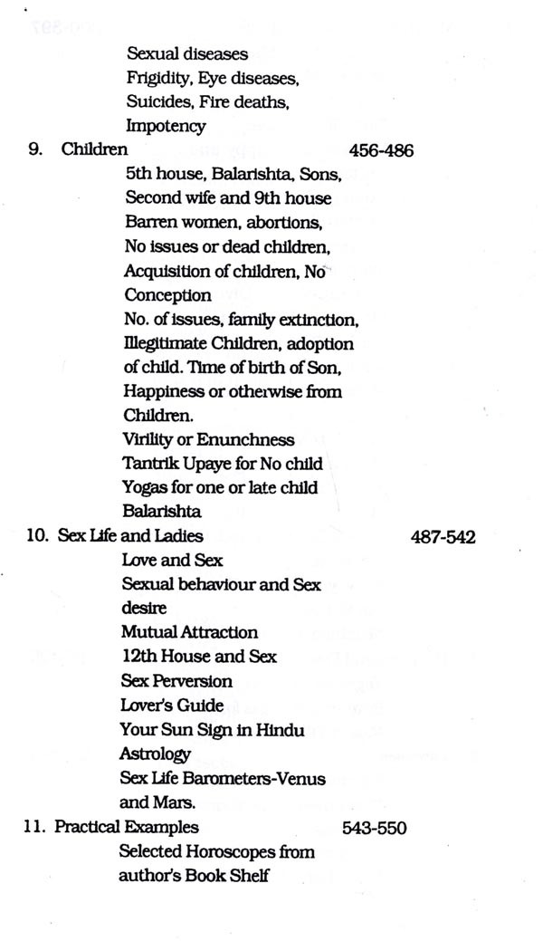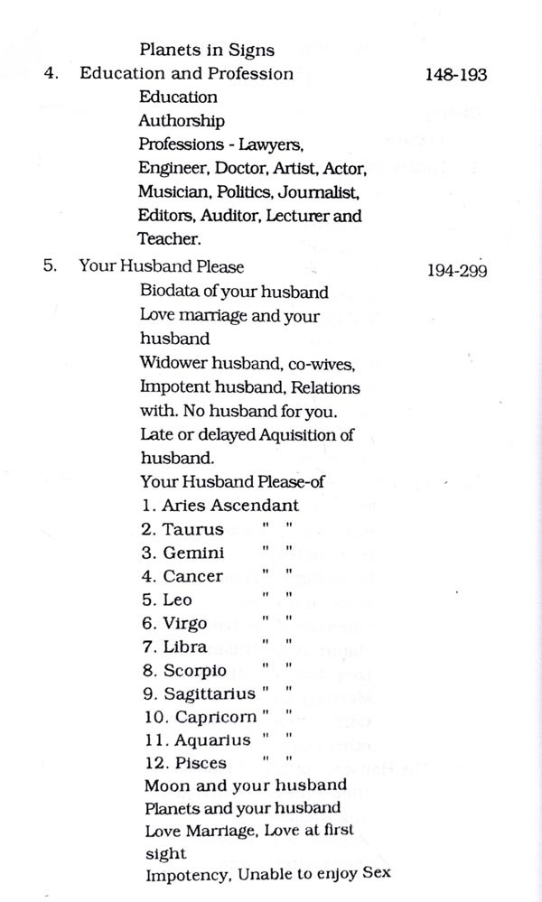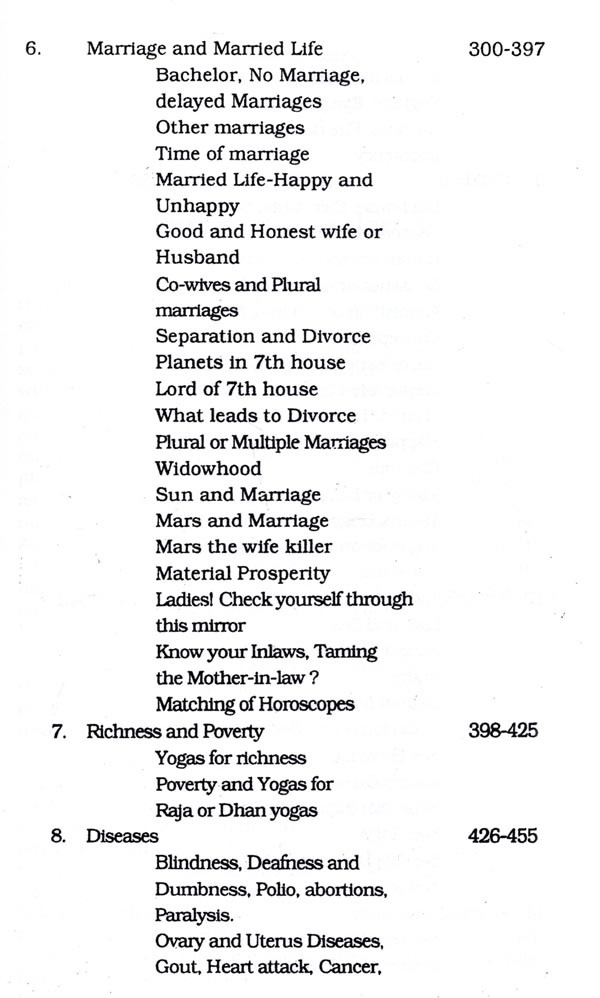 Marriage and Married life, Love and influence of opposite sex, litigations, children, Rich and Poverty, disease, health and sex life in ladies are detailed in a simple and lucid way.