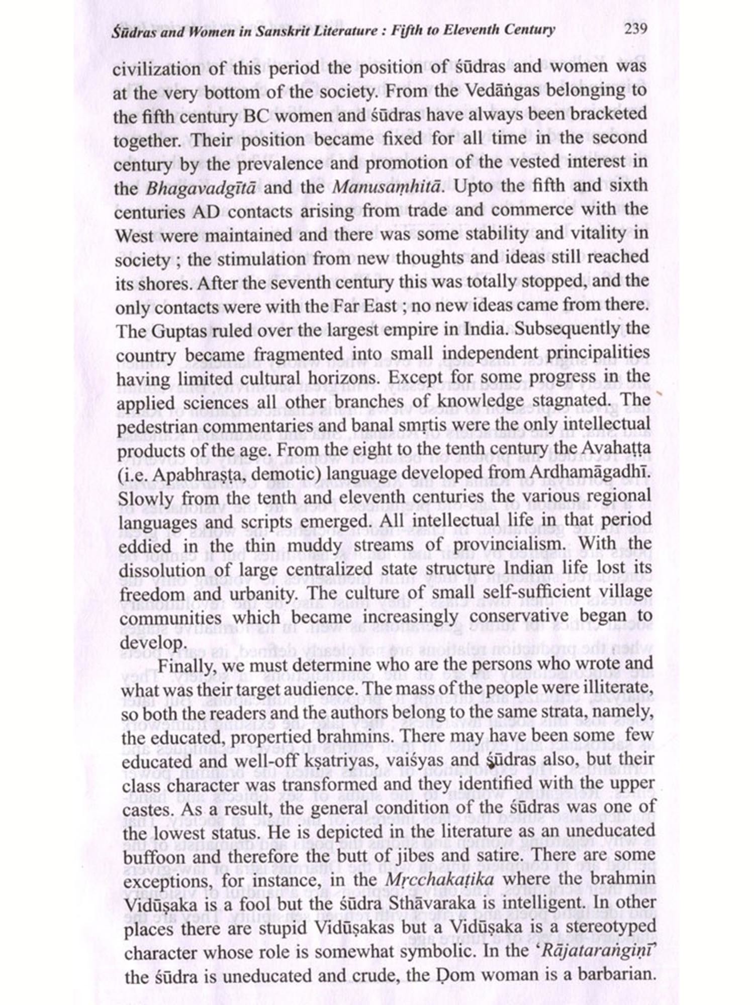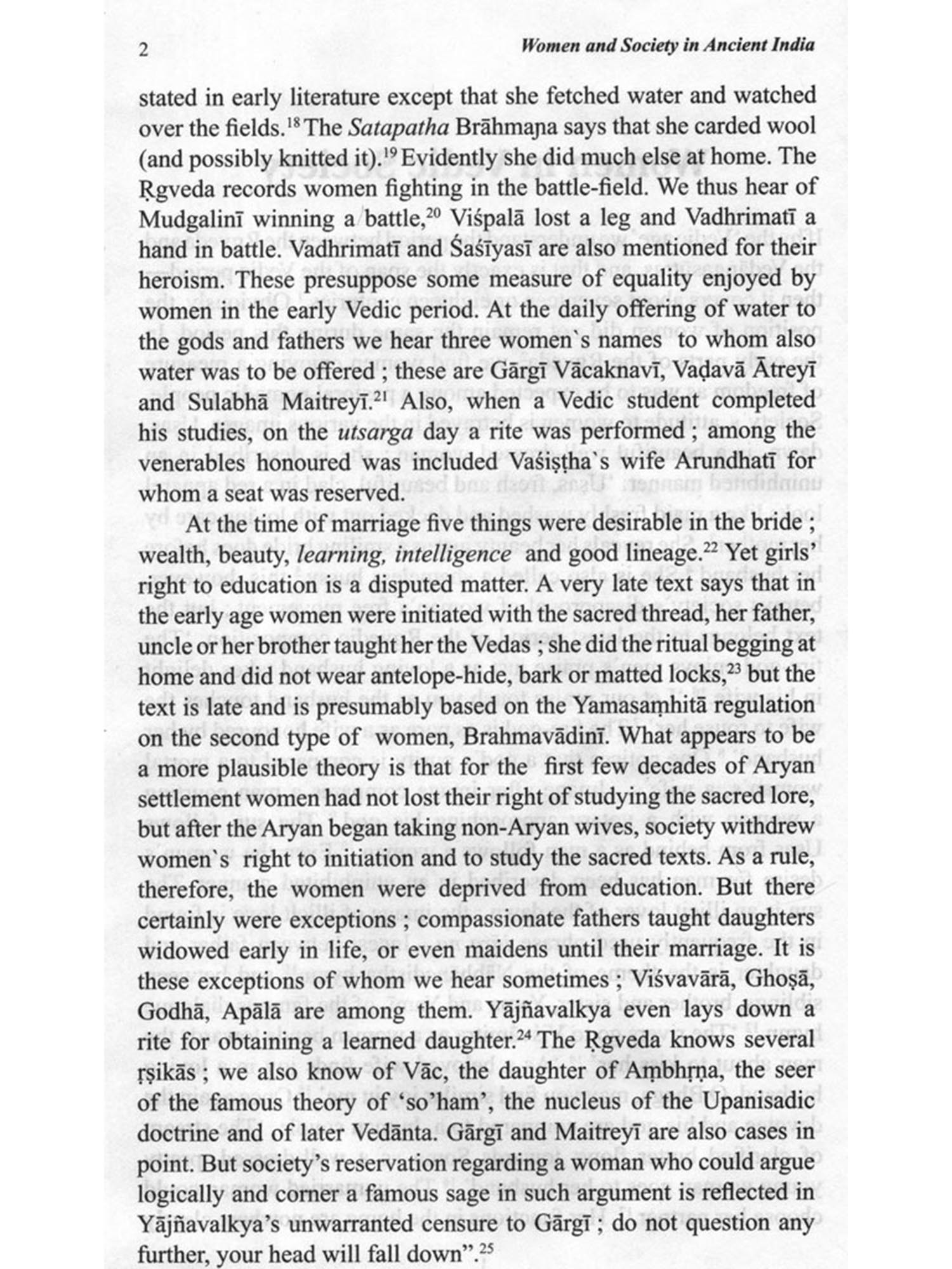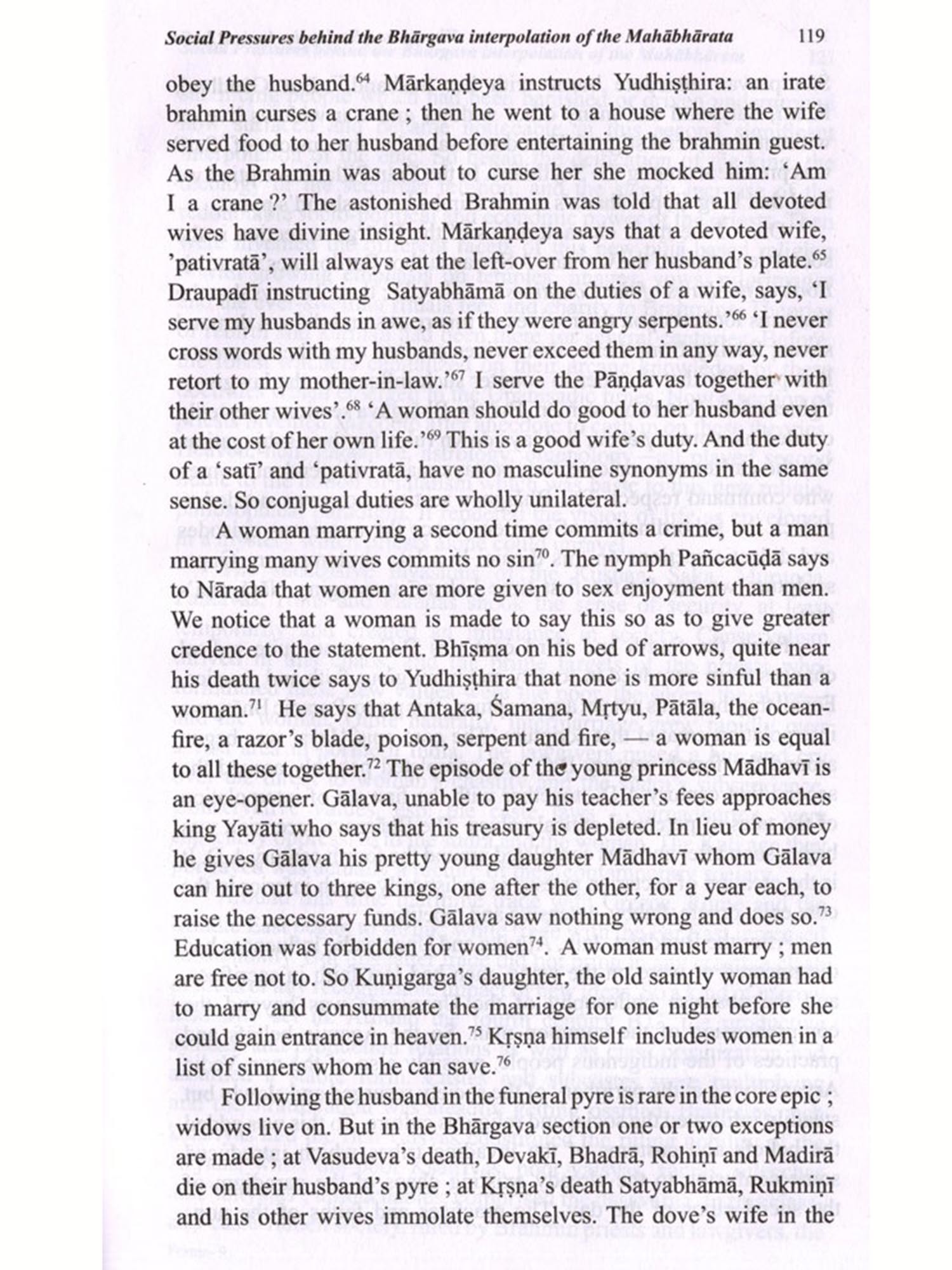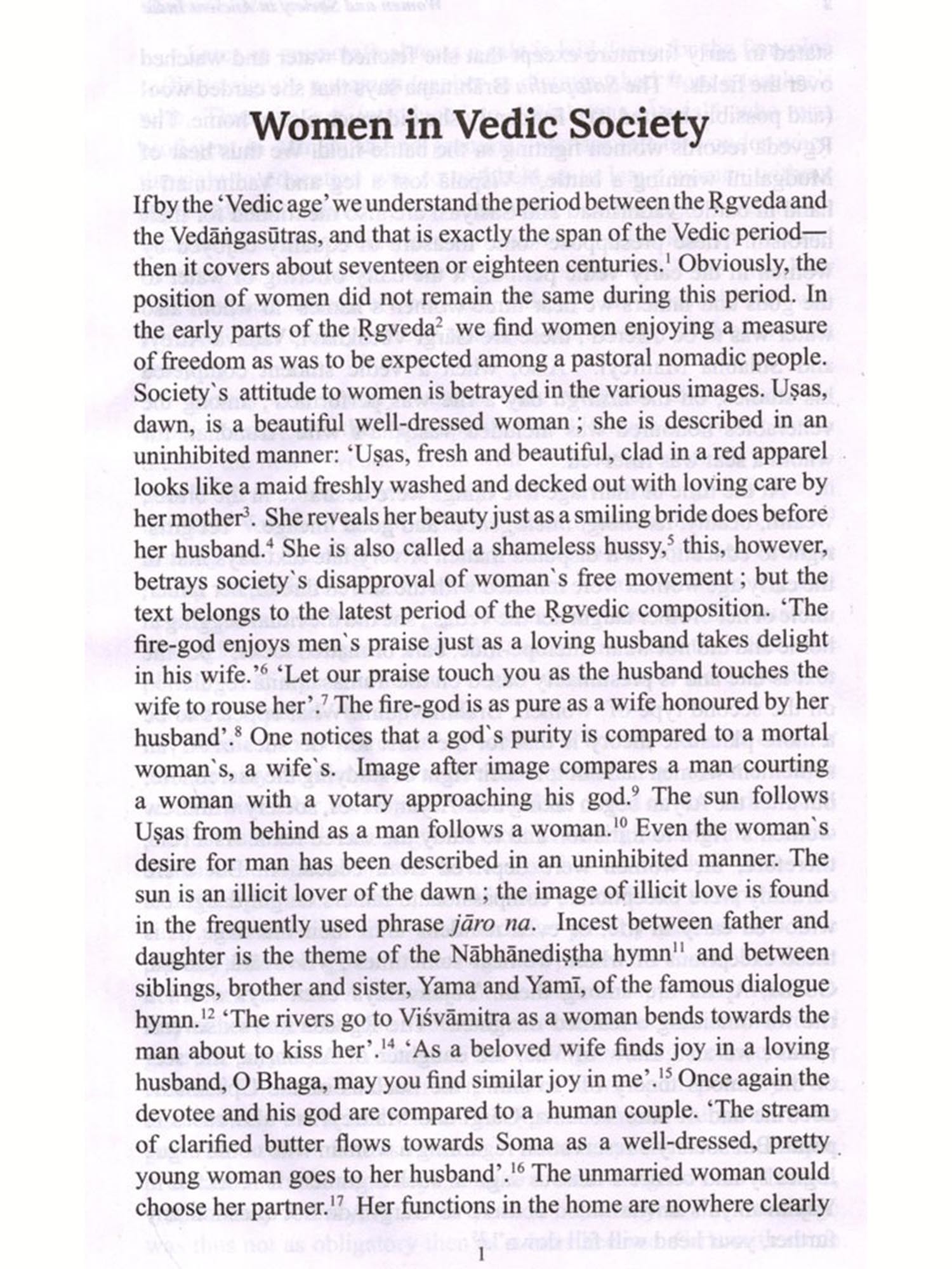 This is a collection of fifteen essays most of which were published at different times in different journals. Some were originally composed in English, which have been included with slight modifications. The articles on the Mahābhārata and on 'The Südra and Women' in early classical Sanskrit Literature were very kindly translated by my friend Sri Asit Ghosh. He himself offered to contribute this as a labour of love and I do not know how to thank him. The article on the Girl Child has been translated by my one-time pupil and then colleague at the Jadavpur University, Dr. Bijaya Goswami, I take this opportunity to thank her for the trouble she took. I myself translated those on 'Sati', 'Dowry and Stridhana' etc. The rest were originally in English, published in the Economic and Political Weekly, Journal of Indian Philosophy and some as monographs in various other periodicals and broadsheets. Obviously there is no one thread running through these articles making it a coherent monograph; the connecting link is the theme: women and society in ancient India. Each of the articles seeks to throw some light on some aspect of either ancient Indian women or some social attitude to caste, the concept of peace, or fatalism.
