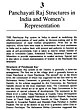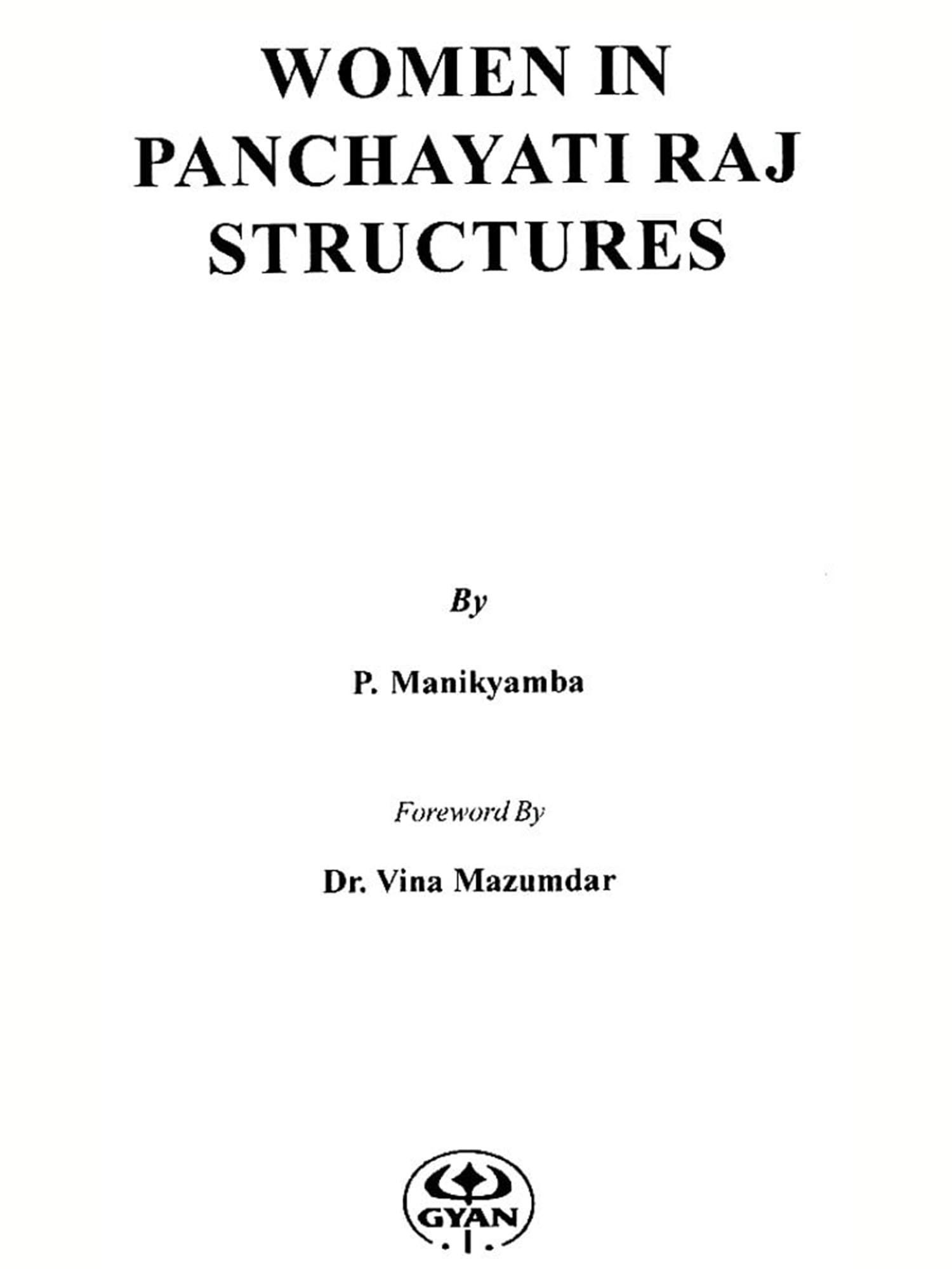 THIS modest volume on Women in Panchayati Raj Structures is the sequel to the decision to amend the Indian Constitution providing for, among other things, thirty per cent seats in Panchayats for women with the possibility of this going upto fifty per cent as the Prime Minister stated. The Prime Minister also said that until women stood up and fight for their rights, the support from the government would not be useful. The coming elections to Lok Sabha and to the State Legislative Assemblies on the one hand and the raging distrust that has set in from the relations between the government and the opposition at the centre on the other arose, in some quarters, from misgivings about the motives of the government in giving effect to this important constitutional change. Doubts also would arise about women representatives of Panchayati Raj bodies playing useful roles even if membership is ensured by means of reservation. It is true that adequate women's representation in Panchayati Raj institutions is essential not only for ensuring political participation in the democratic process but also for realising the objectives of Panchayati Raj in general.