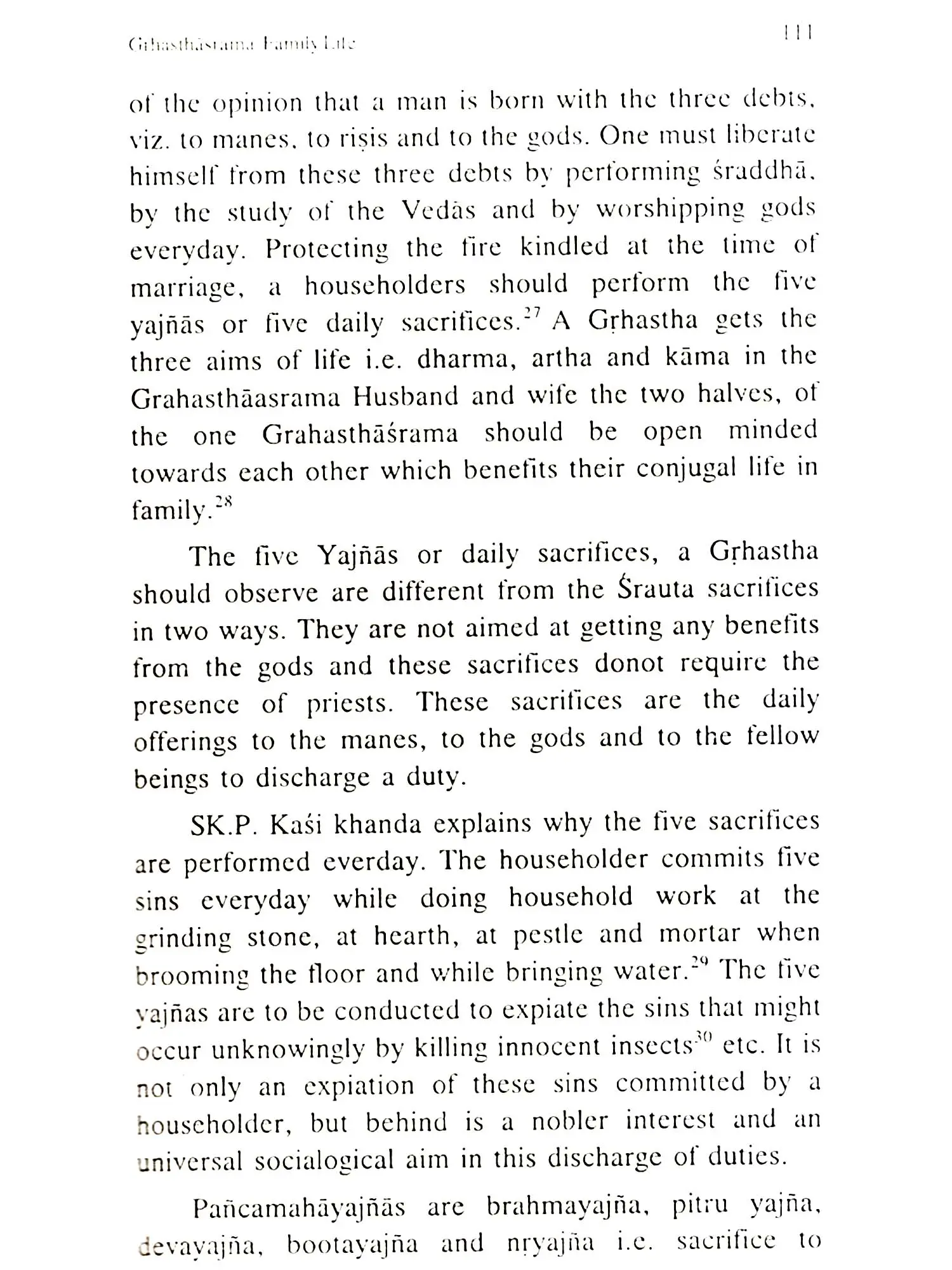 Grhastasrama gets high priority among the four asramas. Puranas depict a family where the head of the househould is a responsible person and the wife of the house holder as a devoted wife and an affectionate mother fulfills all the requirements for a contented life.