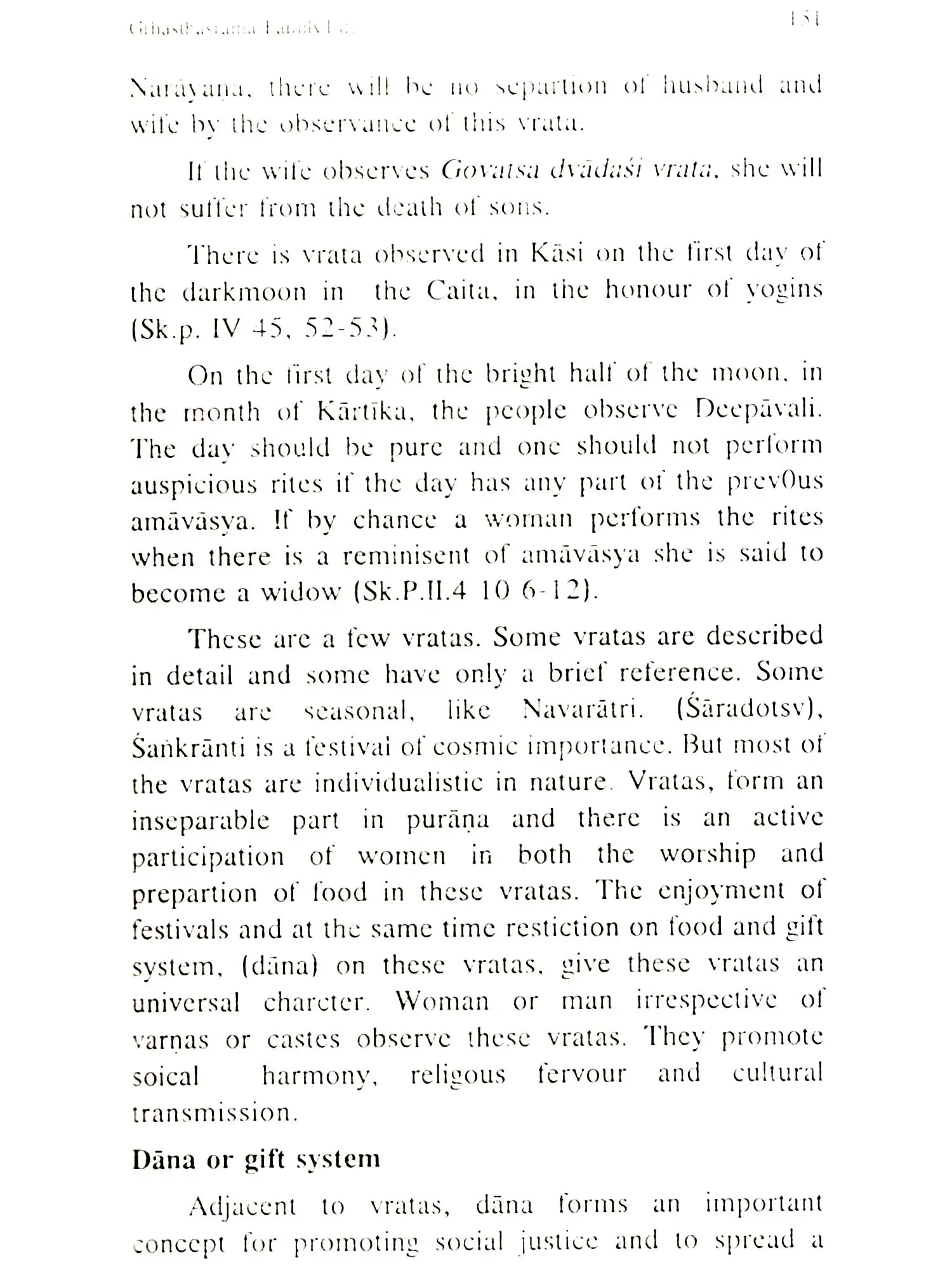 It is obvious that Dr. Aparna Roy is not only aware of the potentialities, but also the hazards posed by this body of literature. Unlike several others who have built up their theses either on a single or a select number of texts, she has attempted to make use of nearly all the major and minor Puranas to understand a single, though a significant, limb of Indian family and society, the woman. Beginning enquiry with the female infant yet to be born, she takes it through her childhood, marriage, motherhood; examines her role as a wife, her share in religious duties, and her woes of widowhood, (but in a sequence of order chosen by her); she also makes an effort to understand her in the role of a prostitute and asks more specific questions relating to her public and private appearances. Ms. Roy's inferences, summed up at the end, throw interesting light on the changing notions on the age and modes of marriage of woman, perception of the principle of pativrata, notions attached to the birth of daughters in the family, reasions for tonsuring the heads of widows, circumstances that precluded purda practice, emergence of the institution of prostitution, etc. A full-scale study of women, based on a single category of source material, such as the one taken up by Ms. Roy should be welcome at a time when gender studies are receiving wide attention, and I am sure that this work would certainly be welcomed by those who adore the classical scholarship of A.S. Altekar, the most notable among the pioneers of gender studies of the twentieth century.