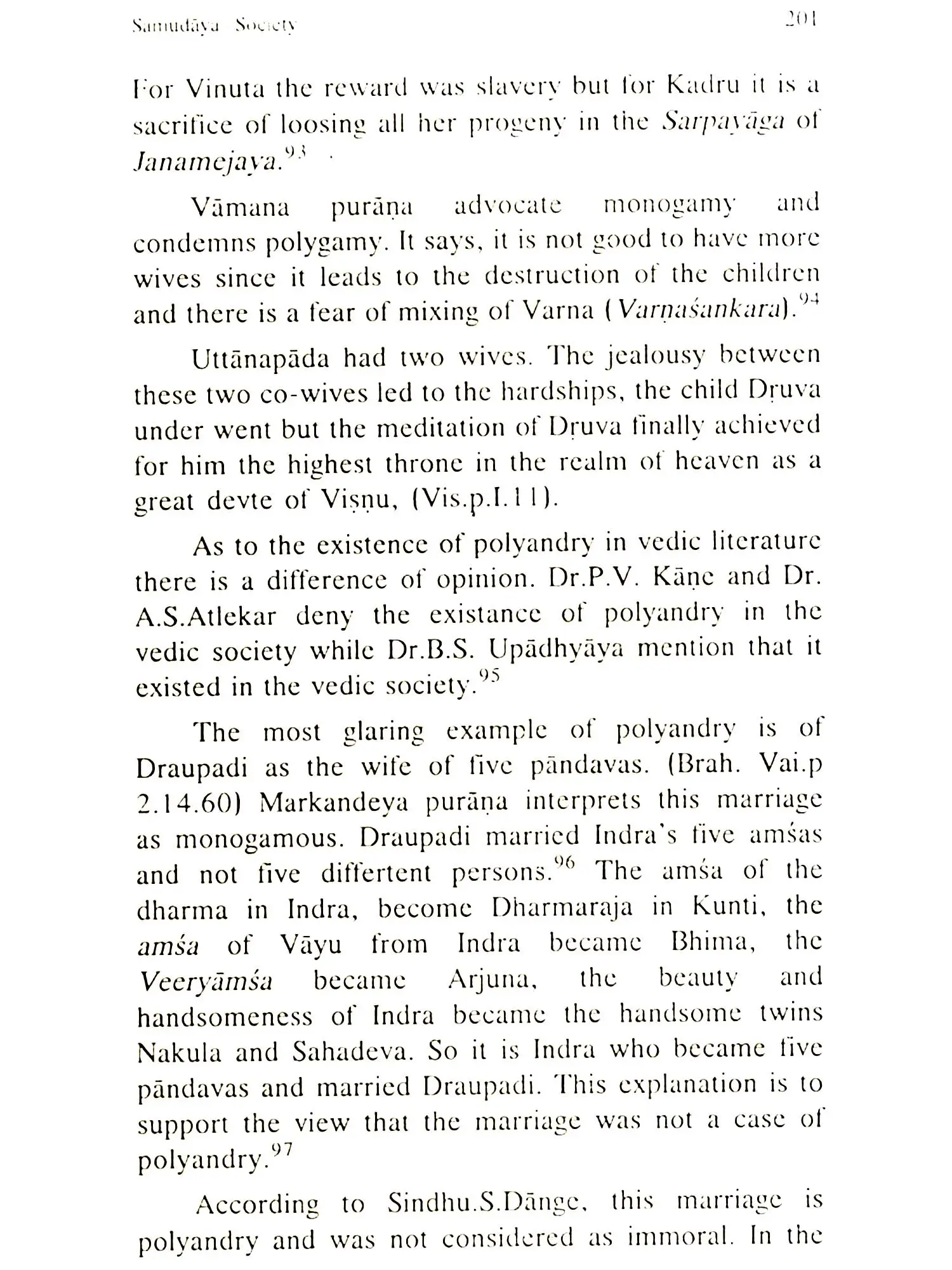 Evaluation of the hypothesis that there are traces of promiscuity in some passages of Mahabharata in the light of Puranic references to promiscuity or indiscriminate mingling and free sexual relations affecting adversely the well established order of the society during the Kali age; marriage- a social and religious obligation according to Puranic view; purpose of marriage- multiplication of progeny; rules for the selection of brides, possible reason of early marriage of girls; instances showing that some girls remained spinsters all their life; general agreement of the Purana tradition with Smriti tradition that there are eight forms of marriage; number, however, increased to ten and reduced to four in some Puranas, does it refer to some obsolete practice? conditions under which remarriage of women was permitted in the Puranas, assessment of Puranic view of anuloma, pratiloma, savarna, asagotra, asapravara and asapinda marriages; assessment of Puranic view of the practice of monogamy, polygamy and polyandry.