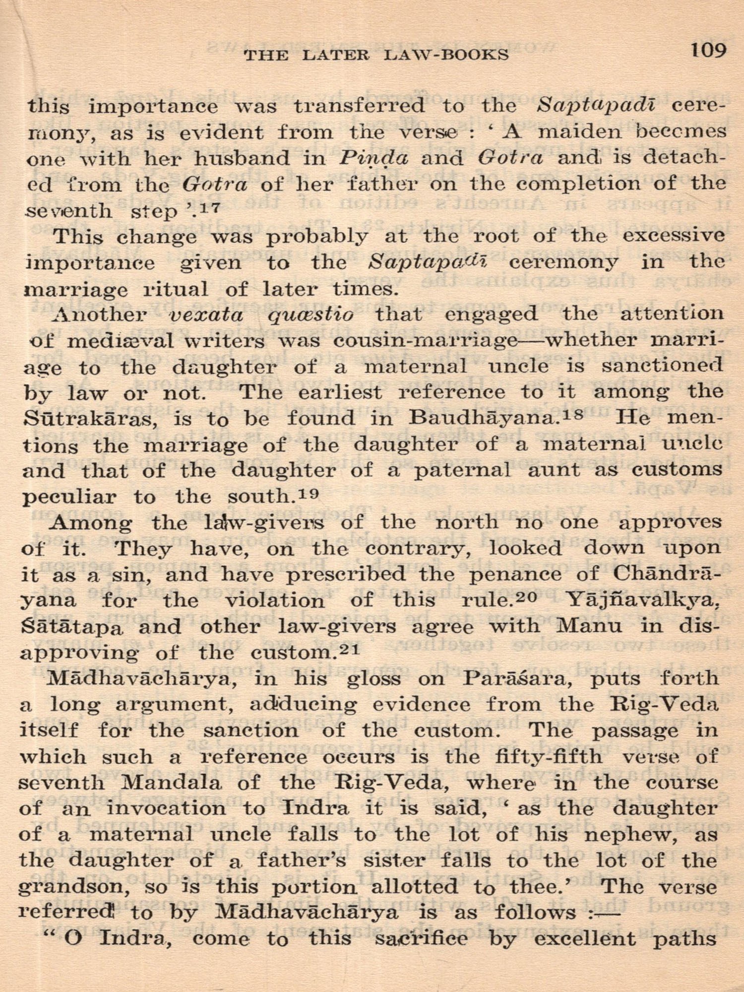 In the concluding chapter, 'Esprit des lois,' are assembled epigraphical evidences of comparatively free inter-caste marriages during mediaeval centuries: after period. The concluding pages of Miss Shakuntala Rao's meritorious and well-inspired work are devoted to an exposition and justification of the provisions of the new Hindu Code.