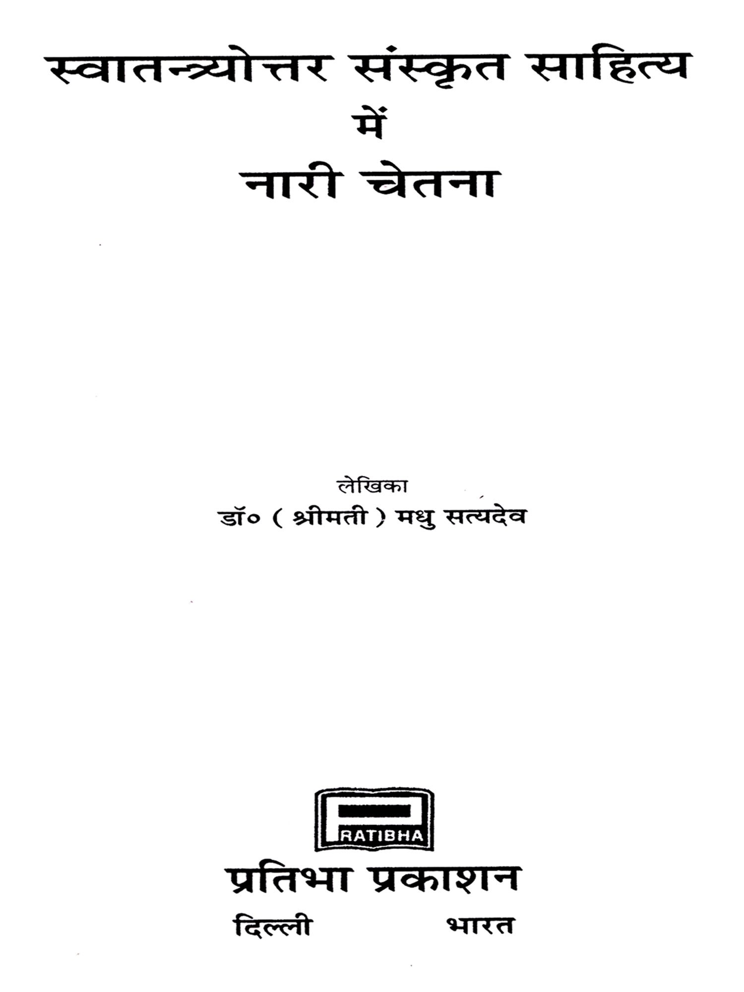 स्वातन्त्र्योत्तर संस्कृत साहित्य में नारी चेतना: Women's Consciousness in Post-Independence Sanskrit Literature